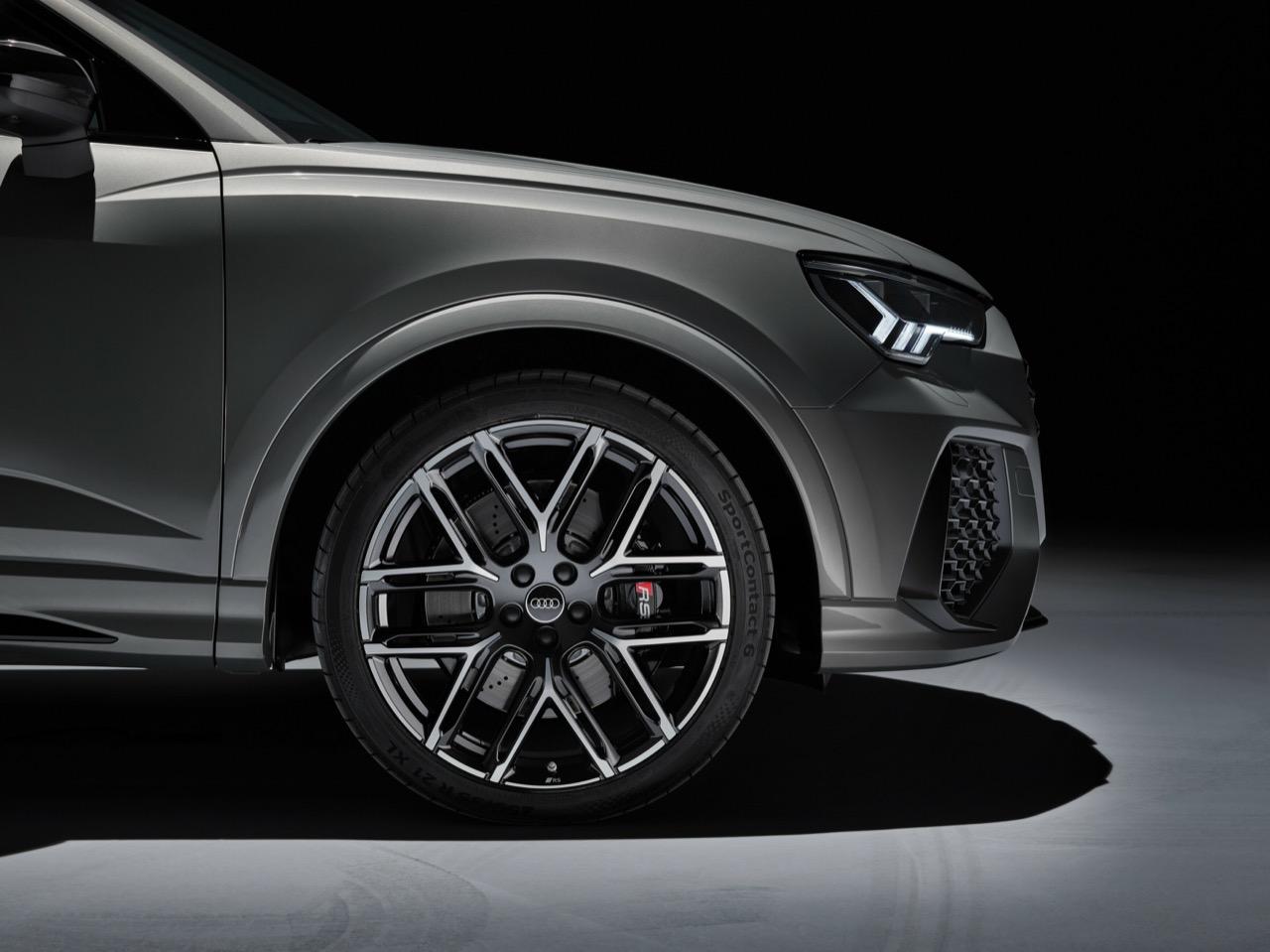 Audi ใช้สีที่แสดงออกถึงการเฉลิมฉลองให้กับ RS Q3 รุ่นพิเศษ ด้วยสีเงินด้าน Dew Silver หรือสีเมทัลลิก Chronos Grey สีใหม่นี้ พ่นมาให้สำหรับ RS Q3 รุ่นพิเศษโดยเฉพาะ ในขณะที่สีเงินด้าน Dew Silver ถูกเพิ่มเข้าไปสีตัวถังของ Audi RS Q3 เจเนอเรชันที่ 3 เป็นครั้งแรก ล้ออัลลอยน้ำหนักเบา สีเงินสลับดำขนาด 21 นิ้ว แบบก้านคู่ ยาง Continental Sport Contact 6 ขนาด 255/35R21 ระบบเบรกประสิทธิภาพสูง พร้อมจานเบรกเหล็กหล่อขึ้นรูป หรือจานเบรกคาร์บอนเซรามิก ซึ่งเป็นออปชันเสริมที่ต้องจ่ายเพิ่ม ชุดเบรกคาลิปเปอร์เบรก 6 พอตหน้า ซิงเกิลพอตหลัง สีเทาแอนทราไซต์ ชุดแต่ง Edition 10 Years ตกแต่งกันชนหน้า-หลังด้วยสีดำเงา กระจกมองข้าง ขอบประตู และโลโก้หน้า-หลังสีดำ ทริมสีเทา-ดำ บริเวณกันชนหลัง ชุดท่อระบายไอเสียทรงกลมขนาดใหญ่ทั้งสองฝั่งด้านซ้าย-ขวา มิติตัวถังของ Audi RS Q3 Sportback Edition 10 Years มีความยาว 4,507 มิลลิเมตร กว้าง 1,851 มิลลิเมตร สูง 1,557 มิลลิเมตร ความยาวฐานล้อ 2,680 มิลลิเมตร ระยะห่างล้อหน้า 1,590 มิลลิเมตร ระยะห่างล้อหลัง 1,583 มิลลิเมตร ระยะโอเวอร์แฮงก์หน้า 913 มิลลิเมตร ระยะโอเวอร์แฮงก์หลัง 914 มิลลิเมตร