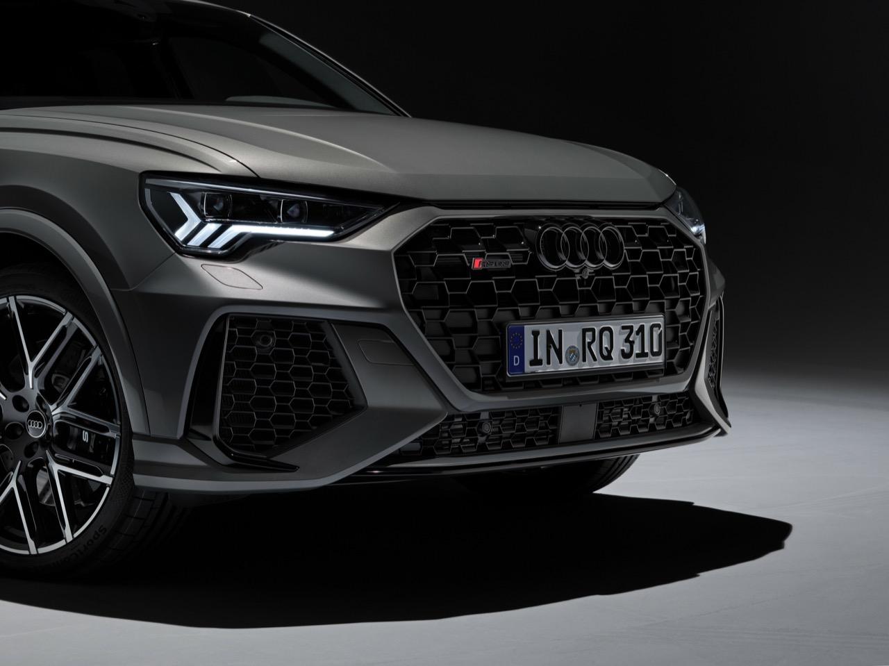 พลาสติกสีดำเงา ชิ้นส่วนเสริมของงานตกแต่งทั้งภายนอกและภายใน เน้นรูปลักษณ์พิเศษเฉพาะของรุ่น Edition 10 ไฟหน้าแบบเมทริกซ์ LED พร้อมไฟกะพริบแบบไดนามิก กรอบกระจกมองข้าง โครงหลังคา ขอบช่องหน้าต่าง และขอบประตูสีดำเงา เช่นเดียวกับชุดกระจังหน้าและชิ้นงานตกแต่งบนกันชนหน้า และแผ่นดิฟฟิวเซอร์ที่ใต้กันชนหลังสีดำเงา วงแหวนทั้ง 4 ห่วง บนกระจังหน้า Singleframe และตัวอักษร RS Q3 สีดำเงา