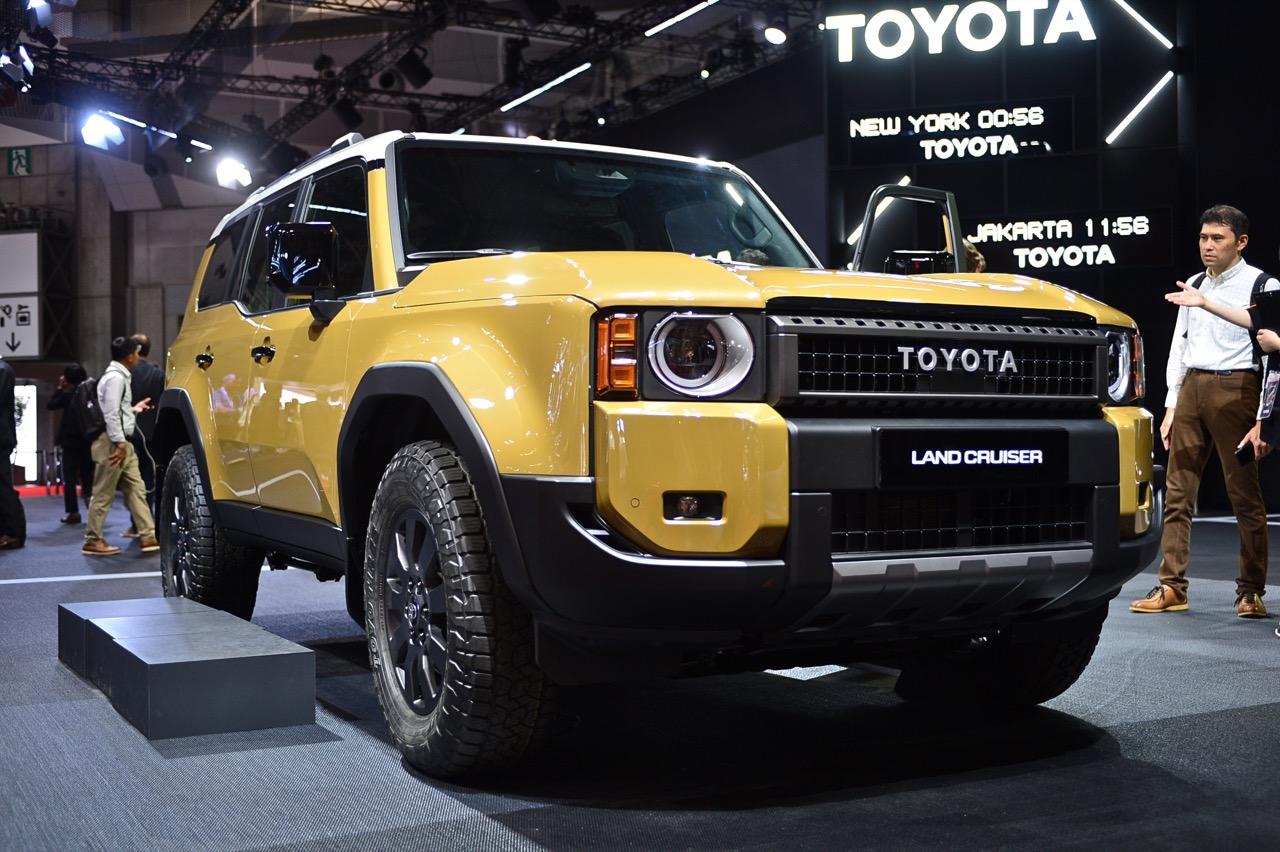 ในงาน Japan Mobility Show 2023 ตราสัญลักษณ์ Land Cruiser ที่ใช้งานยาวนานที่สุดของ Toyota ได้หวนกลับคืนสู่เวทีจัดแสดงอีกครั้ง ในฐานะรถออฟโรดที่ทนทาน เข้าถึงได้ในราคา 1,713,000 บาท (ยังไม่รวมภาษีนำเข้ากว่า 300%) 250 ใหม่ ขับเคลื่อนด้วยเครื่องยนต์เบนซินไฮบริด i-FORCE MAX เทอร์โบ 2.4 ลิตร 4 สูบ ระบบส่งกำลังไฮบริด กำลังของทั้งสองระบบรวม 326 แรงม้า แรงบิดสูงสุดจัดเต็มที่ 630 นิวตันเมตร ภายในของ 250 ติดตั้งหน้าจอสัมผัสขนาด 12.3 นิ้ว ระบบเสียงและมัลติมีเดียใหม่ล่าสุดของ Toyota จอภาพโหมดออฟโรด Multi Terrain Monitor และพวงมาลัยไฟฟ้าแบบใหม่ล่าสุด Toyota Drive By Wire Steering Wheel ระบบบังคับเลี้ยวที่แปลกประหลาด นำเอาคันเร่งและเบรกมาอยู่ที่พวงมาลัย โดยออกแบบคล้ายกับไกปืน สำหรับ Land Cruiser รุ่น First Edition ไฟหน้า LED ทรงกลมแบบดั้งเดิม แร็คหลังคา ราวกันตก และการออกแบบภายในสุดพิเศษ ระบบความปลอดภัย Toyota Safety Sense 3.0 ในทุกรุ่นย่อย