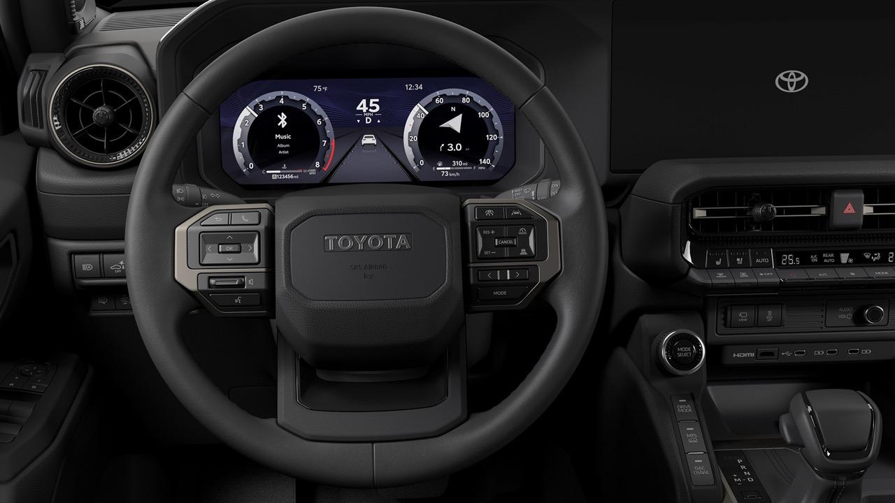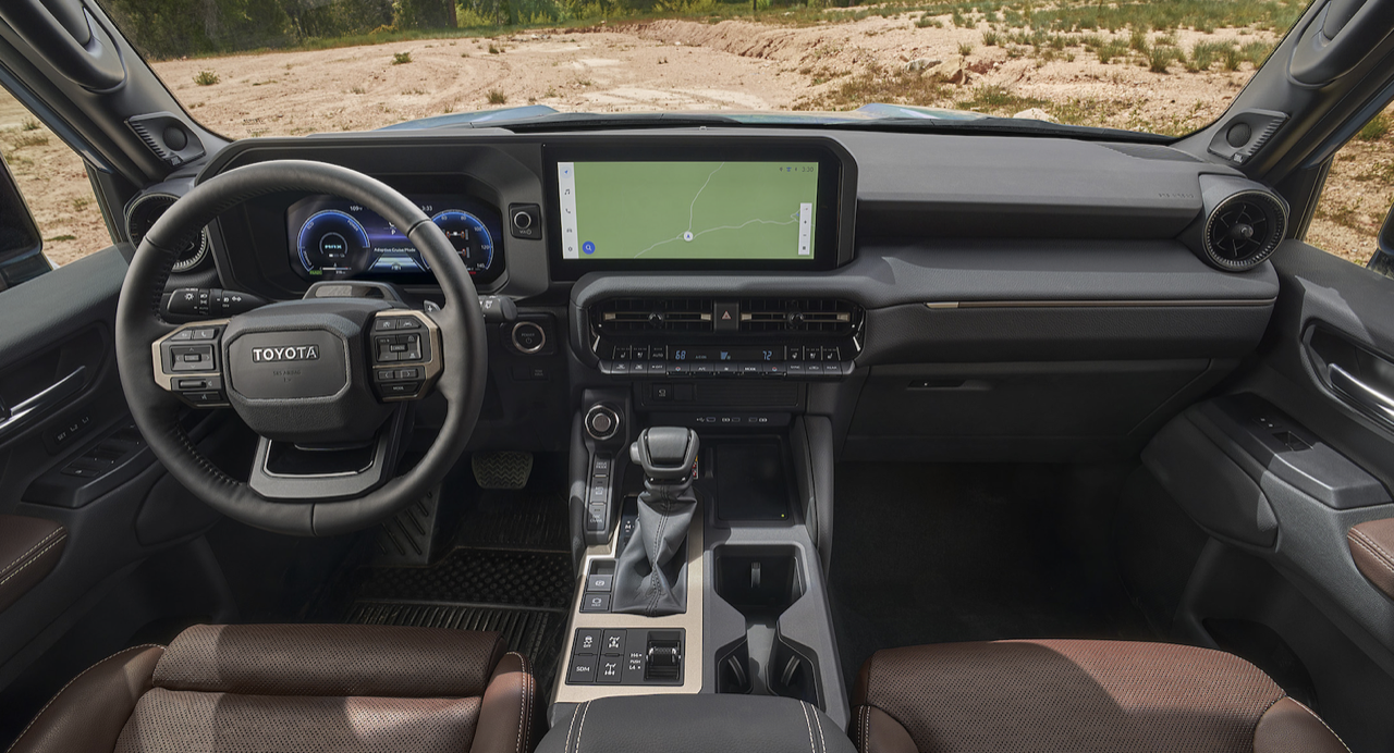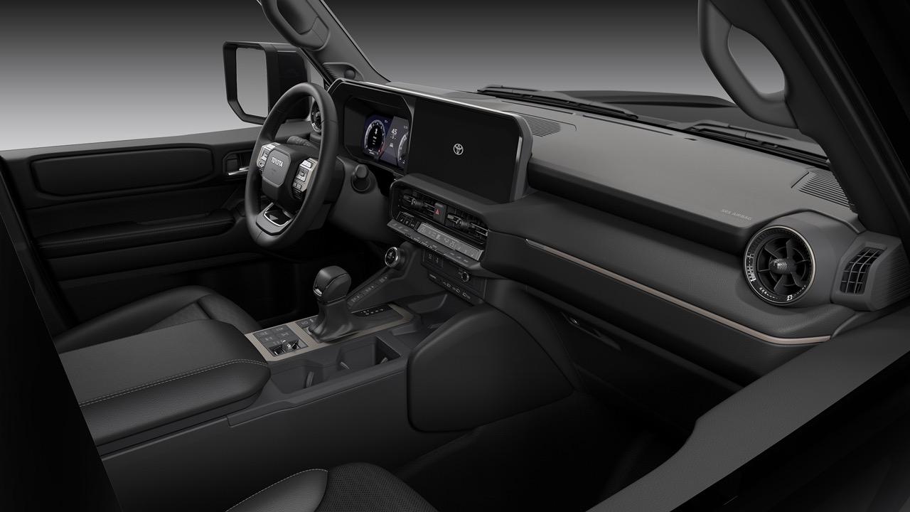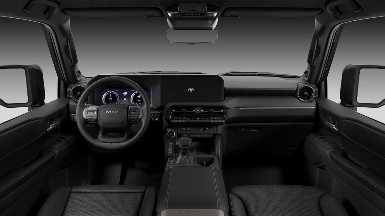 Land Cruiser 250 แบบ 5 ที่นั่ง เบาะผ้าสีดำ หน้าจอสัมผัสขนาด 8.0 นิ้ว ระบบ Audio Multimedia ล่าสุดของ Toyota รองรับ Apple CarPlay แบบไร้สาย และ Android Auto ระบบมัลติมีเดีย เข้าถึงการเชื่อมต่อและความสะดวกสบาย การอัปเดต Over-the-Air (OTA) เบาะนั่งหุ้มด้วย SofTex แบบปรับความร้อนและระบายอากาศ มีให้เลือกทั้งแบบสีดำหรือแบบ Java รวมถึงจอภาพมัลติมีเดียขนาด 12.3 นิ้ว และระบบเสียง JBL ลำโพง 14 ตัว การเชื่อมต่อ 4G สำหรับโทรศัพท์มือถือสูงสุดห้าเครื่อง ด้วยระบบ AT&T Hotspot แพ็กเกจพรีเมียม เบาะนั่งหุ้มหนังใน Land Cruiser First Edition กับเบาะนั่งหุ้มหนังและโลโก้ First Edition ที่แผงประตู แท่นชาร์จไร้สายมาตรฐาน Qi พอร์ตชาร์จ USB-C โซนหน้าและด้านหลัง กุญแจอัจฉริยะ พร้อมปุ่มสตาร์ต Remote Connect Digital Key เชื่อมต่อกับสมาร์ทโฟน สั่งงานเปิดฝาท้าย สั่งสตาร์ต สั่งเปิดหรือปิดระบบปรับอากาศ กุญแจดิจิทัลแชร์จากระยะไกลกับผู้อื่น เพื่อให้ควบคุมการเข้าถึงรถได้สะดวกขึ้น