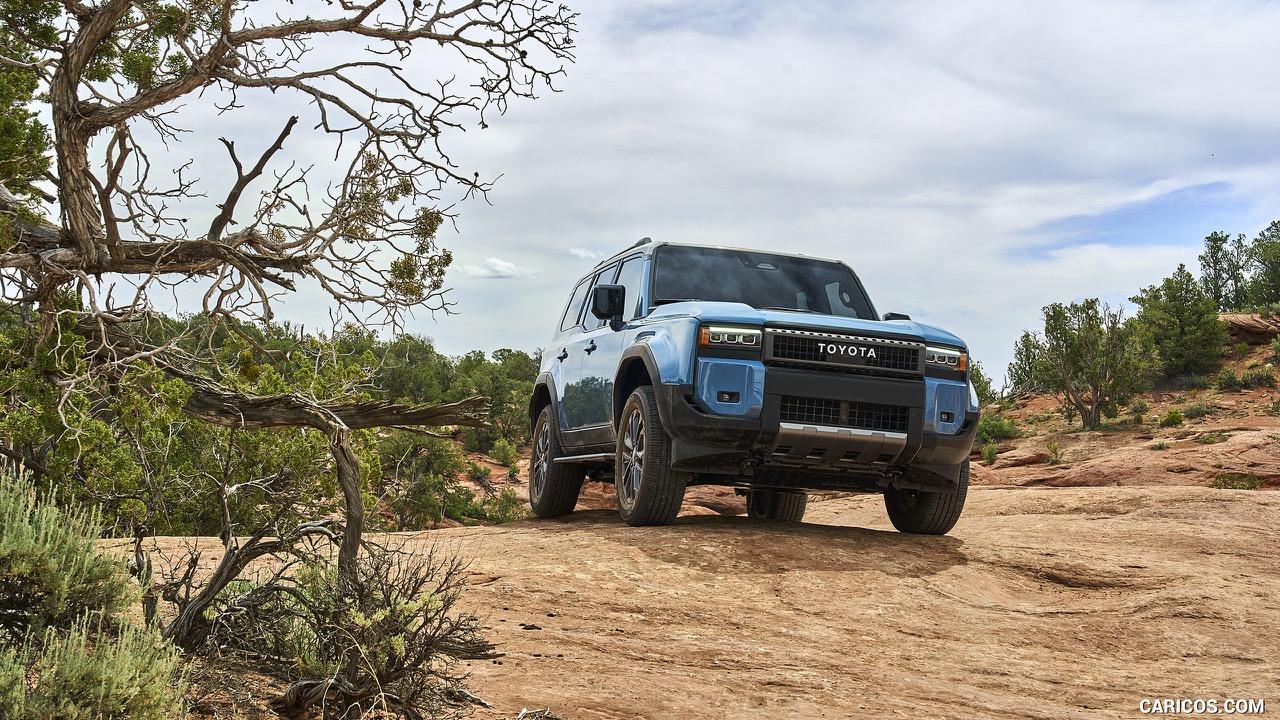 CALTY Design Research สตูดิโอในอเมริกาเหนือของ Toyota กำหนดทิศทางการออกแบบสำหรับ Land Cruiser 2024 โดยมีดีไซน์ด้านหน้าให้เลือก 2 แบบ เชื่อมโยงกับรูปลักษณ์ของ Land Cruiser ปี 1958 ไฟหน้า LED ทรงกลม กระจังหน้า TOYOTA แบบดั้งเดิม รวมถึง ไฟหน้าทรงสี่เหลี่ยมที่คล้ายกับ Land Cruiser FJ62 ทรงสี่เหลี่ยมของรถ เหมือนกับ Land Cruisers ในอดีต เสา A ถูกดันกลับ เสริมรูปลักษณ์และเพิ่มทัศนวิสัยภายนอก มีการลดระยะโอเวอร์แฮงก์หน้าเพื่อให้รถมีความคล่องตัวมากกว่าเดิม ระบบกันสะเทือนหน้าแบบปีกนกสองชั้น พัฒนาขึ้นใหม่ พร้อมโช้คอัพแบบ Mono Tupe คู่กับระบบกันสะเทือนหลังแบบมัลติลิงก์พร้อมคอยล์สปริง ให้ความรู้สึกในการบังคับเลี้ยวดีขึ้น Land Cruiser Prado ใช้พวงมาลัยพาวเวอร์ไฟฟ้า ทุกรุ่นติดตั้งดิสก์เบรกขนาด 17 นิ้ว ทั้งด้านหน้าและด้านหลัง อุปกรณ์ต่อพ่วงในทุกเกรด พร้อมความสามารถลากจูงได้ถึง 3.5 ตัน