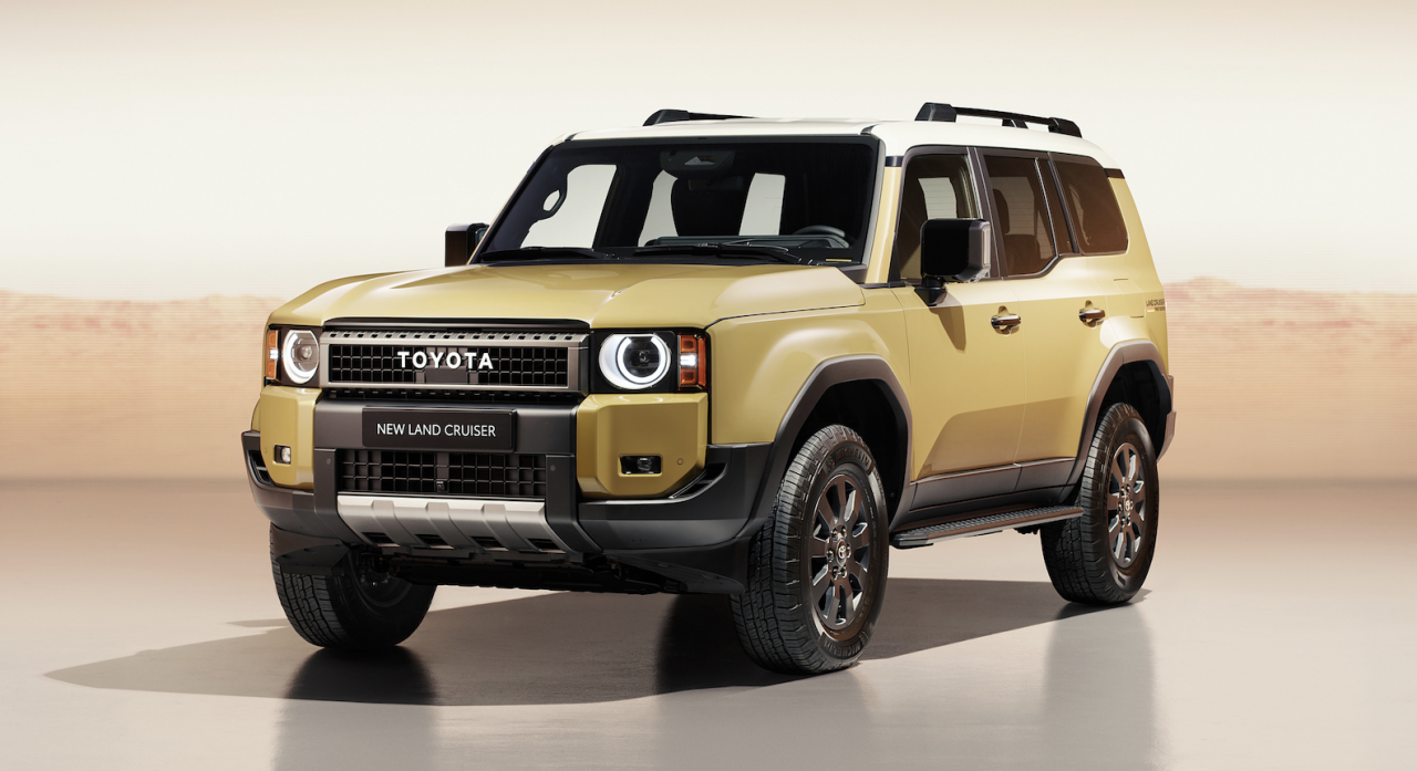 Toyota Land Cruiser 250 ปี 2024 หวนคืนสู่รากเหง้าในงานแแสดงรถยนต์ ด้วยสไตล์เรโทร ขนาดที่เล็กลงนิดหน่อย เพื่อเพิ่มความคล่องแคล่ว และที่สำคัญที่สุดคือราคาถูกลง แม้ว่าจะไม่ใช่ FJ40 redux แบบไม่มีหลังคาแบบที่คิดเอาไว้แต่แรก Land Cruiser ใหม่ มีราคาที่เข้าถึงได้มากกว่ารุ่นที่ผ่านมา โดยมีราคาเริ่มต้นที่ 50,000 ดอลลาร์ คิดเป็นเงินบาทจะอยู่ที่ประมาณ 1,713,500 บาท และมีชื่อรหัสว่า J250 รถรุ่นใหม่ ใช้แพลตฟอร์ม TNGA-F เหมือนกับ Lexus GX และ Land Cruiser 300-Series เป็นแพลตฟอร์มแบบแชสซีออนเฟรม