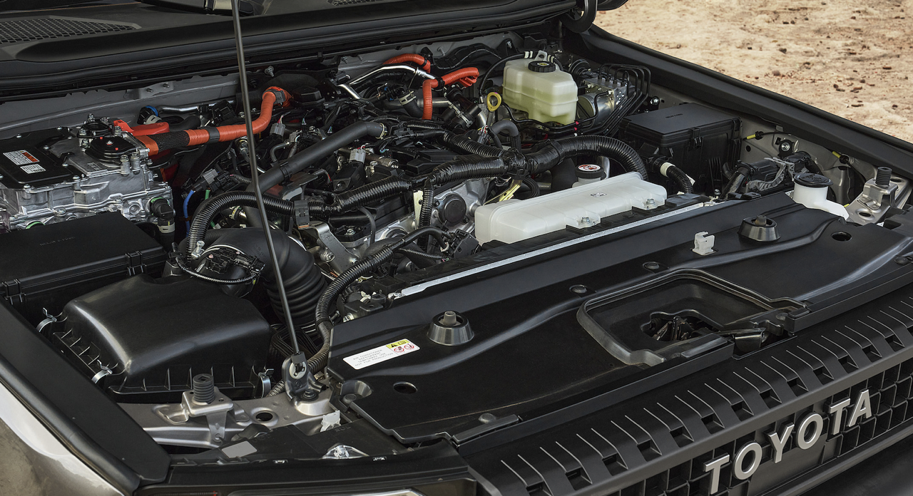 เครื่องยนต์ I-Force Max turbocharged เบนซิน 2.4 ลิตร 4 สูบแถวเรียง สร้างแรงม้า 326 ตัว แรงบิดสูงสุด 630 นิวตันเมตร มอเตอร์ไฟฟ้า 48 แรงม้า ติดตั้งอยู่ภายในกระปุกเกียร์อัตโนมัติ 8 สปีด แรงบิดของมอเตอร์ช่วยให้ Land Cruiser พุ่งออกจากจุดหยุดนิ่งหรือไต่ข้ามก้อนหินที่ขรุขระได้ดีขึ้น Land Cruisers 250-Series มาพร้อมกับระบบขับเคลื่อนสี่ล้อ เฟืองท้ายลิมิเต็ดสลิปอัตโนมัติ แพลตฟอร์ม TNGA-F body-on-frame เฟรมแบบขั้นบันไดล่าสุด ทำให้แชสซีของมันมีความแข็งแกร่งมากกว่าเดิม เมื่อเทียบกับรุ่น 200 Series การใช้เหล็กกล้าความแข็งแรงสูง พร้อมตัดขอบและเชื่อมด้วยเลเซอร์เพื่อความแม่นยำ เมื่อเทียบกับ 200 Series รุ่นก่อนหน้า Land Cruiser 250 แคบลง 111 มิลลิเมตร โอเวอร์แฮงก์หน้าสั้นลง 30 มิลลิเมตร เพื่อความสามารถในการลุยทางวิบากที่มากขึ้น