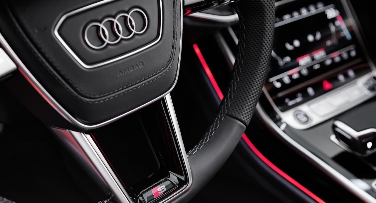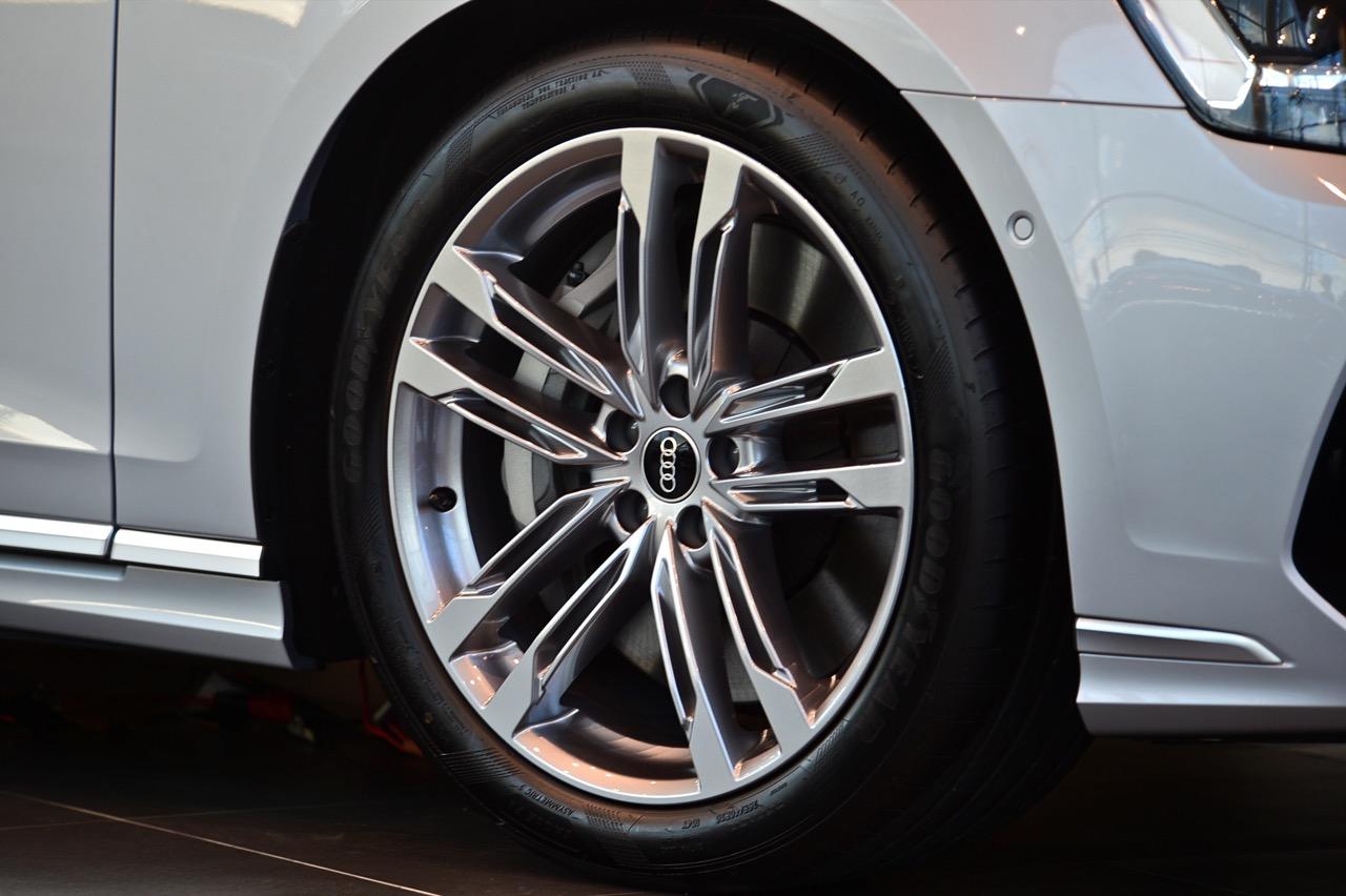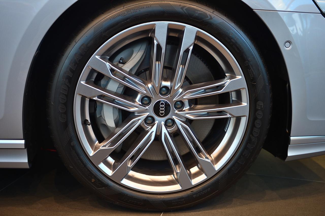 นอกเหนือจากรูปลักษณ์ภายนอกที่สง่างามแล้ว Audi ยังจัดแพ็กเกจชิ้นงานตกแต่งภายนอกแบบโครเมียมให้กับลูกค้าไทย เป็นครั้งแรกของ A8 ที่มาพร้อมกับแพ็คเกจอุปกรณ์ตกแต่งภายนอก S line แบบใหม่ล่าสุด ทีมดีไซน์ปรับด้านหน้าให้มีสัมผัสแบบไดนามิก สร้างความแตกต่างจากรุ่นพื้นฐานให้มากกว่าเดิม ล้ออัลลอยลายใหม่แบบสิบก้านคู่ที่โดดเด่น บริเวณใกล้กับช่องรับอากาศด้านข้างของกันชนหน้าออกแบบให้มีมิติที่ลึกและซับซ้อน เพื่อทำให้ส่วนหน้าของเรือธงรุ่นปรับโฉมดูดีขึ้นกว่าเดิม
