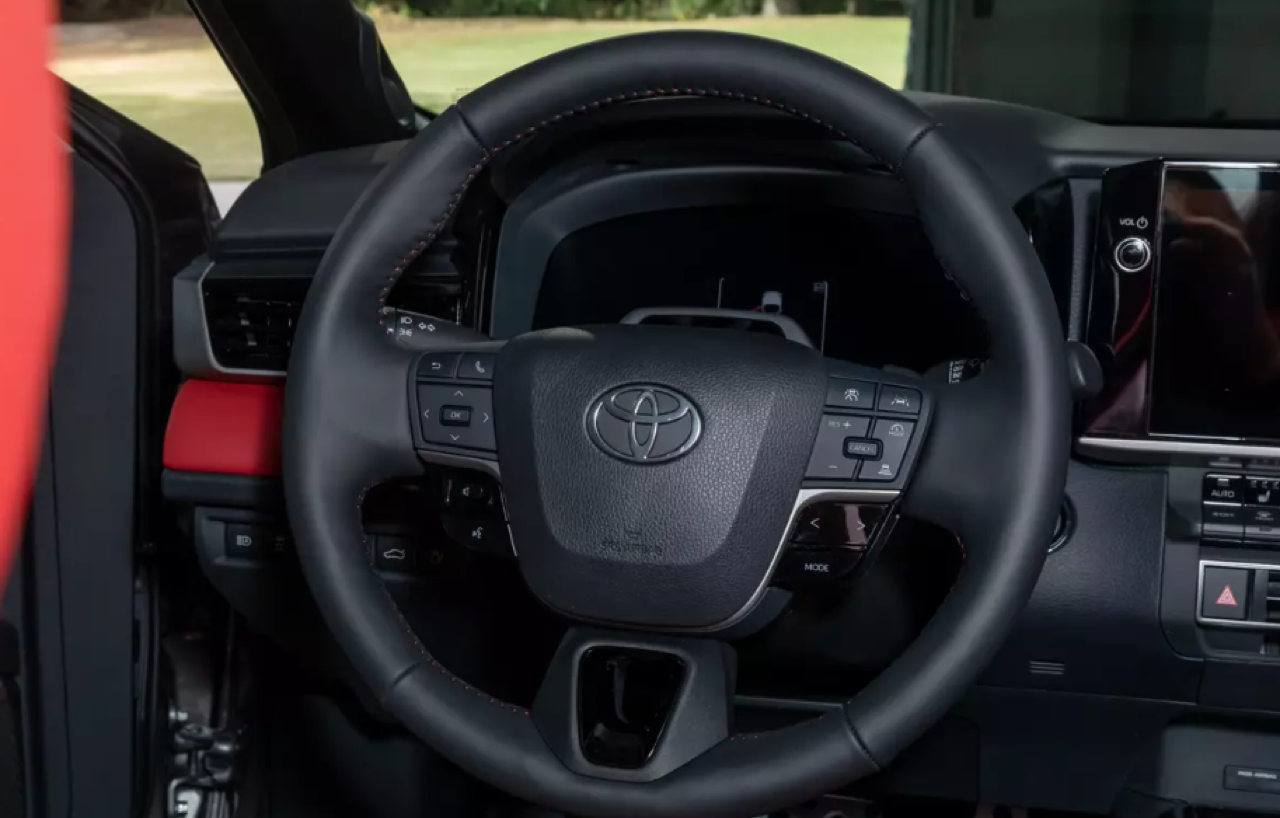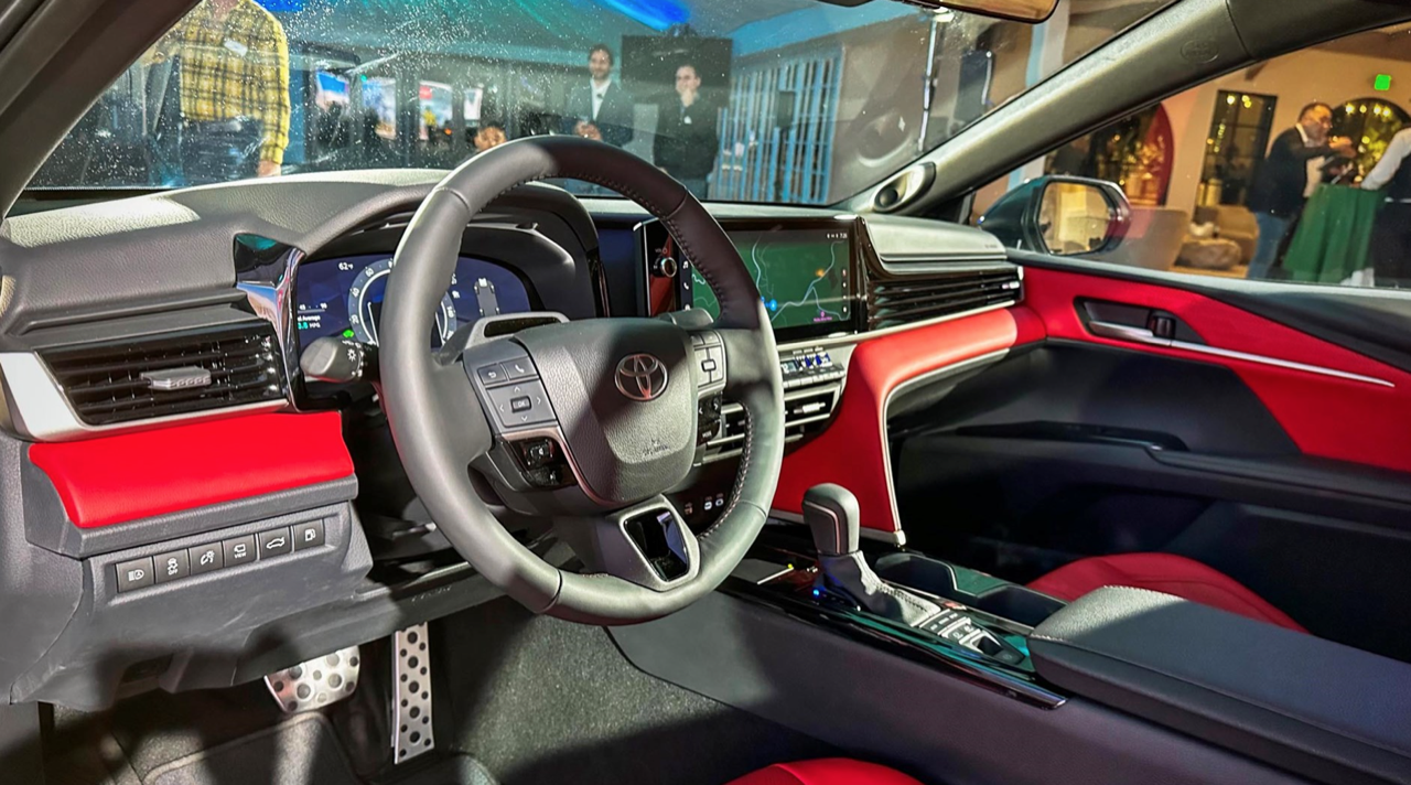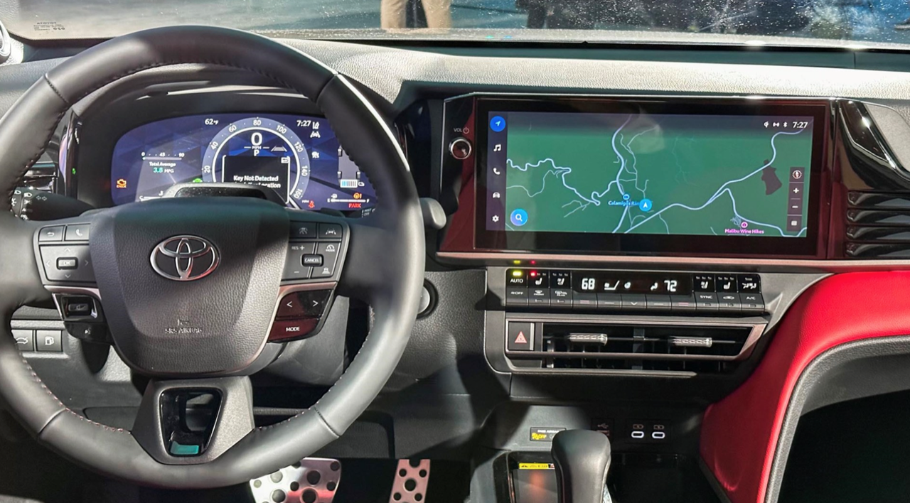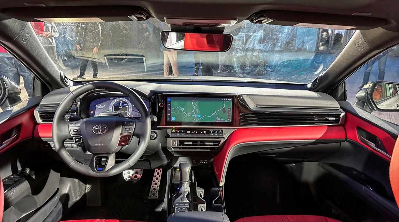 แผงหน้าปัดของ New Camry ขยายขนาดจอภาพให้ตรงกับความต้องการ เพื่อให้เหมาะกับการจัดเรียงมาตรวัด ส่วนหน้าจอมอนิเตอร์กลางระบบสัมผัสจัดฟังก์ชั่นใหม่ให้ใช้มากกว่าเดิม พวงมาลัยทรงสามก้านแบบสปอร์ตหุ้มหนังแท้ที่ปรับให้นุ่มขึ้น ปุ่มมัลติฟังก์ชั่นที่ก้านวงทั้งด้านซ้ายและขวา สั่งงานรับหรือวางโทรศัพท์บูลทูธ ปรับระดับเสียงลำโพง ปุ่มสั่งงานด้วยเสียง ปุ่มควบคุมและระบบปรับตั้งความเร็วอัตโนมัติ Adaptive Cruise Control แบบ All Speed การปรับชิ้นส่วนต่างๆ มีเพิ่มเติมเข้ามา เช่น แถบของปุ่มทางด้านซ้ายพวงมาลัยและรอบๆ คันเกียร์ แผงควบคุมระบบปรับอากาศใช้ปุ่มรูปทรงเก๋ไก๋ขนาดเล็ก กระจายอยู่บนแผงสามเหลี่ยม สำหรับชิ้นส่วนที่ใหญ่ขึ้นซึ่งตอนนี้อัดแน่นกันเป็นแถวแนวนอน Toyota บอกว่า ทั้งหมดทั้งปวงเป็นงานออกแบบที่คำนึงถึงหลักสรีรศาสตร์การใช้งานของมนุษย์ในรถยนต์นั่งส่วนบุคคล New Camry ระดับเริ่มต้นรุ่น LE และ SE จะมีจอภาพมาตรวัดดิจิทัลขนาด 7.0 นิ้ว และหน้าจอมอนิเตอร์กลางระบบสัมผัสขนาด 8.0 นิ้ว ในขณะที่รุ่นสูงกว่าอย่าง XLE และ XSE ติดตั้งจอกลางขนาด 12.3 นิ้ว