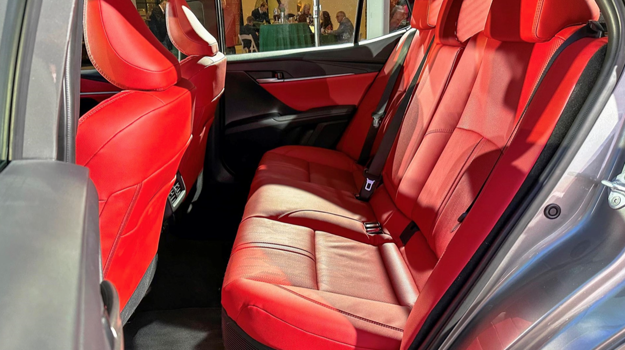 New Camry ที่ต้องต่อสู้กับรถคู่แข่งอย่าง Honda New Accord นั้นมีอุปกรณ์ครบครัน ปุ่มทั้งหมดออกแบบเพื่อควบคุมคุณสมบัติของความสะดวกสบายที่ไม่มีอยู่ใน New Accord สำหรับ New Camry ไฮบริด มีการควบรวมปุ่มโหมด EV ไว้ด้านหลังคันเกียร์ สามารถล็อกระบบส่งกำลังให้ใช้เฉพาะมอเตอร์ไฟฟ้า เพื่อการขับเคลื่อนระยะสั้นที่ความเร็วต่ำ แม้ว่าระบบจะเข้าสู่โหมด EV โดยอัตโนมัติตามการตรวจจับของระบบขับเคลื่อนไฮบริด พื้นที่เบาะหลังใน New Camry นั้นมากเกินพอต่อการโดยสารอย่างสบายๆ สองที่นั่ง มีพื้นที่วางขาที่เหมาะสม ความสูงของเบาะที่ดีเยี่ยม ต่างจาก Accord ล่าสุดตรงที่ New Camry มีช่องระบายอากาศที่เบาะหลัง พร้อมพอร์ต USB ที่มีมาให้เสียบอย่างสะใจ