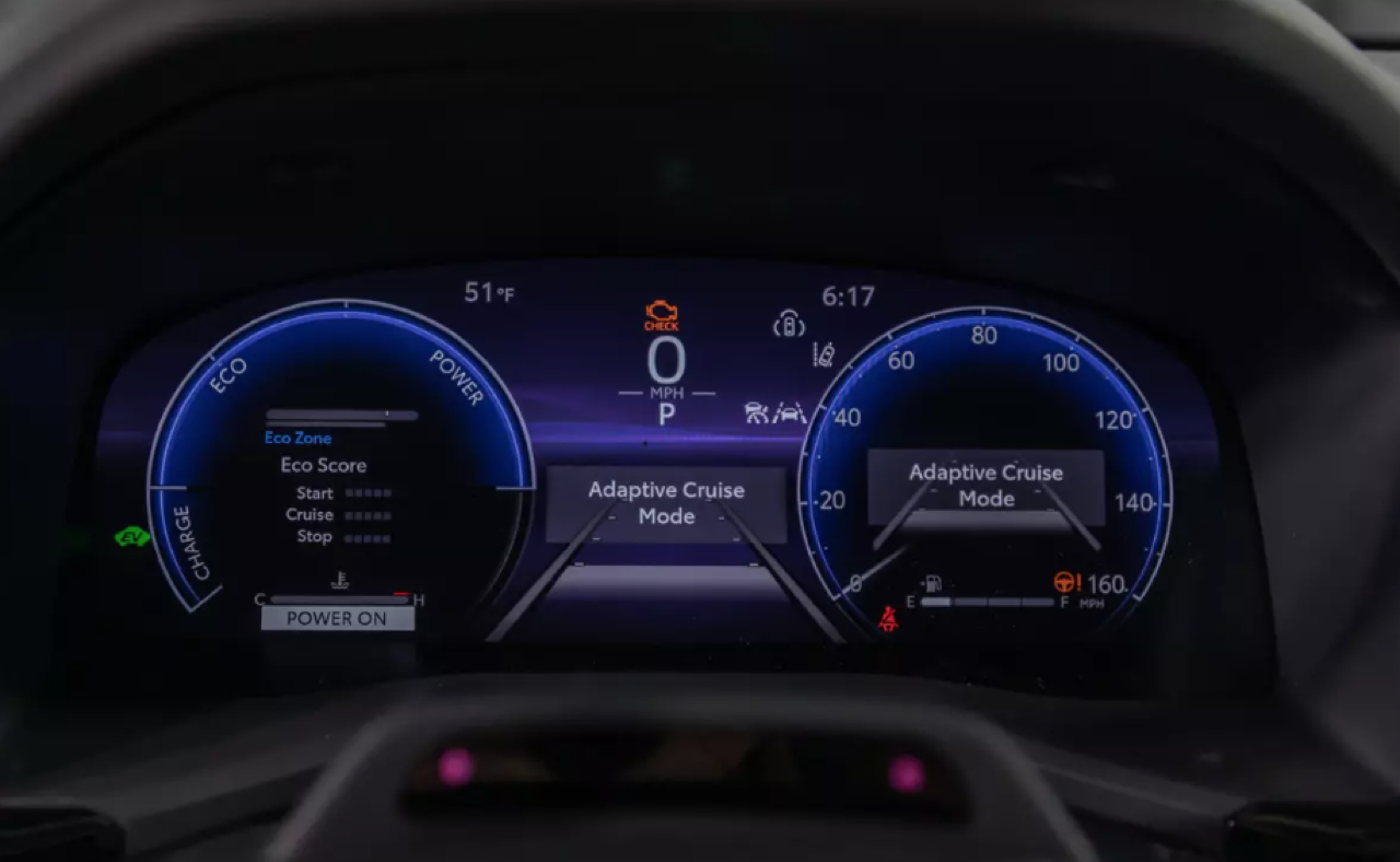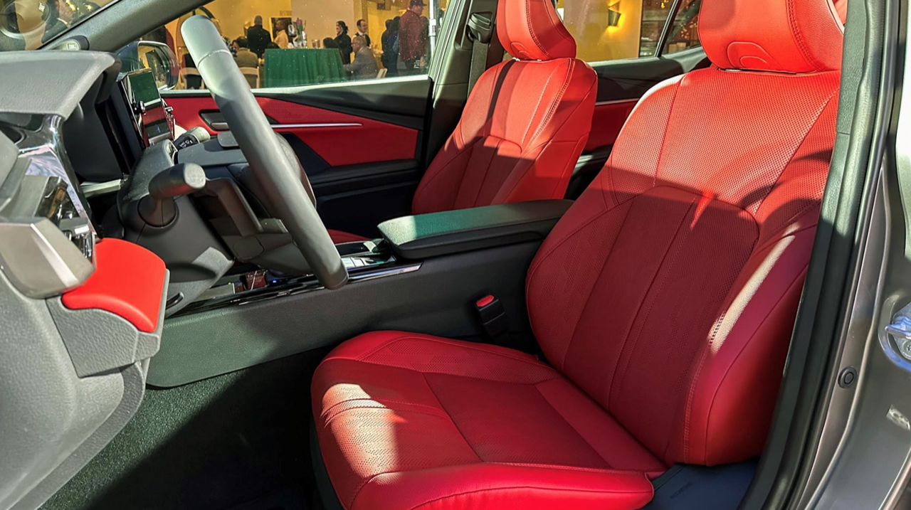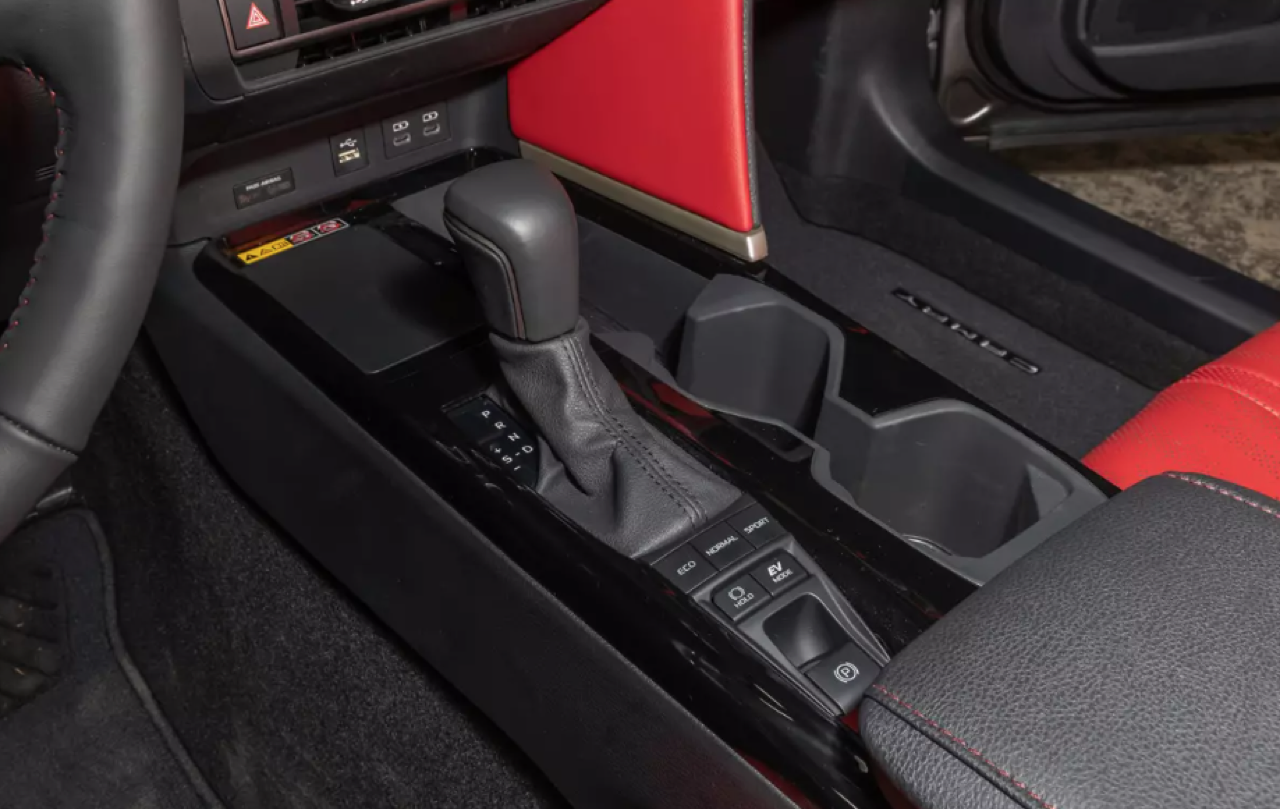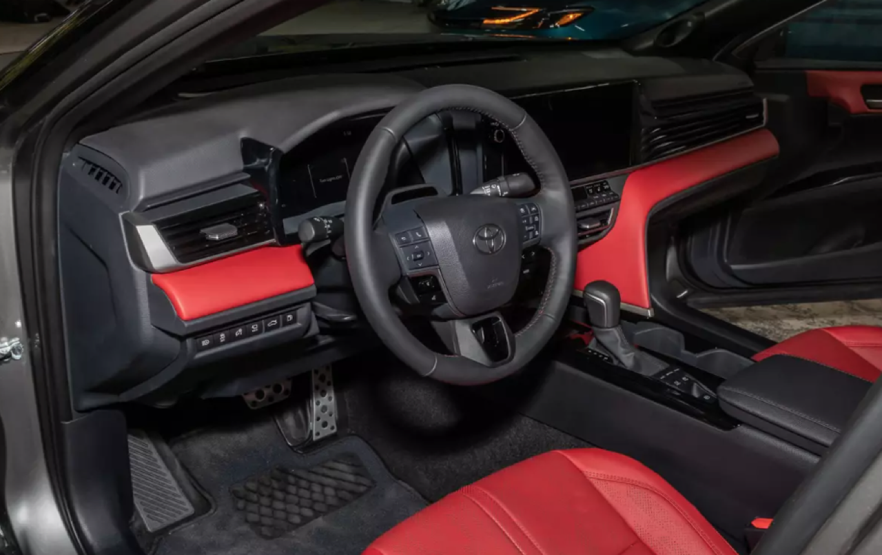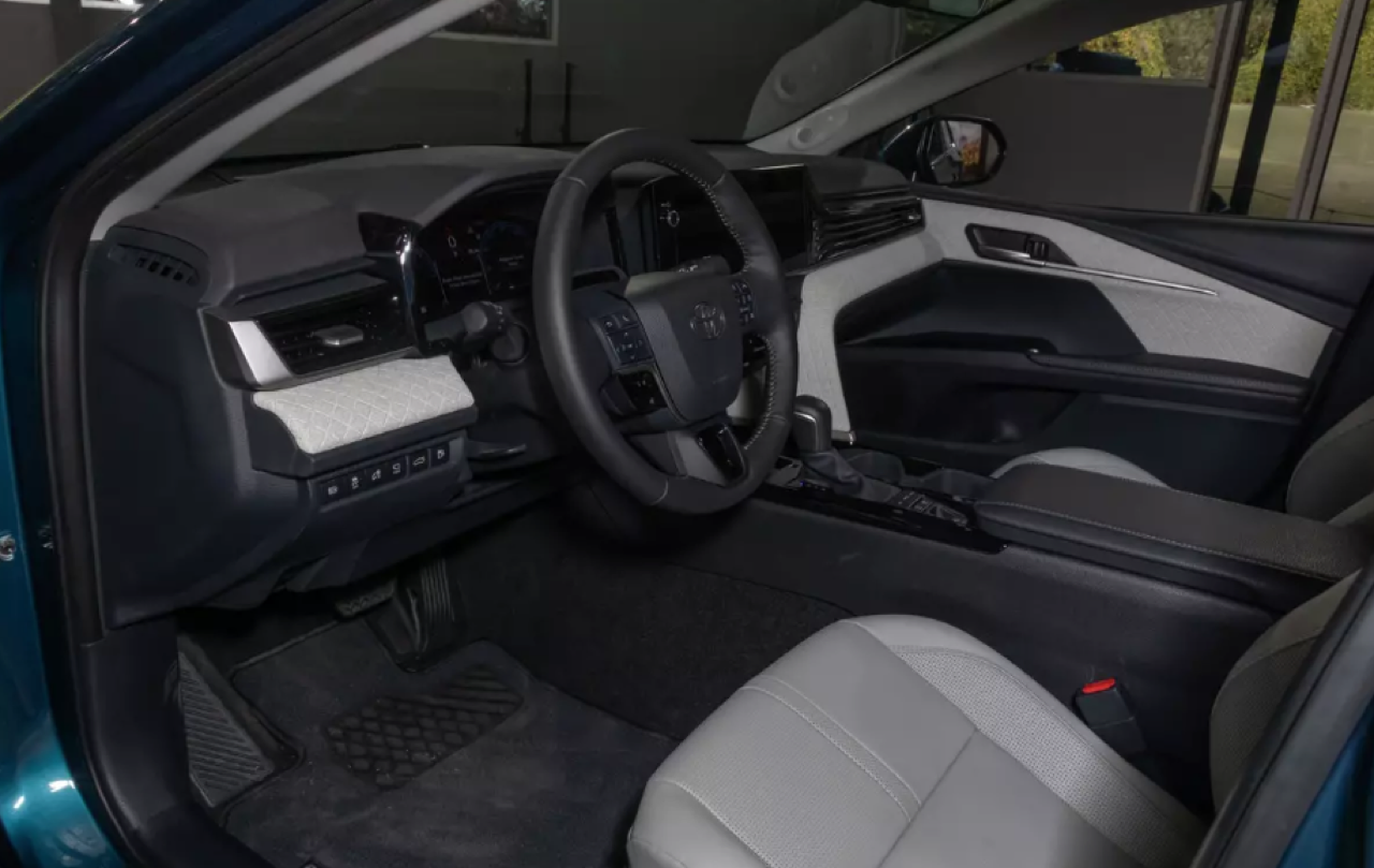 ภายในห้องโดยสาร แผงหน้าปัดแบบจอภาพทรงโค้ง วัสดุตกแต่งหลักใช้พลาสติกเกรดสูง บนคอนโซลกลางส่วนโค้ง S-curve สีเทา ไล่ตั้งแต่ที่วางแก้วน้ำไปจนถึงแผงจอภาพมาตรวัดตรงหน้าคนขับ จนขึ้นไปรอบช่องระบายอากาศ เบาะหุ้มหนังเย็บเดินตะเข็บด้วยด้ายสีขาว ใต้ช่องระบายอากาศด้านข้างแต่ละช่อง มีพลาสติกเงาดำเปียโนแบล็กตกแต่งบนแผงควบคุมระบบปรับอากาศ ลามไปจนถึงหน้าจอสัมผัส พลาสติกที่ดูดียังถูกนำมาใช้บนแผงหน้าปัด ด้วยรูปแบบแฟชั่นรถยนต์ Toyota สไตล์คลาสสิก ปุ่มต่างๆ แยกการสั่งงานบนหน้าจออย่างชัดเจน เพื่อลดความยุ่งยากที่จะเอาทุกอย่างไปรวมอยู่ในจอมอนิเตอร์กลาง ซุ้มคันเกียร์ใหม่ มีปุ่มเล็กๆ บนแผง HVAC และรอบๆ หน้าจอสัมผัส หน้าจอคลัสเตอร์เกจดิจิทัล หรือจอภาพมาตรวัดตรงหน้าคนขับจัดจอที่มีความละเอียดพร้อมโทนสีที่ทำให้อ่านค่าได้ง่าย มาตรวัดรอบและความเร็วยังอยู่เหมือนเดิม สำหรับหน้าจอสัมผัสส่วนกลางมีขนาดความกว้างถึง 12.3 นิ้ว แดชบอร์ดแบบใหม่ยังดูคล้ายกับของ Lexus บางรุ่นอีกด้วย