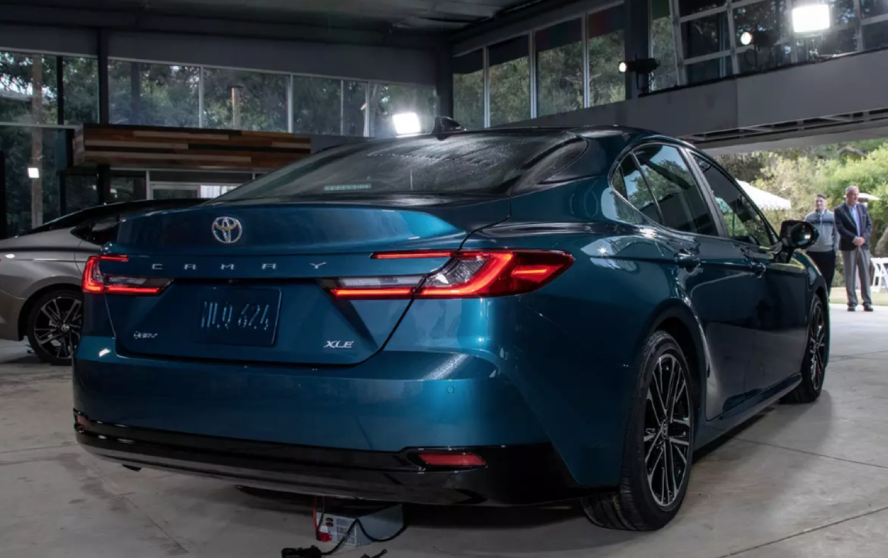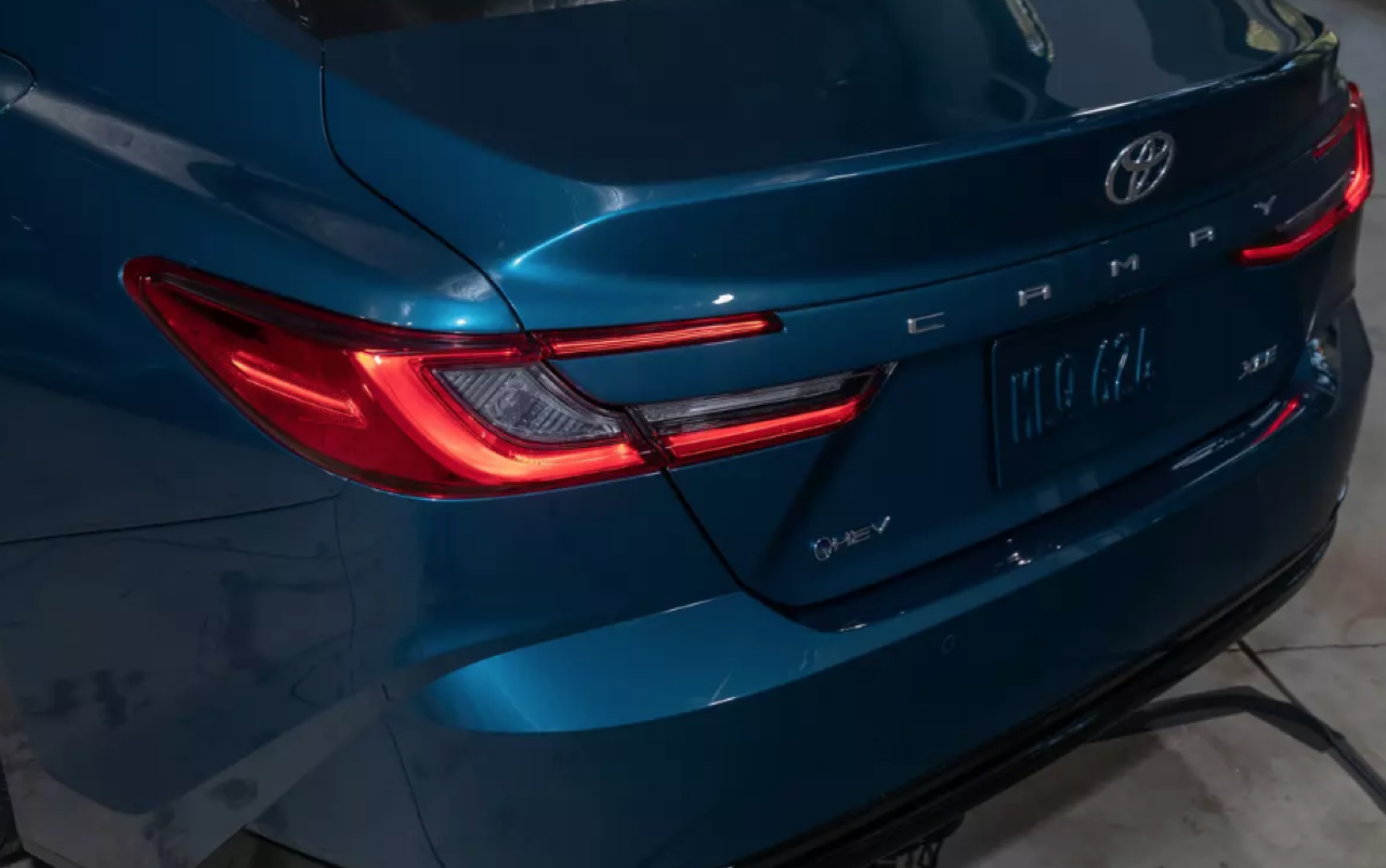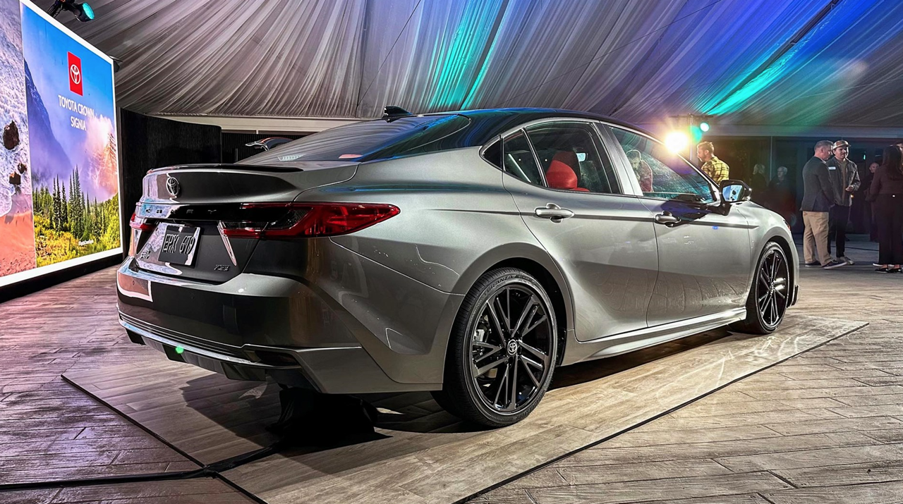 ประตูด้านข้างและแนวหลังคาของ New Camry 2024 คล้ายกับโฉมปัจจุบัน โดยพื้นฐานมันดูเหมือนกัน แต่แพลตฟอร์ม TNGA ใน New Camry ก็มีการปรับปรุงอย่างต่อเนื่อง Camry ใหม่ เพรียวบางขึ้นด้วยการออกแบบไฟหน้าและไฟท้ายที่ลดขนาดให้บางลง มุมของกันชนที่ไหลลื่น ฝากระโปรงหน้าเชื่อมโยงกับทรงของชุดกระจังแบบใหม่ ฝาท้ายยิ่งดูยิ่งคล้ายของเดิม บั้นท้ายที่คมชัดทำให้ลุคใหม่ดูกระชับขึ้น พื้นผิวที่โค้งมนมากขึ้นผสมผสานอย่างลงตัวกับแนวด้านข้างตัวถังที่ยังคงคมชัด สีทูโทนของ New Camry รุ่น XSE กับหลังคาสีดำสนิท ถือเป็นทางเลือกสำหรับรถรุ่นใหม่ที่จะออกขายในอเมริกา จากนั้น New Camry ก็จะทยอยเปิดตัวพร้อมๆ กันทั่วโลก ในทุกตลาดที่มี Camry โฉมปัจจุบันวางขาย
