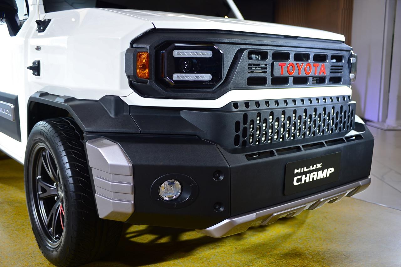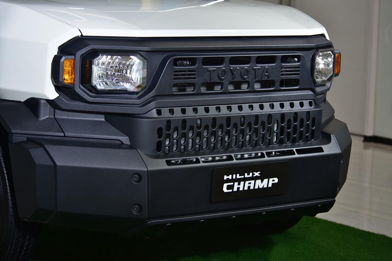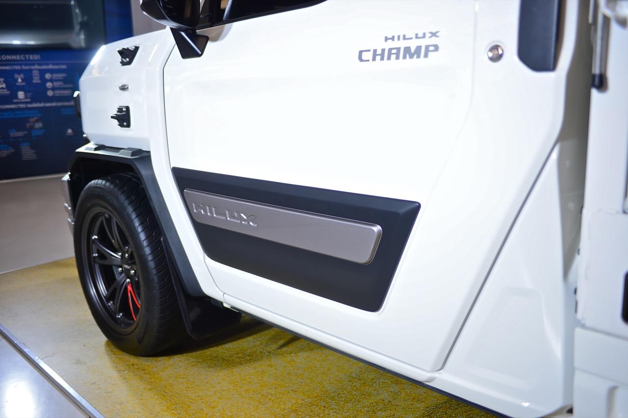 Toyota Hilux Champ เน้นความทนทานขั้นสูง ความง่ายในการซ่อมบำรุง การออกแบบกันชนหน้าให้แยกออกเป็น 3 ชิ้น ซ้าย-ขวา-กลาง ชิ้นไหนได้รับความเสียหาย ก็เปลี่ยนเฉพาะจุดไป รวมถึงการมีจุดรัด ห่วงผูกเชือก แฝงอยู่ตามจุดต่างๆ รอบรถในลักษณะที่เอื้ออำนวยความสะดวกในการใช้งาน โดยเฉพาะในกลุ่มลูกค้าที่ใช้รถเพื่อส่งของ ขายของ เป็นรถหน่วยงานหรือรถสำหรับการเดินทางท่องเที่ยว เป็นร้านกาแฟ ร้านขายของเคลื่อนที่ มีหูยึดผูกเชือก ช่วยให้เติมโครงสร้างต่างๆ เข้าไปได้ง่ายในยามที่รถจอด ทีมออกแบบพยายามทำให้กระบะท้ายปรับแต่งเปลี่ยนรูปแบบ ถอดหรือติดตั้งชิ้นส่วนได้ง่าย ชนิดที่ว่า ถ้าเป็นการแปลงนิดๆ หน่อยๆ สามารถทำเองได้ งานหลักที่ไม่ซับซ้อน เช่น ตั้งเสา ติดหลังคา ถอด/ใส่เก้าอี้นั่ง ต้องสามารถทำได้โดยใช้คน 2 คน กับเวลา 1 ชั่วโมง ความง่ายลักษณะนี้ ทำให้การนำไปดัดแปลงให้ตรงกับการใช้งานนั้นค่อนข้างโดนใจ โดยเฉพาะธุรกิจขายของหรือขนส่งที่ต้องเคลื่อนที่อยู่ตลอดเวลา