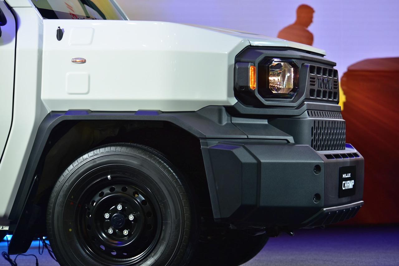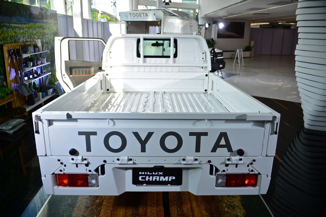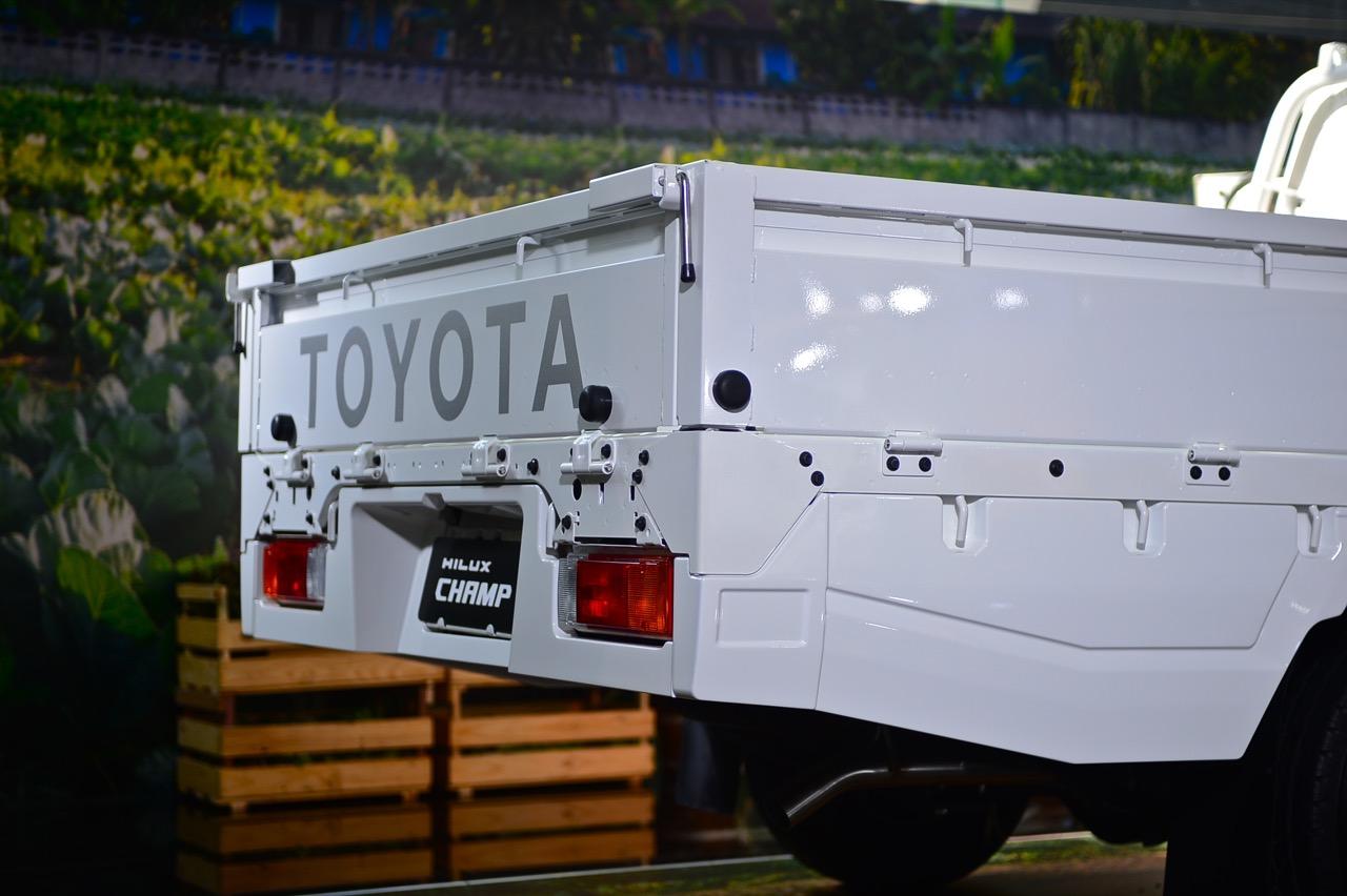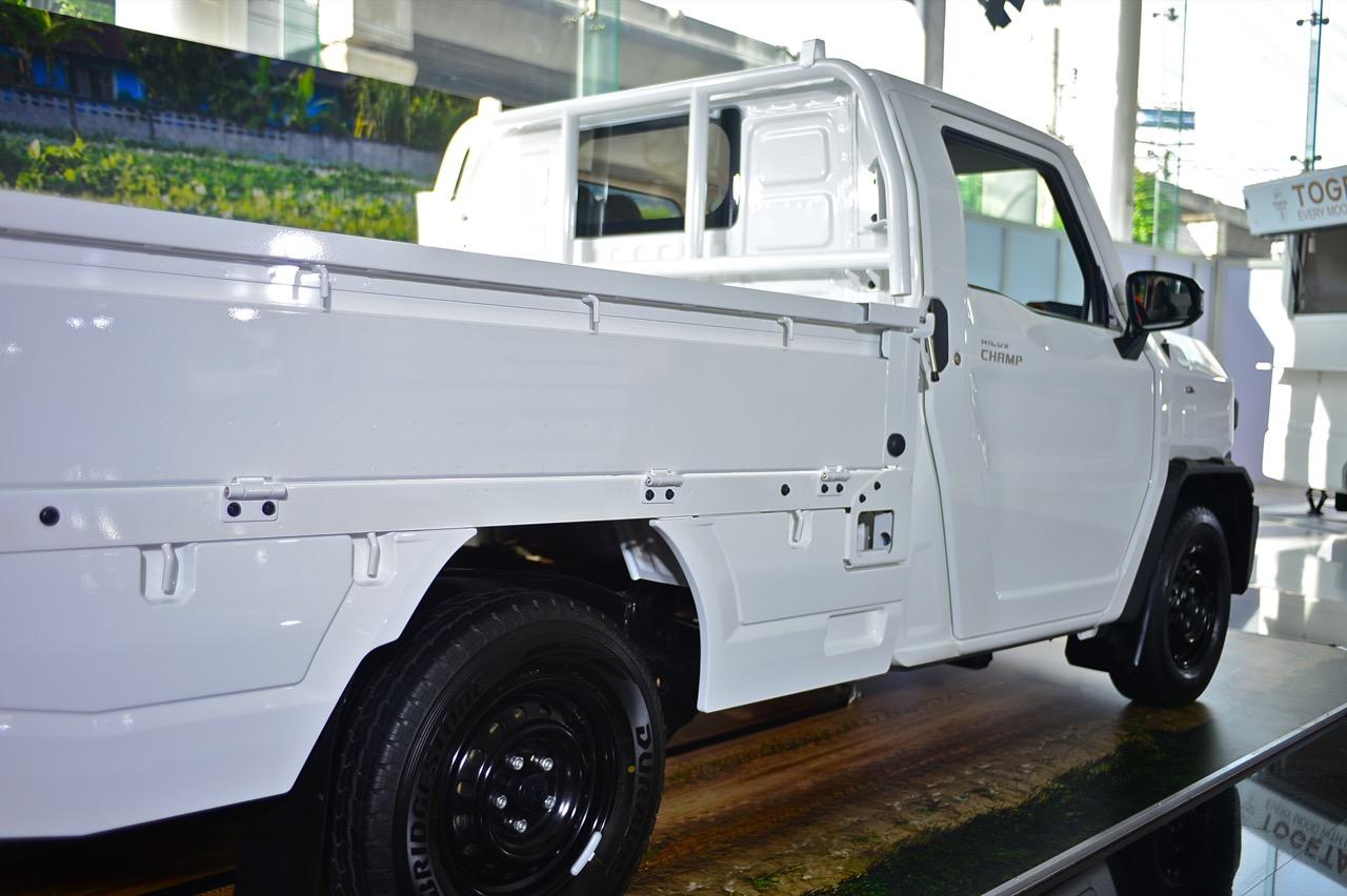 Toyota Hilux Champ เน้นความทนทานขั้นสูง ความง่ายในการซ่อมบำรุง การออกแบบกันชนหน้าให้แยกออกเป็น 3 ชิ้น ซ้าย-ขวา-กลาง ชิ้นไหนได้รับความเสียหาย ก็เปลี่ยนเฉพาะจุดไป รวมถึงการมีจุดรัด ห่วงผูกเชือก แฝงอยู่ตามจุดต่างๆ รอบรถในลักษณะที่เอื้ออำนวยความสะดวกในการใช้งาน โดยเฉพาะในกลุ่มลูกค้าที่ใช้รถเพื่อส่งของ ขายของ เป็นรถหน่วยงานหรือรถสำหรับการเดินทางท่องเที่ยว เป็นร้านกาแฟ ร้านขายของเคลื่อนที่ มีหูยึดผูกเชือก ช่วยให้เติมโครงสร้างต่างๆ เข้าไปได้ง่ายในยามที่รถจอด ทีมออกแบบพยายามทำให้กระบะท้ายปรับแต่งเปลี่ยนรูปแบบ ถอดหรือติดตั้งชิ้นส่วนได้ง่าย ชนิดที่ว่า ถ้าเป็นการแปลงนิดๆ หน่อยๆ สามารถทำเองได้ งานหลักที่ไม่ซับซ้อน เช่น ตั้งเสา ติดหลังคา ถอด/ใส่เก้าอี้นั่ง ต้องสามารถทำได้โดยใช้คน 2 คน กับเวลา 1 ชั่วโมง ความง่ายลักษณะนี้ ทำให้การนำไปดัดแปลงให้ตรงกับการใช้งานนั้นค่อนข้างโดนใจ โดยเฉพาะธุรกิจขายของหรือขนส่งที่ต้องเคลื่อนที่อยู่ตลอดเวลา
