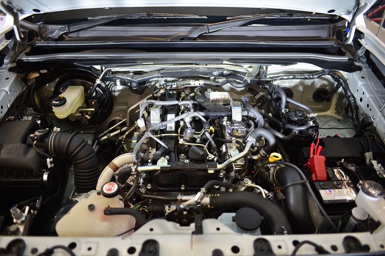 เปิดฝากระโปรง จะเห็นเครื่องยนต์ดีเซล 2GD-FTV นอนอยู่ภายใน ด้วยความที่ไม่มีฝาครอบเครื่องยนต์พลาสติก ทำให้เครื่องยนต์ 2-GD ดูยุ่งเหยิงพอสมควร กับการจัดวางสายเวคคัมและท่อแรงดันต่างๆ เครื่อง 2.4 ลิตร มีกำลัง 150 แรงม้า แรงบิด 343 นิวตันเมตรในรุ่นเกียร์ธรรมดา และ 400 นิวตันเมตรในรุ่นเกียร์อัตโนมัติ เน้นใช้งาน ทนทาน ไว้ใจได้มากกว่าความทันสมัย 2GD เป็นเครื่องที่รู้กันว่ารอบต้นแรงดี รอบปลายเหี่ยว ใช้น้ำมันคุ้มค่าและปัญหาจุกจิกไม่มี ถ้าอยากปรับจูนเครื่องให้แรงขึ้น ก็แค่เอาหัวฉีดกับเทอร์โบของ 1GD 2.8 ลิตร มาใส่