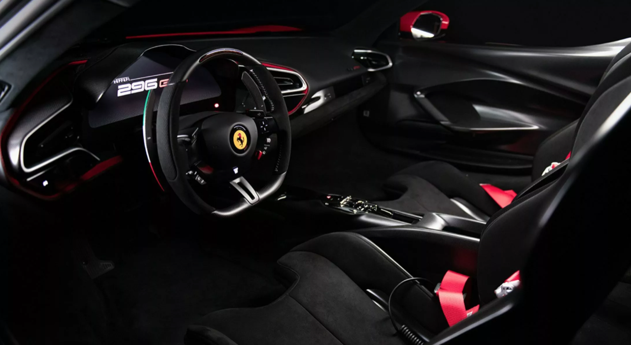 แรงบันดาลใจจากประวัติศาสตร์ของรถแข่ง F1 อันโด่งดัง นักออกแบบของ Ferrari Atelier ปรับโครงสร้างที่เรียบง่ายแต่งดงามของรถรุ่น 296 GTB การตกแต่งที่สวยงาม ผสมผสานสีเมทัลลิก Rosso F1 สามชั้น เข้ากับสีขาว Bianco King White สามารถมองเห็นได้ที่ช่องกันชน หลังคา กาบข้าง และแผงด้านหลัง ในส่วนของหมายเลข 1 ที่ฝากระโปรงหน้านั้น ย้อนกลับไปในยุคที่ Scuderia Ferrari ครองตำแหน่งสูงสุดในการแข่งขัน Formula 1