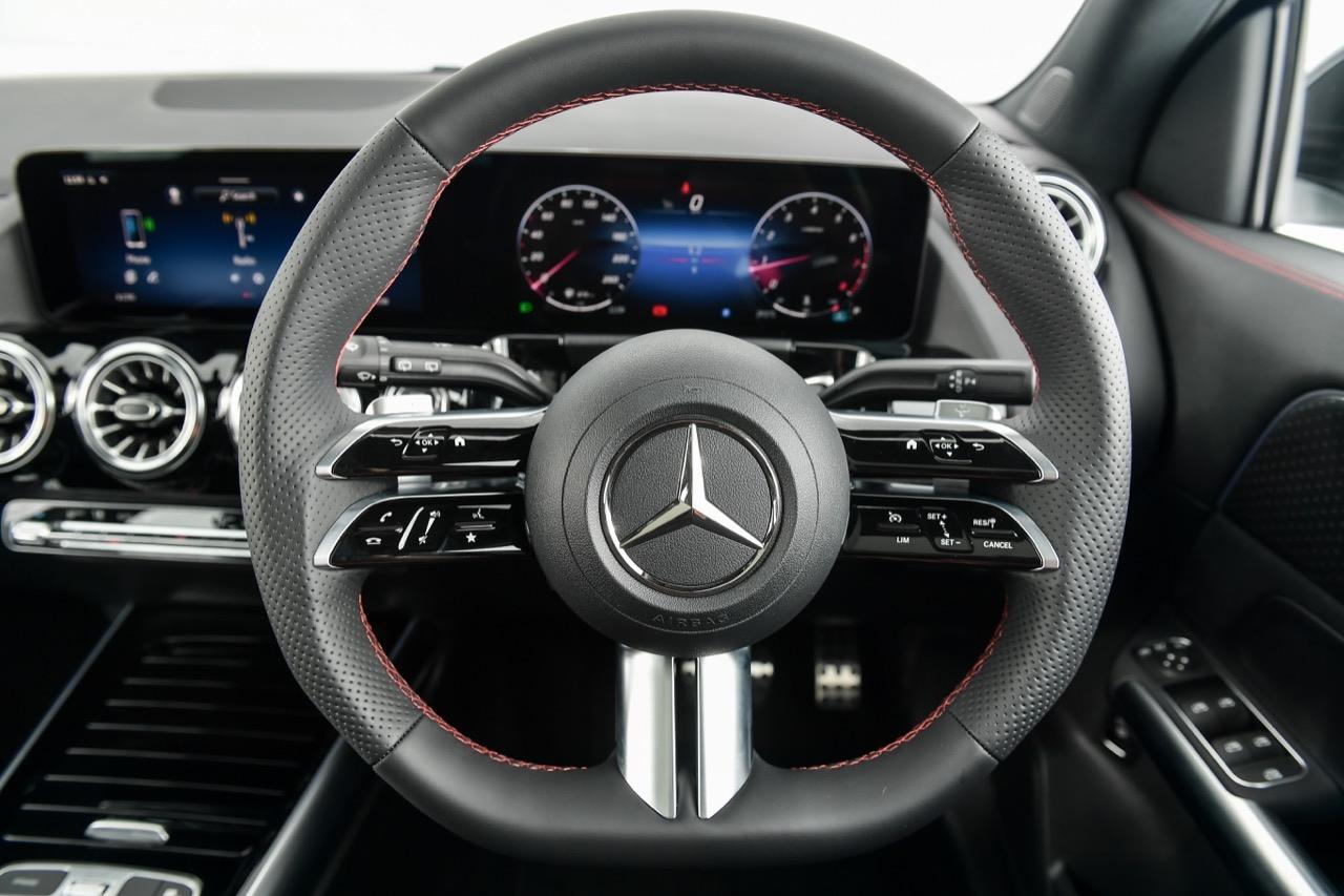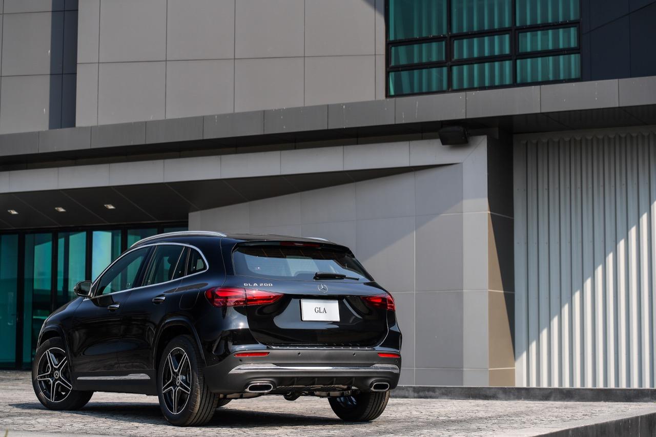 Mercedes-Benz GLA 200 AMG Dynamic มิติตัวถัง ขนาดความยาว 4,436 มม. ความกว้าง 1,849 มม. ความสูง 1,605 มม. พื้นที่บรรทุกสัมภาระ ความจุ 435–1,430 ลิตร ดีไซน์ภายนอก ตกแต่งแบบ AMG Line Package ใกล้เคียงกับรถสมรรถนะสูงภายใต้แบรนด์ Mercedes-AMG กระจังหน้า Diamond radiator grille โลโก้ดาวสามแฉกขนาดใหญ่ตรงกลาง ตกแต่งรอบคันแบบ AMG bodystyling อุปกรณ์กันกระแทกโครงหลังคา aluminium ระบบไฟหน้า LED High Performance ระบบปรับไฟสูงอัตโนมัติ (Adaptive Highbeam Assist) ช่วยให้การขับขี่ในช่วงเวลากลางคืนมีประสิทธิภาพยิ่งขึ้น ล้ออัลลอยดีไซน์สปอร์ตจาก AMG แบบ 5 ก้านคู่ ขนาด 19 นิ้ว พร้อม Sports brake ระบบช่วงล่าง Comfort suspension แบบ ride-height lowering รถรุ่นปรับโฉมยังมาพร้อมการเพิ่มหลังคาพาโนรามิกซันรูฟ เลื่อนเปิด-ปิดได้ด้วยระบบไฟฟ้า