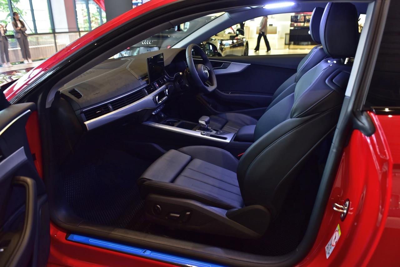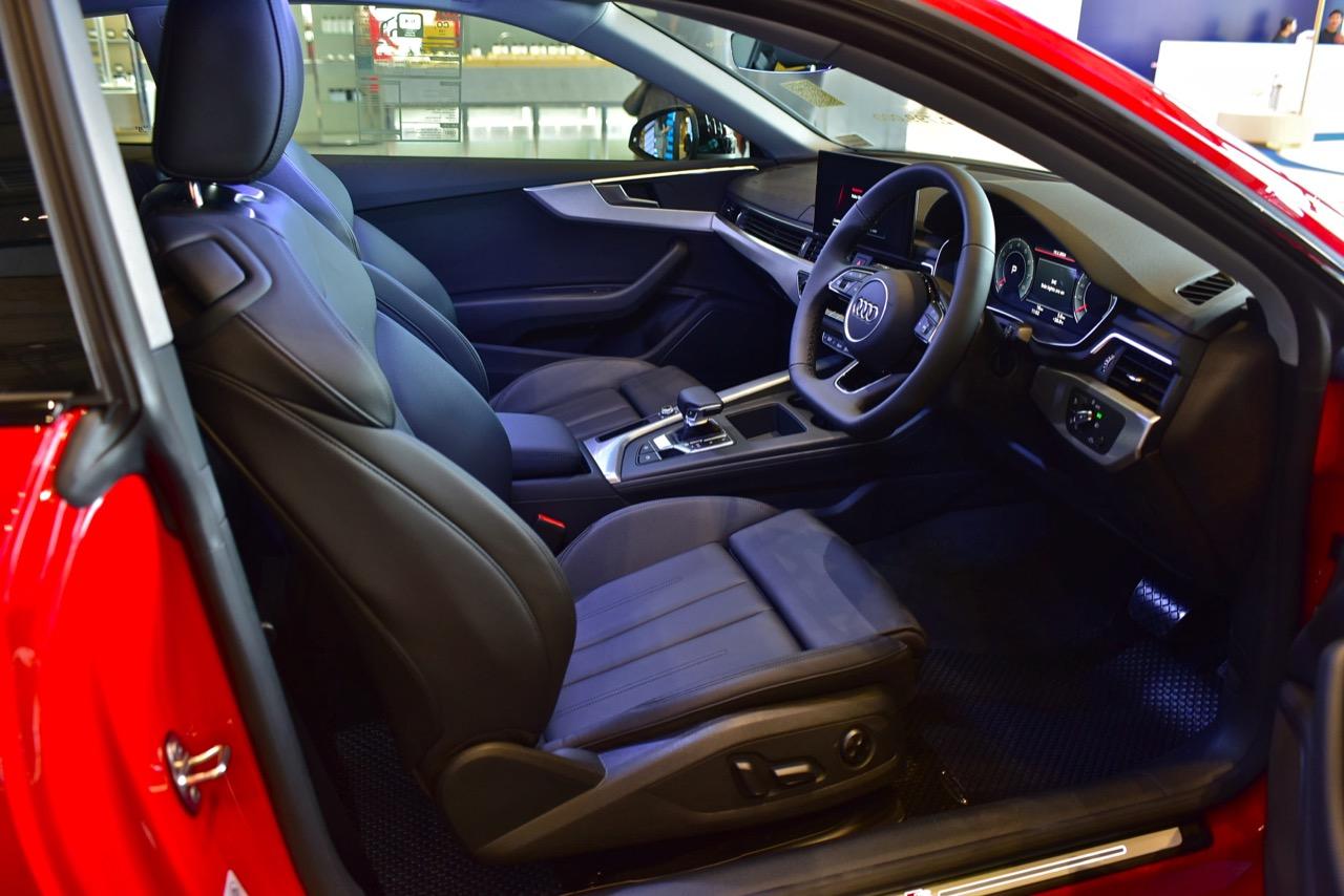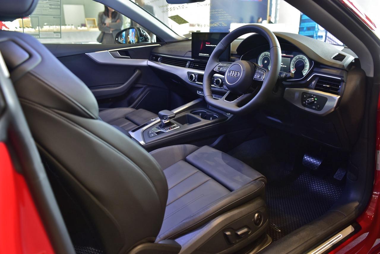 ภายในของ New A5 40TFSI S-Line และ A5 45 TFSI S-Line ติดตั้งระบบ MMI Plus พร้อมจอภาพที่สั่งงานด้วยฟังก์ชันใหม่ในระบบสัมผัส เทคนิค Virtual Cockpit ห้องโดยสารแตกต่างไปจาก BMW และ Mercedes-Benz โดยเฉพาะความหรูหราเรียบง่ายที่ Audi เน้นเป็นพิเศษ แดชบอร์ดคอนโซลที่ขึ้นรูปด้วยโฟมแล้วหุ้มด้วยวัสดุไวนิลที่มีคุณภาพ จอมอนิเตอร์กลางใช้ฟังก์ชันสั่งงานแบบใหม่ แผงควบคุมอุณหภูมิแบบปุ่มหมุนที่ใช้งานได้ง่าย คอนโซลซุ้มเกียร์ของ A5 ยุคใหม่ ตัดแผงควบคุมแบบเก่าออกไป แล้วใช้การสัมผัสที่หน้าจอภาพในการสั่งงาน