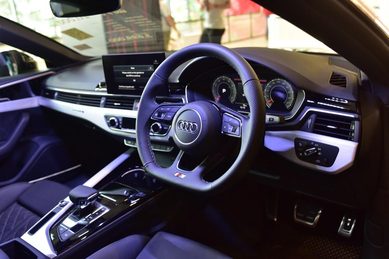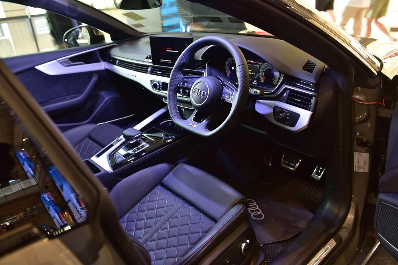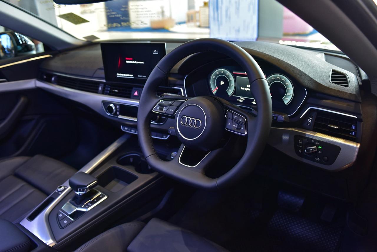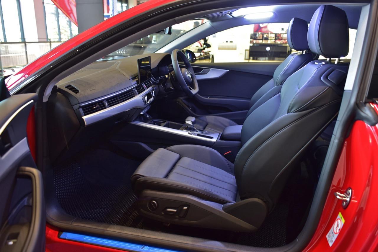 ภายในของ New A5 40TFSI S-Line และ A5 45 TFSI S-Line ติดตั้งระบบ MMI Plus พร้อมจอภาพที่สั่งงานด้วยฟังก์ชันใหม่ในระบบสัมผัส เทคนิค Virtual Cockpit ห้องโดยสารแตกต่างไปจาก BMW และ Mercedes-Benz โดยเฉพาะความหรูหราเรียบง่ายที่ Audi เน้นเป็นพิเศษ แดชบอร์ดคอนโซลที่ขึ้นรูปด้วยโฟมแล้วหุ้มด้วยวัสดุไวนิลที่มีคุณภาพ จอมอนิเตอร์กลางใช้ฟังก์ชันสั่งงานแบบใหม่ แผงควบคุมอุณหภูมิแบบปุ่มหมุนที่ใช้งานได้ง่าย คอนโซลซุ้มเกียร์ของ A5 ยุคใหม่ ตัดแผงควบคุมแบบเก่าออกไป แล้วใช้การสัมผัสที่หน้าจอภาพในการสั่งงาน