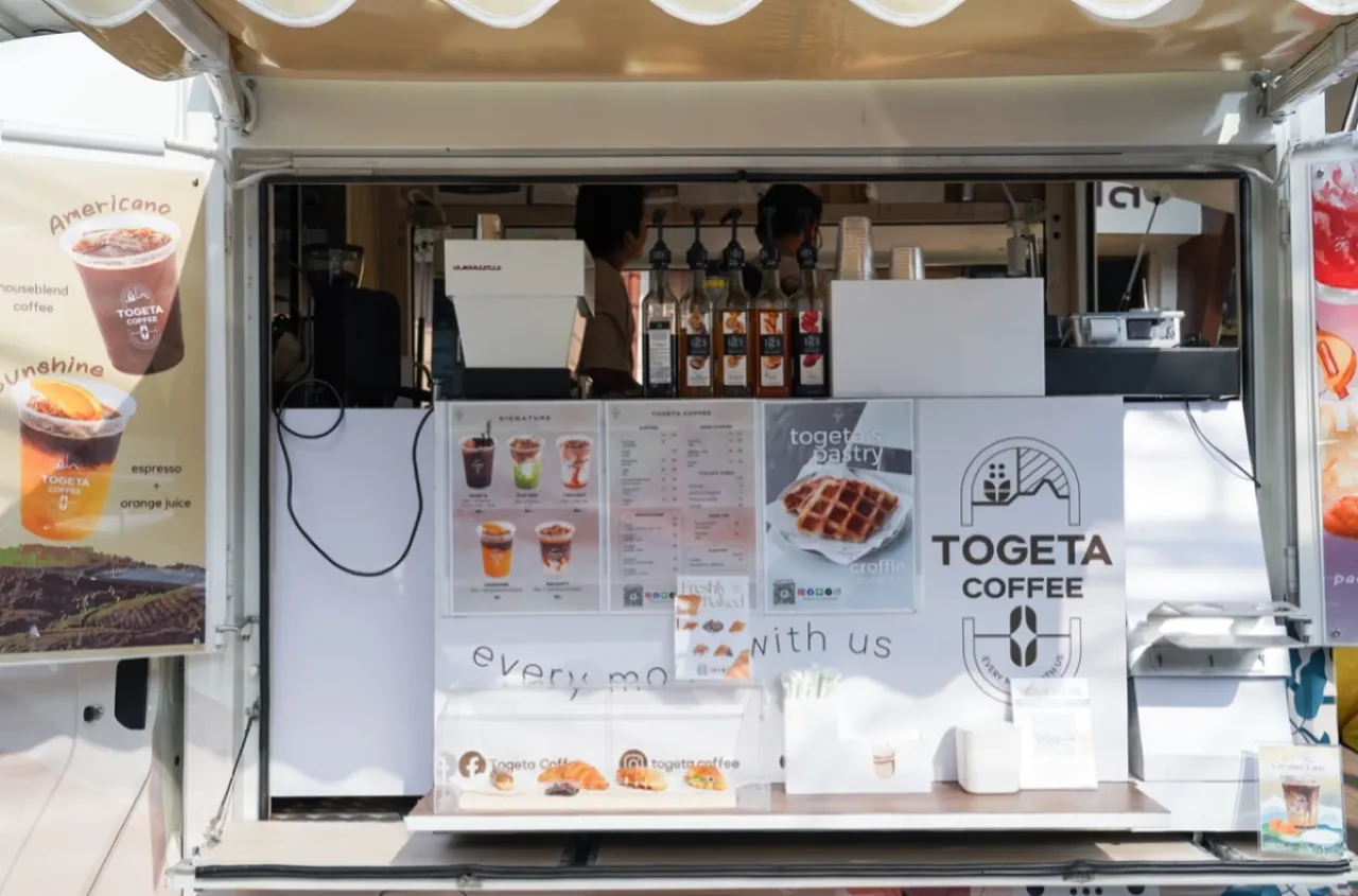 สำหรับ Togeta Pop-up café นำเสนอในรูปแบบของ Mobile Food Truck ที่พัฒนาขึ้นจากรถยนต์ โตโยต้า ไฮลักซ์ แชมป์ รถยนต์เพื่อการพาณิชย์ท้ายเรียบที่มีจุดเด่นในด้านการรองรับการดัดแปลงท้ายกระบะเพื่อการใช้งานที่หลากหลาย โดยนอกจากหลากหลายเมนู “ซิกเนเจอร์” ของกาแฟทูเกต้า แล้ว ยังมีเมนูพิเศษจากกลุ่มบาริสต้าของทูเกต้า ภายใต้แนวคิด “ของขวัญจากขุนเขา” รังสรรค์เป็นเมนูซิกเนเจอร์จัดจำหน่ายเฉพาะที่ Togeta Pop-up café อาทิ