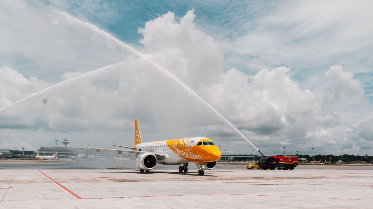 สกู๊ต สายการบินราคาประหยัดในเครือสิงคโปร์แอร์ไลน์ต้อนรับเครื่องบิน Embraer รุ่น E190-E2 ลำแรกแล้ว ณ สนามบินชางงี ในประเทศสิงคโปร์