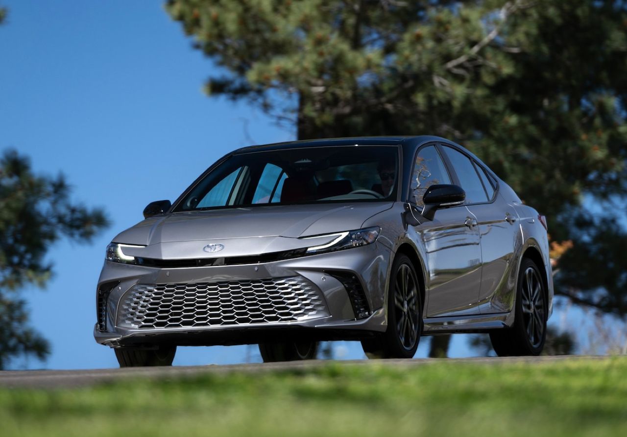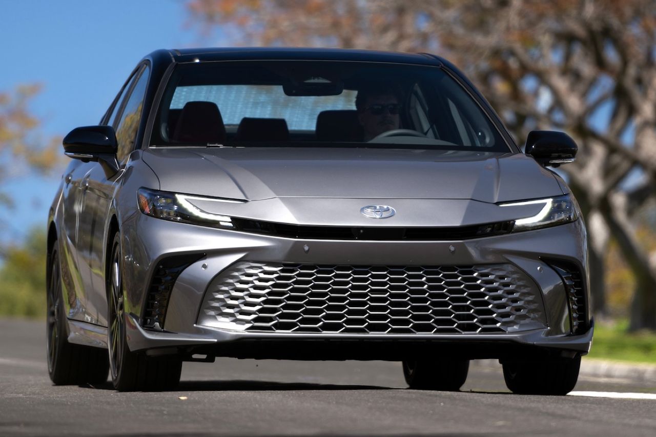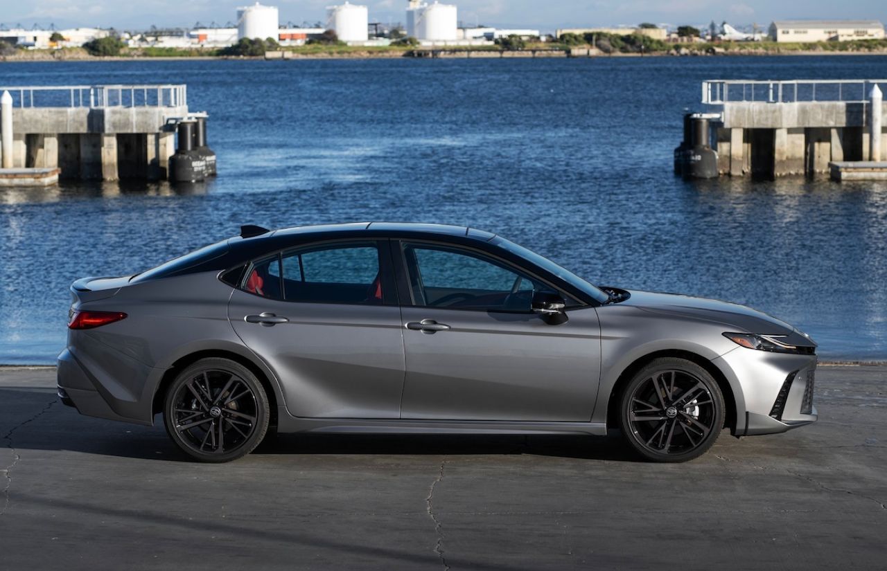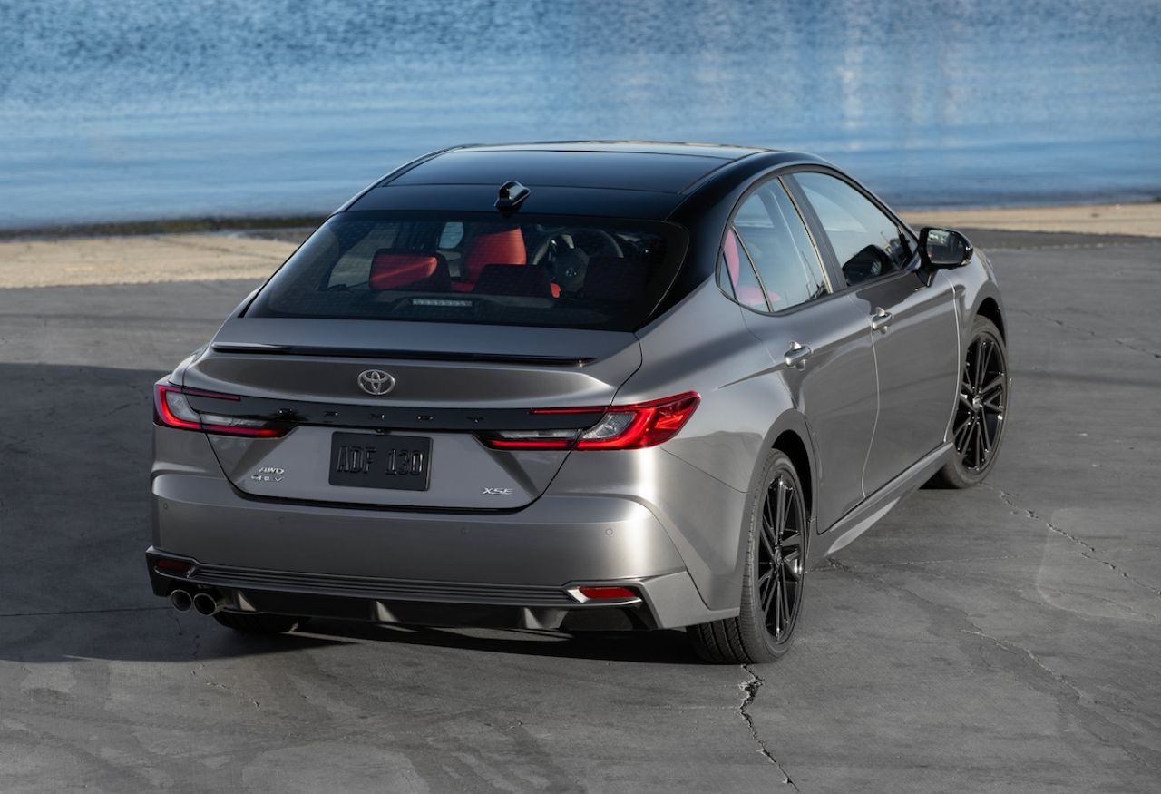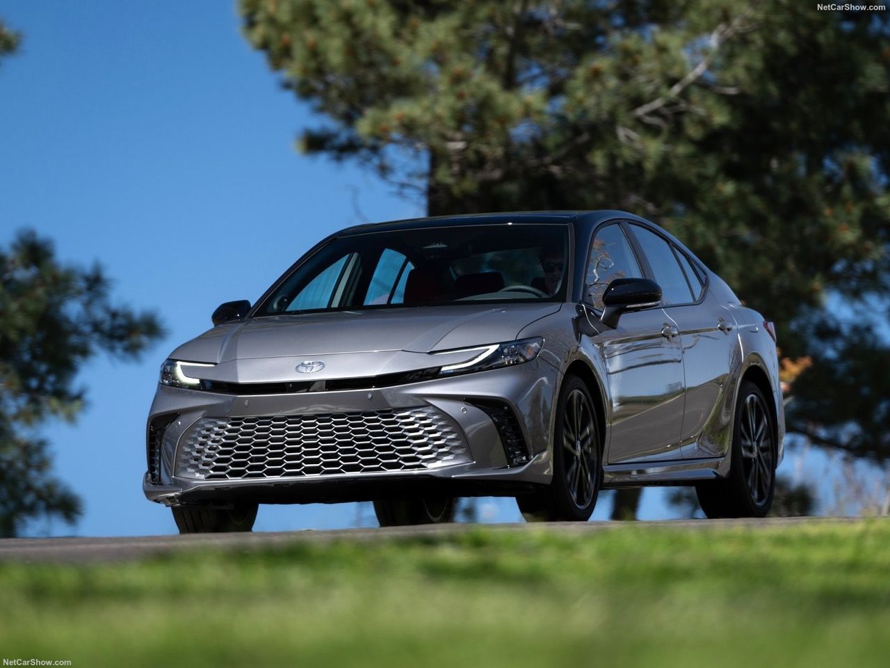รุ่นขับเคลื่อนล้อหน้าใช้เครื่องยนต์เบนซินแถวเรียงสี่สูบ ขนาด 2.5 ลิตร มอเตอร์ไฟฟ้าสองตัว มีกำลัง 225 แรงม้า ในขณะที่รุ่นขับเคลื่อนสี่ล้อจะเพิ่มมอเตอร์ตัวที่สามที่ขับเคลื่อนเพลาล้อหลัง เพิ่มกำลังรวมเป็น 232 ม้า เกียร์อัตโนมัติแบบแปรผันต่อเนื่อง e-CVT ระบบส่งกำลังเหล่านี้คล้ายกับที่ประจำการอยู่ใน Toyota Prius เพียงแต่มีขนาด 2.5 ลิตร แทนที่จะมีความจุแค่ 2.0 ลิตร ยังไม่ได้มีการเปิดเผยหรือประมาณการอัตราสิ้นเปลืองน้ำมันเชื้อเพลิงของ Camry ปี 2025 คาดว่าอยู่ในระดับที่ใกล้เคียงกับโฉมปัจจุบันที่เคลม 21 กิโลเมตรต่อลิตร