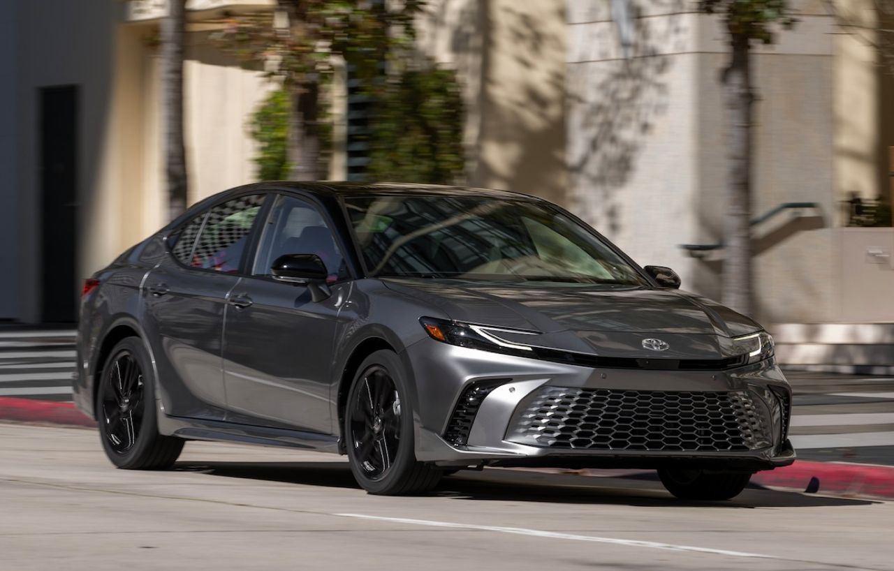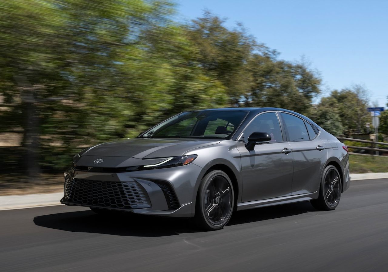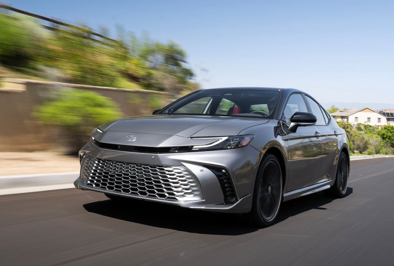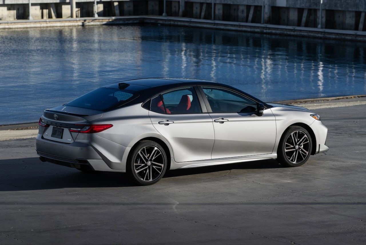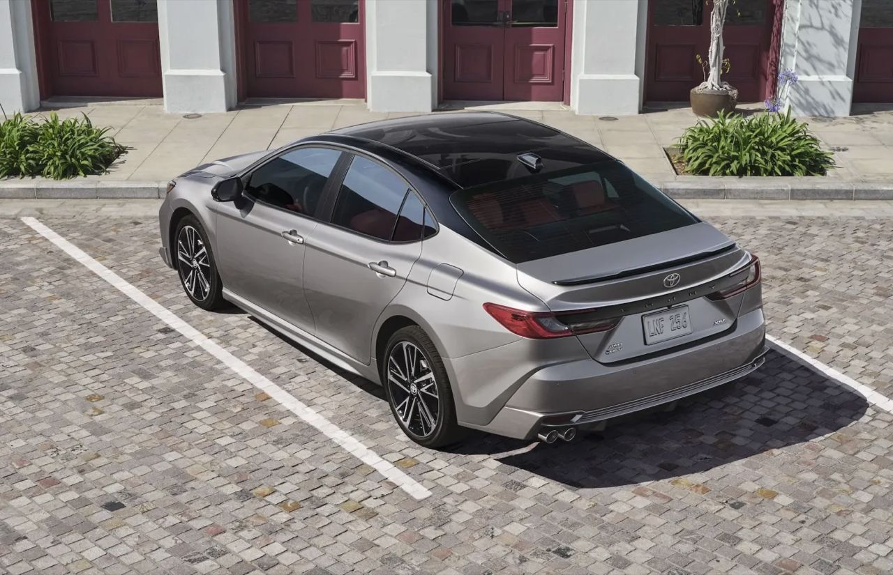 รุ่นขับเคลื่อนล้อหน้าใช้เครื่องยนต์เบนซินแถวเรียงสี่สูบ ขนาด 2.5 ลิตร มอเตอร์ไฟฟ้าสองตัว มีกำลัง 225 แรงม้า ในขณะที่รุ่นขับเคลื่อนสี่ล้อจะเพิ่มมอเตอร์ตัวที่สามที่ขับเคลื่อนเพลาล้อหลัง เพิ่มกำลังรวมเป็น 232 ม้า เกียร์อัตโนมัติแบบแปรผันต่อเนื่อง e-CVT ระบบส่งกำลังเหล่านี้คล้ายกับที่ประจำการอยู่ใน Toyota Prius เพียงแต่มีขนาด 2.5 ลิตร แทนที่จะมีความจุแค่ 2.0 ลิตร ยังไม่ได้มีการเปิดเผยหรือประมาณการอัตราสิ้นเปลืองน้ำมันเชื้อเพลิงของ Camry ปี 2025 คาดว่าอยู่ในระดับที่ใกล้เคียงกับโฉมปัจจุบันที่เคลม 21 กิโลเมตรต่อลิตร