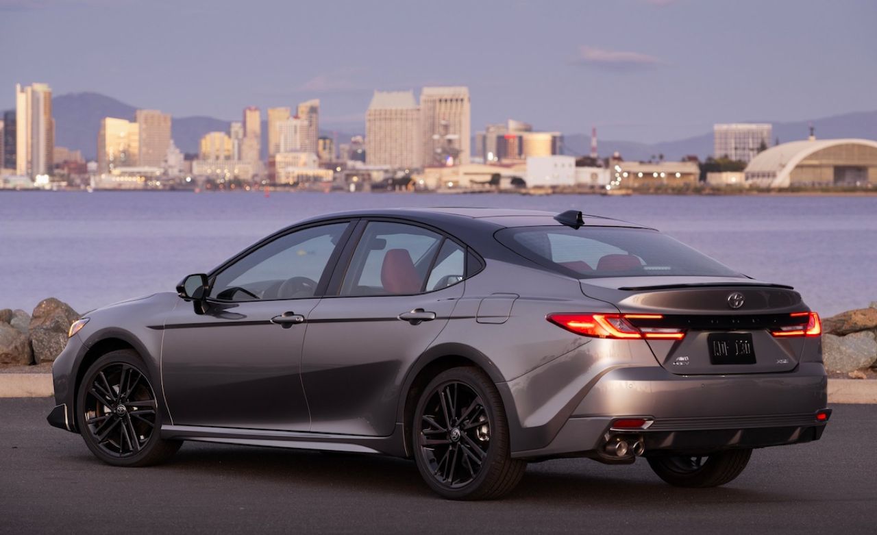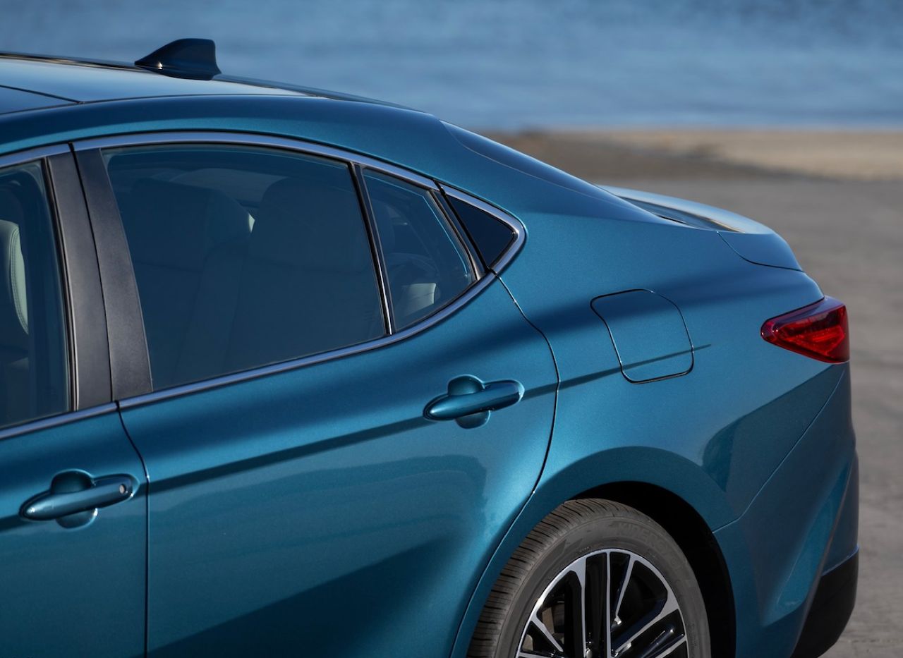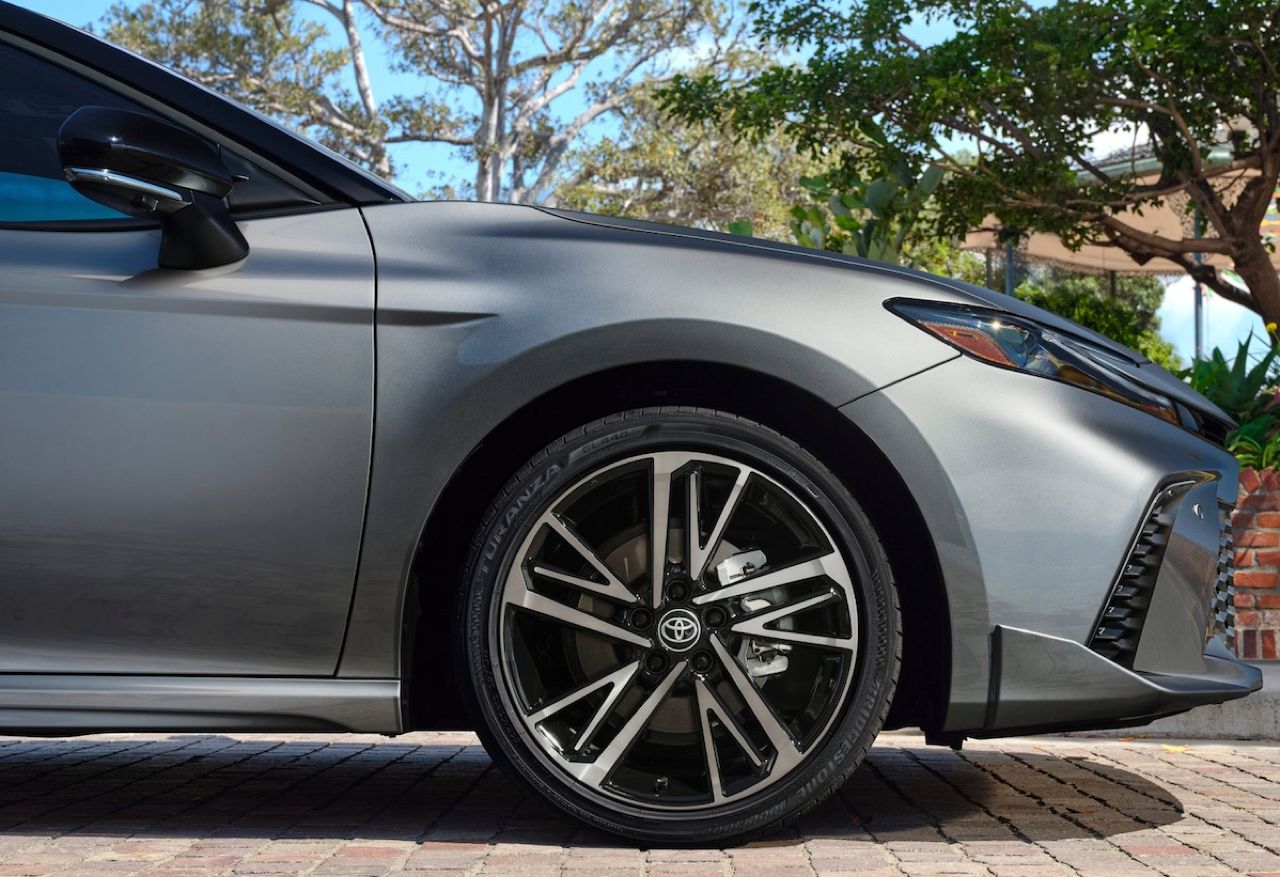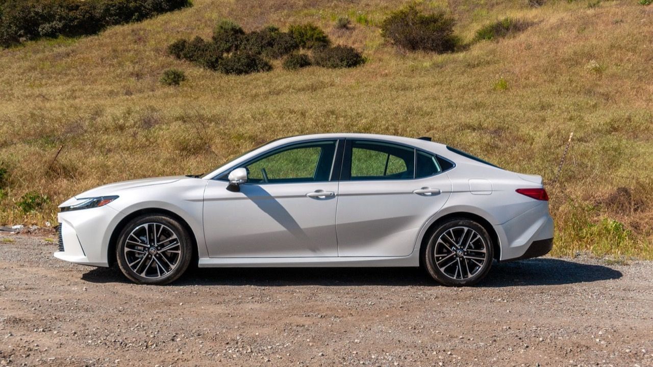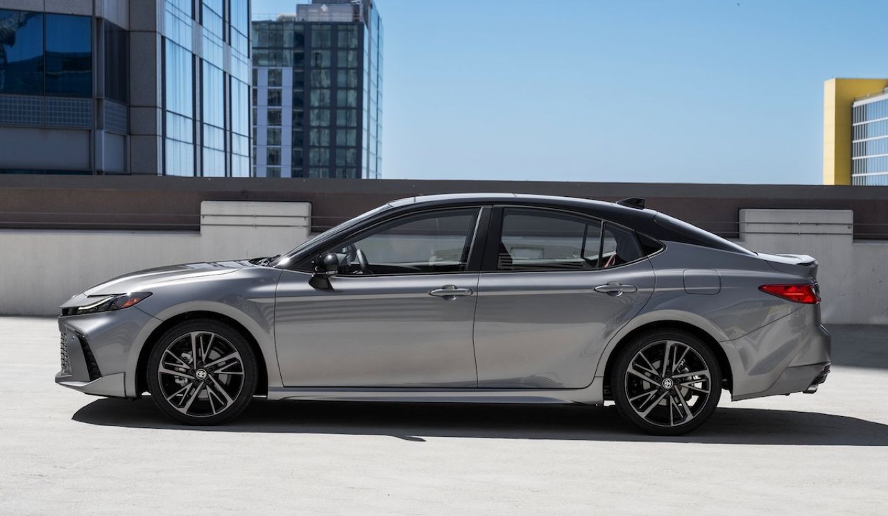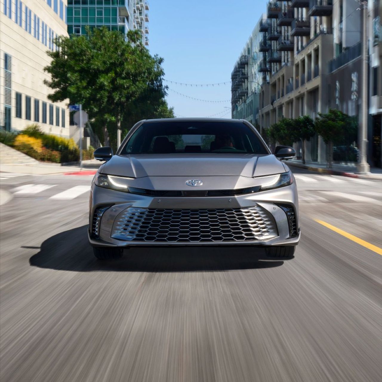 รุ่นขับเคลื่อนล้อหน้าใช้เครื่องยนต์เบนซินแถวเรียงสี่สูบ ขนาด 2.5 ลิตร มอเตอร์ไฟฟ้าสองตัว มีกำลัง 225 แรงม้า ในขณะที่รุ่นขับเคลื่อนสี่ล้อจะเพิ่มมอเตอร์ตัวที่สามที่ขับเคลื่อนเพลาล้อหลัง เพิ่มกำลังรวมเป็น 232 ม้า เกียร์อัตโนมัติแบบแปรผันต่อเนื่อง e-CVT ระบบส่งกำลังเหล่านี้คล้ายกับที่ประจำการอยู่ใน Toyota Prius เพียงแต่มีขนาด 2.5 ลิตร แทนที่จะมีความจุแค่ 2.0 ลิตร ยังไม่ได้มีการเปิดเผยหรือประมาณการอัตราสิ้นเปลืองน้ำมันเชื้อเพลิงของ Camry ปี 2025 คาดว่าอยู่ในระดับที่ใกล้เคียงกับโฉมปัจจุบันที่เคลม 21 กิโลเมตรต่อลิตร