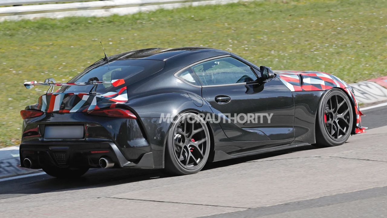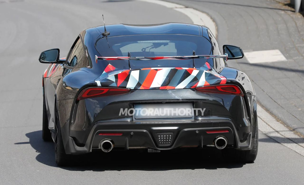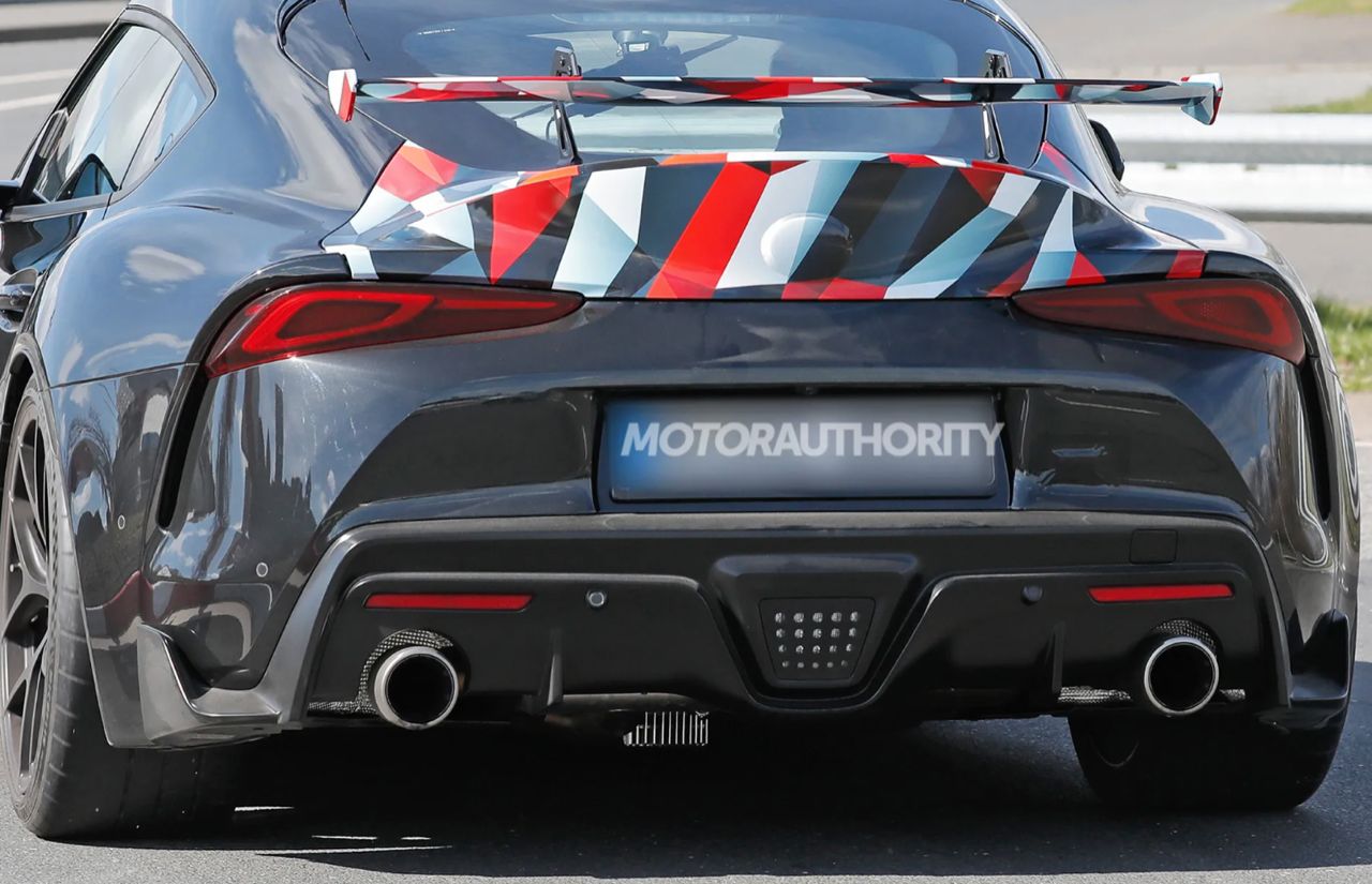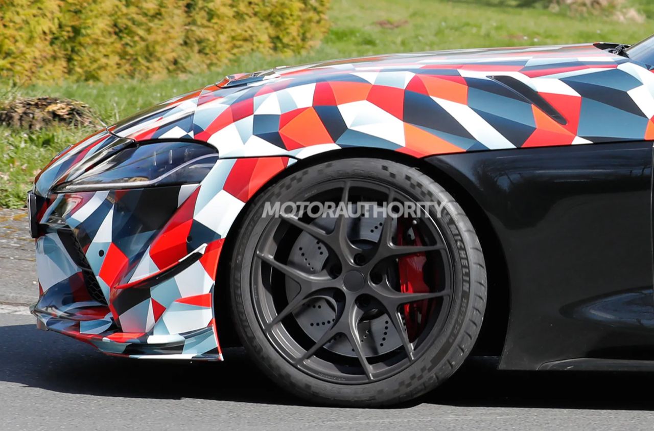 รถต้นแบบล่าสุดในภาพถ่ายสปายช็อตเผยให้เห็นถึงตัวถังและชิ้นส่วนแอร์โรไดนามิกของ Supra GRMN เช่น วิงหลังที่มีขนาดใหญ่กว่าเดิมราวกับรถแข่ง GT3 ด้านหน้าติดตั้งครีบรีดอากาศที่ชายล่างของกันชน ครีบรีดอากาศด้านข้างกันชนหน้า ฝากระโปรงหน้าใหม่ การปรับเปลี่ยนของ Supra GRMN ส่วนใหญ่มีจุดมุ่งหมายเพื่อเพิ่มแรงกดตัวถังหรือดาวน์ฟอร์ซ เนื่องจากเปลี่ยนเครื่องยนต์ B58 มาเป็น S58 ที่มีกำลังมากกว่า