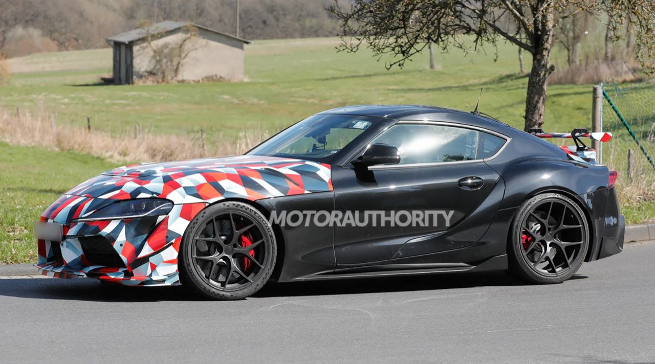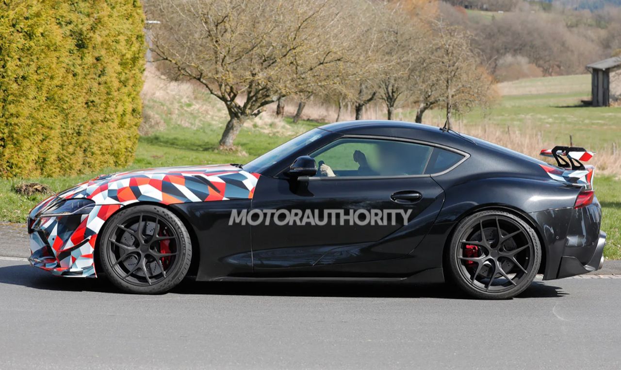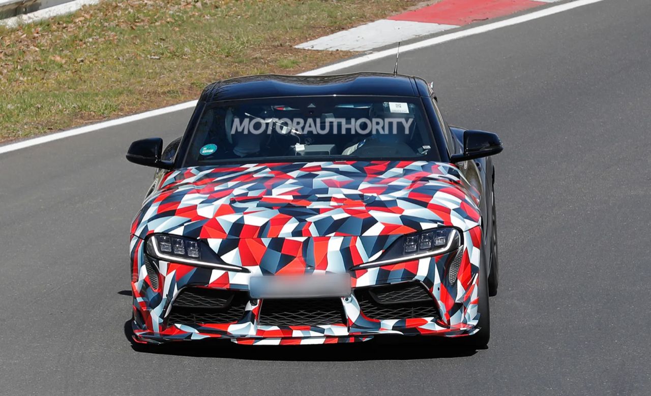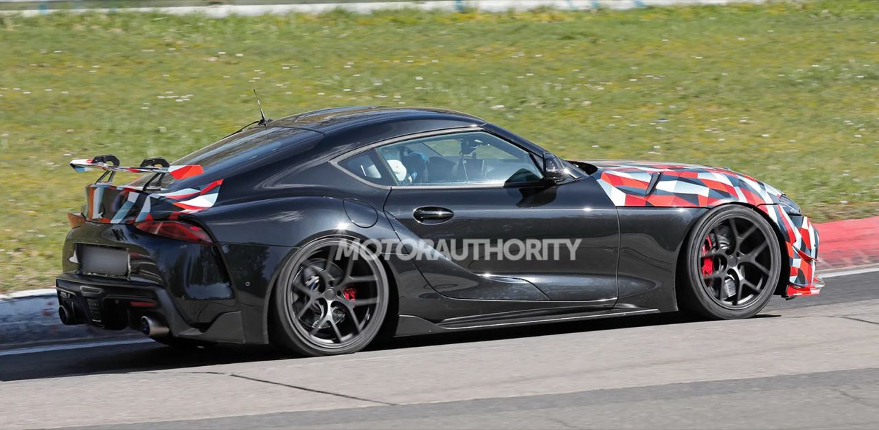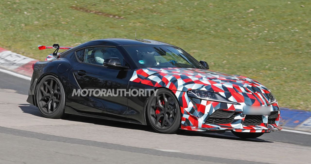 Toyota New Supra GRMN ติดสติกเกอร์ลายพราง ถูกถ่ายภาพขณะกำลังวิ่งทดสอบในสนาม Nürburgring และบนถนนรอบๆ สนามแข่งในนูร์เบิร์ก เยอรมนี คาดว่า นี่คือ New Supra GRMN ที่เน้นประสิทธิภาพทั้งในสนามแข่งและบนไฮเวย์ ด้วยหัวใจใหม่ที่ยกมาจาก BMW M4 G82