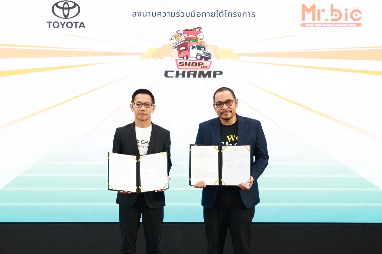 Toyota Motor Thailand ร่วมกับ Mr.Bic (Mobile Retail Business Incubation Center) หรือ ศูนย์บริการให้คำปรึกษาและบ่มเพาะธุรกิจค้าปลีกเคลื่อนที่ได้ ภายใต้การบริหารงานร่วมกันระหว่าง บริษัท วี เชฟ (ประเทศไทย) และสถาบันเทคโนโลยีพระจอมเกล้าเจ้าคุณทหารลาดกระบัง (KMITL) ลงนามบันทึกข้อตกลงความร่วมมือ (MOU) โครงการ Shop on Champ เปลี่ยนธุรกิจมาติดล้อ มีเป้าหมายหลักในการสนับสนุนผู้ประกอบธุรกิจหลากหลายประเภท ทั้งสินค้าอุปโภคบริโภค อาหารและเครื่องดื่ม รวมถึงธุรกิจบริการอื่นๆ ผ่านการใช้งานรถกระบะ Toyota Hilux Champ ให้เป็นร้านค้าปลีกเคลื่อนที่ได้ เพื่อให้ผู้ประกอบการมีช่องทางการขายที่หลากหลายมากขึ้น และโอกาสในการดำเนินธุรกิจใหม่ ณ Toyota ALIVE เมื่อวันที่ 6 มิถุนายน 2567
