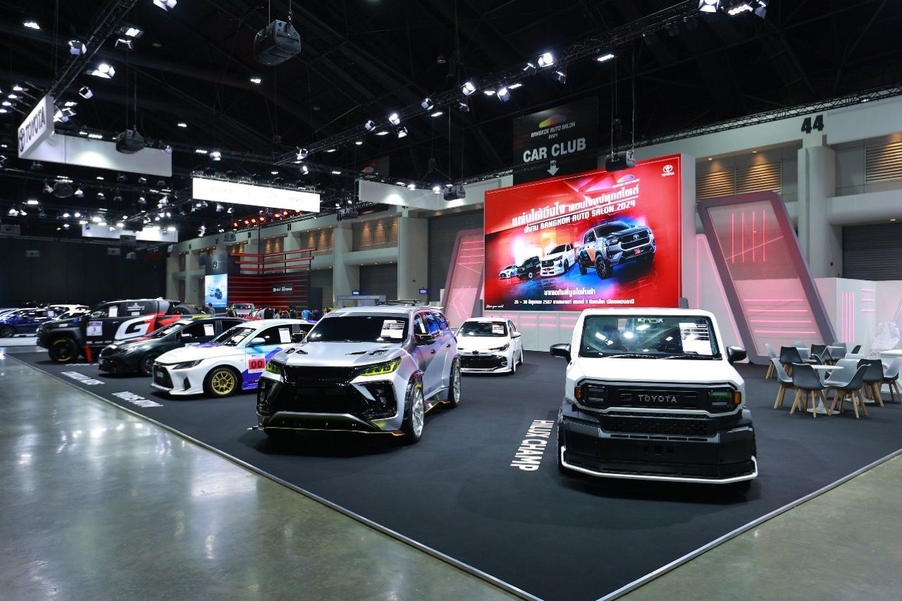 Toyota Motor Thailand เข้าร่วมแสดงรถยนต์หลากหลายรุ่น พร้อมตกแต่งหลายสไตล์ ภายใต้แนวคิด “แต่งได้ถึงใจ ตอบโจทย์ทุกสไตล์ COOL AS MUCH AS YOUR DESIRE” โดยปีนี้ Toyota นำเสนอการแต่งรถที่ถูกใจนักเลงรถแต่ง หลากหลายรูปแบบทั้งรถเก๋ง รถกระบะ และรถ MPV มาโชว์ภายในงานแบบจุใจถึง 11 คัน เพื่อสร้างแรงบันดาลใจให้กับผู้ชื่นชอบการแต่งรถ