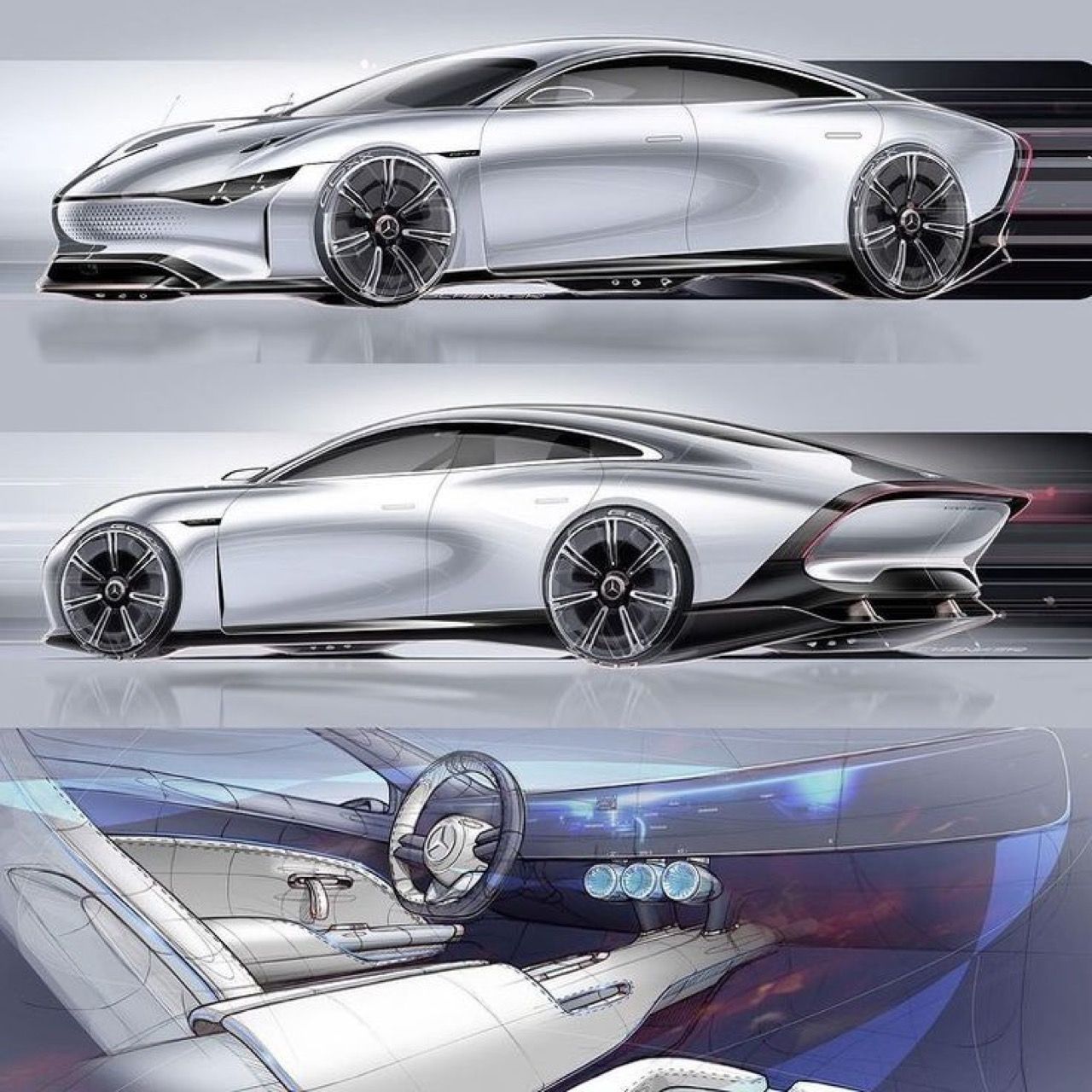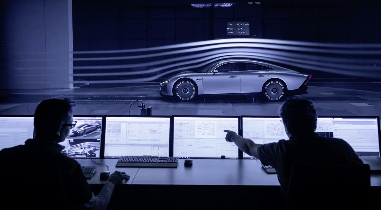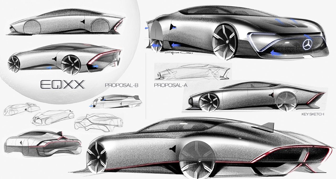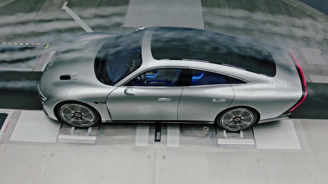 รถที่มีค่าสัมประสิทธิ์แรงเสียดทานอากาศ 0.17 เช่น W125 Rekordwagen ซึ่งถูกสร้างขึ้นในช่วงก่อนสงครามโลกครั้งที่สอง (ปี 1937) หรือแม้แต่รถต้นแบบที่สวยงามอย่าง C 111-IV รถต้นแบบเหล่านี้จะมีสิ่งหนึ่งที่เหมือนกันก็คือ การออกแบบแผ่นปิดคลุมล้อหลังเพื่อสร้างอากาศพลศาสตร์ที่มีประสิทธิภาพมากขึ้น นั่นคือสาเหตุที่นักออกแบบไม่พอใจกับการนำแผ่นอะไรบางอย่างไปแปะไว้ที่ซุ้มล้อหลังเพื่อลดแรงต้านทานอากาศ สิ่งสำคัญอีกประการหนึ่งคือความกว้างของแทร็ก นักออกแบบชอบที่จะสร้างรูปทรงที่สวยงาม ซึ่งหมายความว่า สัดส่วนท้ายรถควรกว้างกว่าด้านหน้าเล็กน้อย แต่ระบบอากาศพลศาสตร์ที่ดีนั้นจะทำให้รถมีส่วนท้ายที่แคบลง ด้านหลังที่แคบกว่าสองนิ้วของ Vision EQXX: ถือเป็นการตัดสินใจที่ถูกต้อง แม้จะทำให้รถดูแปลกตากับส่วนท้ายที่หุบลง แต่มีประสิทธิภาพด้านอากาศพลศาสตร์ที่เหนือชั้น ทำให้รถต้นแบบคันนี้กลายเป็นรถยนต์พลังงานไฟฟ้าคันแรกของโลกที่วิ่งได้ไกลกว่า 1,000 กิโลเมตร.