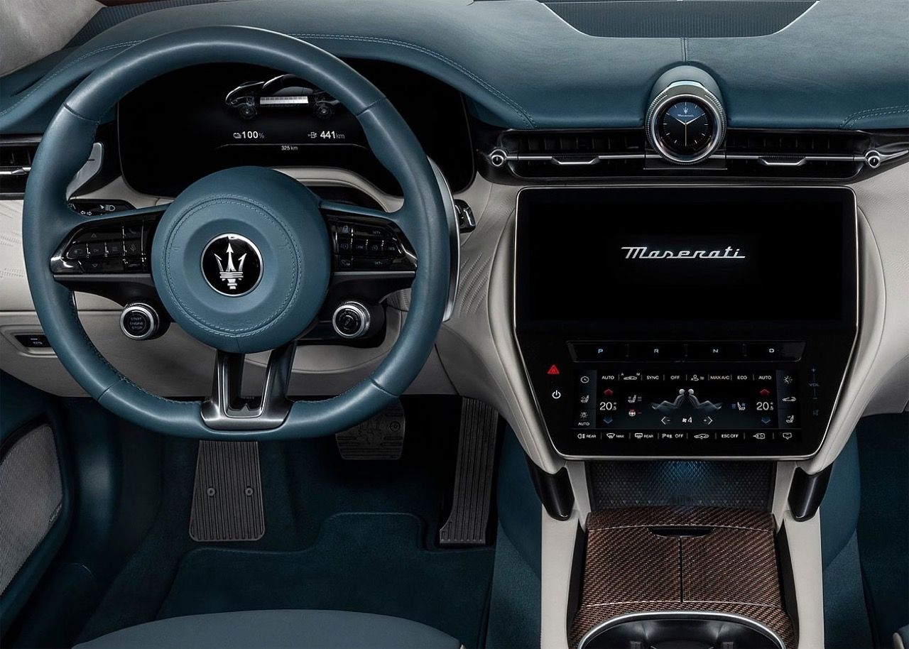 รายละเอียดที่โรแมนติกที่สุดคือการตกแต่งภายใน ซึ่งสะท้อนเอกลักษณ์ของ Tignanello และเฉลิมฉลองประวัติอันยาวนานของผู้ผลิตไวน์ได้ชัดเจน รวมทั้งนำธรรมเนียมประเพณี นวัตกรรม และความประณีต มาผสานรวมกันอย่างลงตัว เบาะนั่งทำจากหนังตกแต่งด้วยวัสดุหลายอย่างในโทนสีเงินและสีแดงเบอร์กันดีที่ถักทอเข้าด้วยกันด้วยวัสดุของบริษัท Vegea ซึ่งเป็นเส้นใยที่มีความยืดหยุ่นซึ่งพัฒนามาจากวัสดุในไร่องุ่น ชวนให้นึกถึงต้นองุ่นที่เรียงรายเป็นแนวบนเนินเขา Tignanello ที่มีหินอัลบาเรส (Alberese) อยู่ตรงกลาง วัสดุนี้ทั้งดูเหมือนหนัง และให้ความรู้สึกเช่นเดียวกัน ซึ่งถูกนำมาใช้เป็นครั้งแรกในยนตรกรรมของ Maserati วัสดุอื่นๆ ล้วนทำจากวัสดุธรรมชาติทั้งสิ้น ไม่ว่าจะเป็นไม้สีเข้มสลักด้วยเลเซอร์ เพื่อสื่อถึงเทคนิคการใช้ความร้อนในการทำถังไม้โอ๊กสำหรับบ่มไวน์ การตกแต่งที่ประตูมีรายละเอียดสะท้อนถึงการผลิตไวน์ Tignanello พนักพิงศีรษะปักลายหรูผสานทั้งตราตรีศูลของ Maserati และดวงอาทิตย์ซึ่งเป็นสัญลักษณ์ที่โดดเด่น ซึ่งประทับอยู่บนฉลากของไวน์ Tignanello มานาน นอกจากนี้ยังได้สลักเลข 1971 และ 2021 ด้วยเลเซอร์ลงบนคอนโซลกลาง ย้อนเวลาไปถึง 50 ปี ที่ไวน์ Tignanello ออกสู่ตลาด