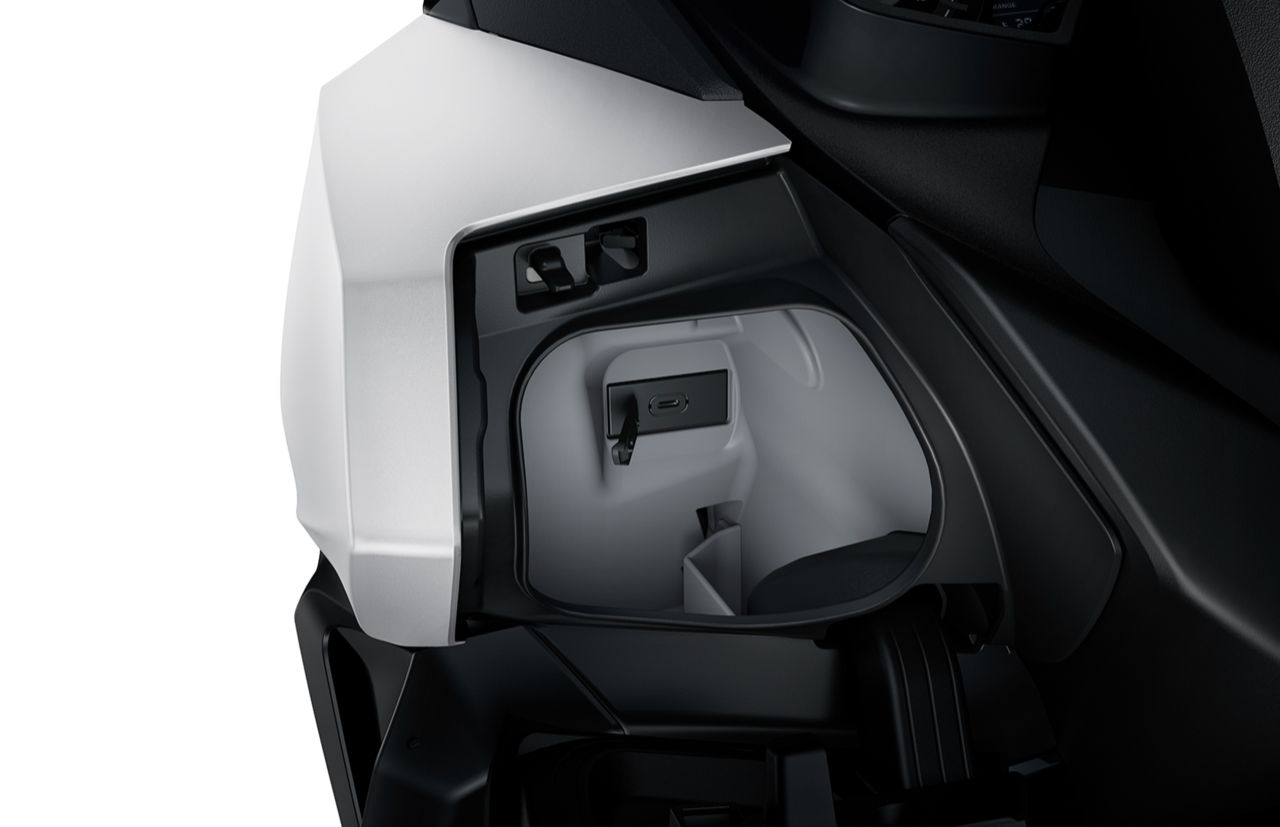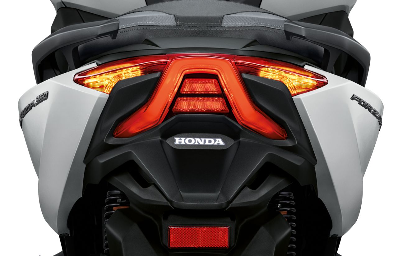 New Honda FORZA350 ไฟท้ายดีไซน์สปอร์ต LED Taillight ไฟฉุกเฉินอัตโนมัติ กระจกบังลมหน้าระบบไฟฟ้าที่ปรับความสูงได้ 180 มิลลิเมตร พร้อมกับ LARGE U-BOX กล่องเก็บสัมภาระขนาดใหญ่ที่ใส่หมวกนิรภัยได้สองใบพร้อมไฟส่องสว่างแบบ LED ที่ชาร์จไฟสำรองอเนกประสงค์แบบ USB TYPE C รวมถึง Honda Smart Key รีโมตสตาร์ตเครื่องยนต์โดยไม่ต้องใช้กุญแจ สั่งการได้ครบ 3 ฟังก์ชัน ทั้งระบุตำแหน่งรถสัญญาณกันขโมย และการเปิด-ปิดสัญญาณรีโมตพร้อมชุดควบคุมการทำงานอัจฉริยะ