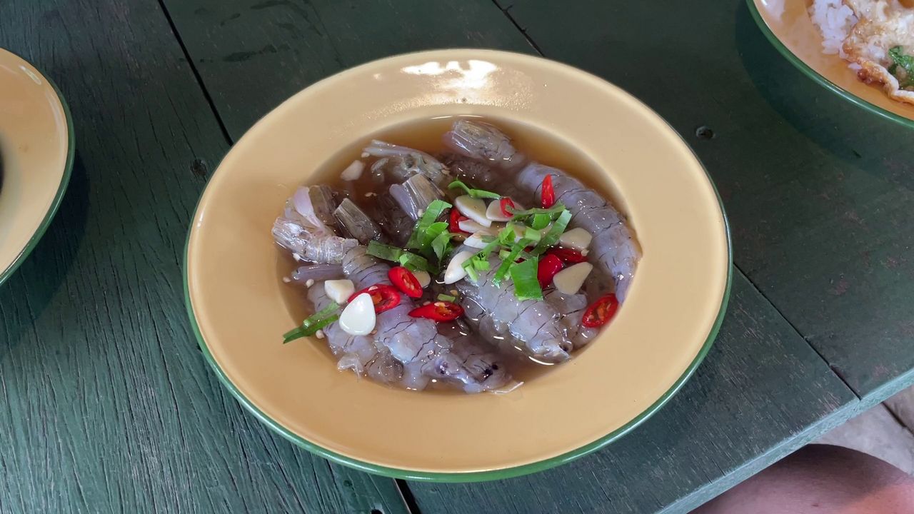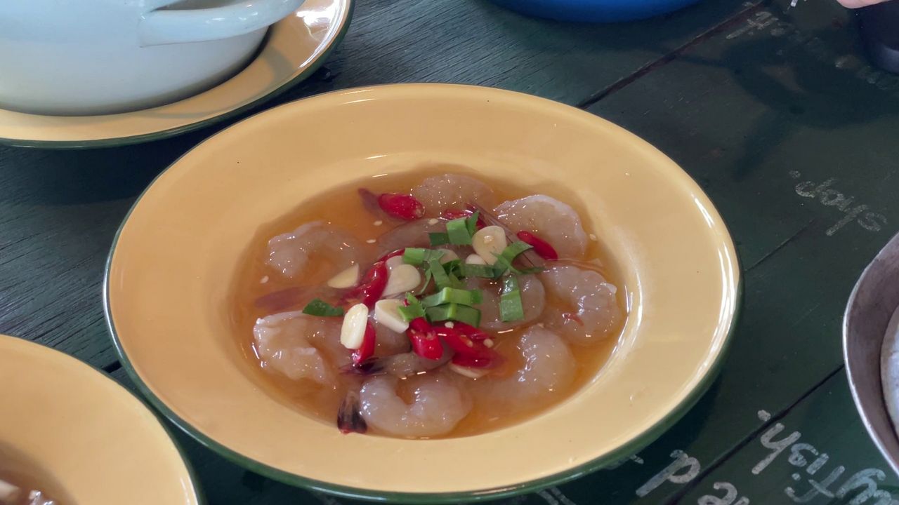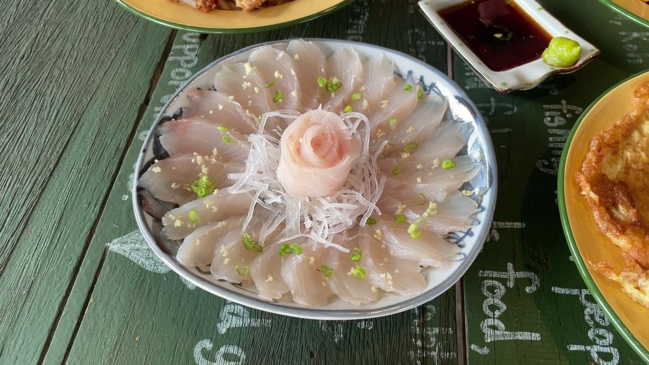 ร้านนี้ถ้าให้ผมแนะนำเมนู ต้องกั้งครับ! กั้งสดๆ ที่เพิ่งตายไม่นานก่อนคุณสั่งมันมากิน ไม่ว่าจะเป็นกั้งดองน้ำปลา ต้มยำ ต้มส้ม กั้งพริกเกลือ กั้งผัดฉ่า เนื้อหอม เด้งคาปาก เอาลิ้นลองดันๆ เนื้อกั้งจะยิ่งฟิน เมื่อคุณสั่งอาหารไป แม่ครัวกับลูกชายจะช่วยขมีขมันทำอยู่หลังครัว เดินไปดู และสูดกลิ่นกระทะ คุณก็ไม่อยากไปไหนแล้ว และจะแนะนำอีกอย่างคือ ซาชิมิปลาไทย ซึ่งพ่อครัวนำเนื้อปลาสดๆ จากทะเลมาแล่บางๆ จัดเรียงลงบนจานอย่างสวยงาม ถ้าคุณคิดว่าซาชิมิดีต้องมีแต่ปลาญี่ปุ่น ลองปลาไทยที่นี่ครับ ชุบโชยุบางๆ คีบวาซาบิเล็กๆ ไปแตะบนเนื้อปลา แล้วคีบเข้าปาก ความอร่อยจากเนื้อปลาสดตามธรรมชาติ โชยุ และวาซาบิ จะสมัครสมานกันอูมามิในปากขณะที่น้ำตาคุณไหลพราก และหัวใจคุณบอกว่าเอาอีกค่ะที่รัก