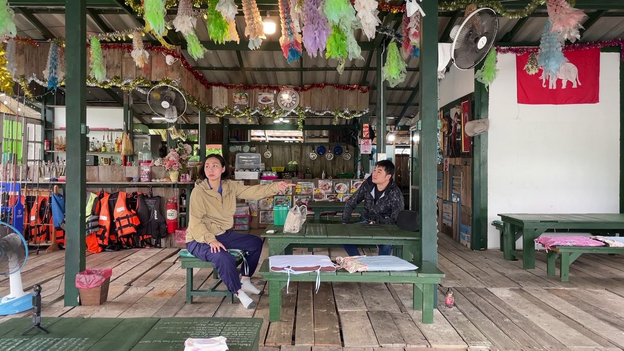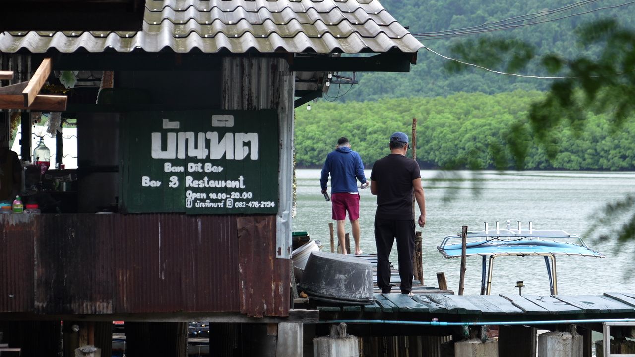 ไอเทมลับแห่งฝั่งตะวันออกของเกาะช้าง ต้องร้านนี้ครับ เขาอยู่บนเส้นทางเดียวกับที่ไปสลักคอก ตอนนั่งทานข้าว จะเห็นเรือมาดจากสลักคอกพายผ่านมาอย่างเชื่องช้า มีวิวทะเลโดยรอบกว้างๆ บวกกับบรรยากาศบ้านชาวประมง มีท่าน้ำให้หย่อนเบ็ดได้สำหรับนักตกปลา บังเต้ยแกก็เป็นนักตกปลาตัวยงเหมือนกัน เลยไปนั่งหย่อนเบ็ดอยู่นาน ปลากลับไม่ยอมติดเบ็ด จนพี่เพชรแกเล่าว่าบังเต้ย แกมีฉายาที่จังหวัดตราดว่า บังเต้ยเบ็ดสะอาด เพราะไม่เคยได้ปลากับเขาเลย ตื่นตีห้ามาเตรียมอุปกรณ์สองสามชั่วโมง แต่ไม่เคยได้ปลากลับบ้าน