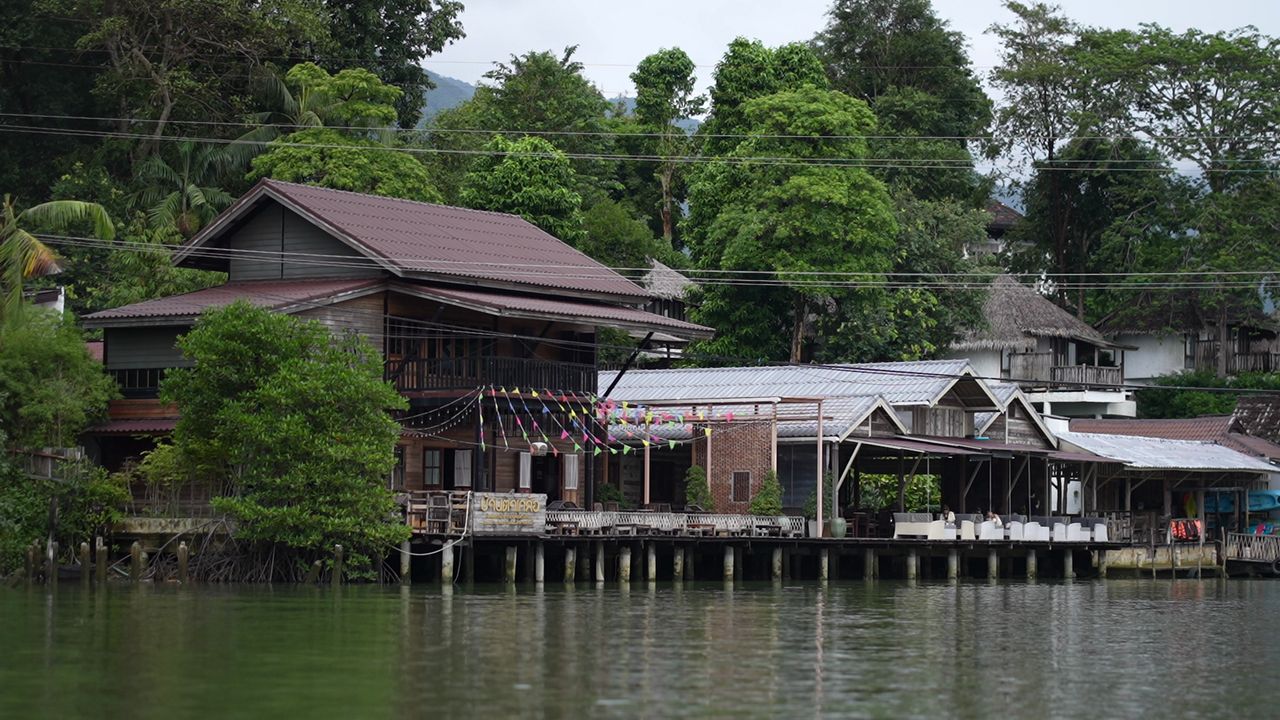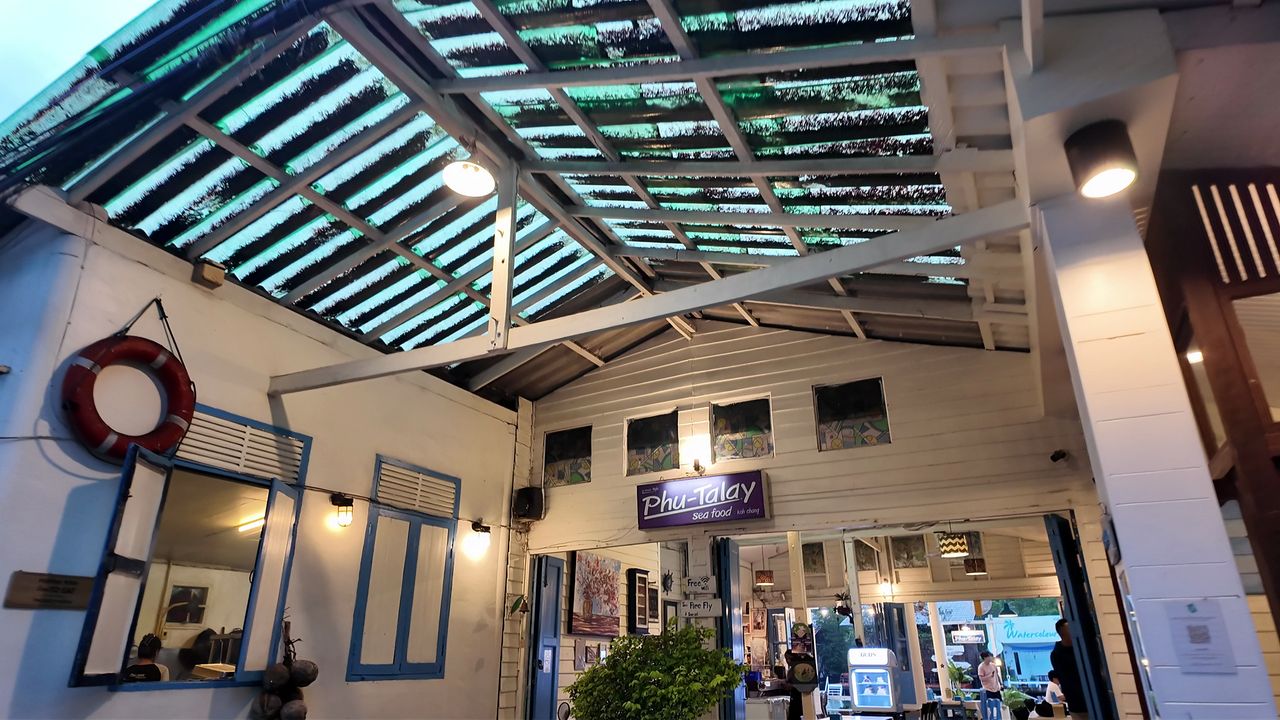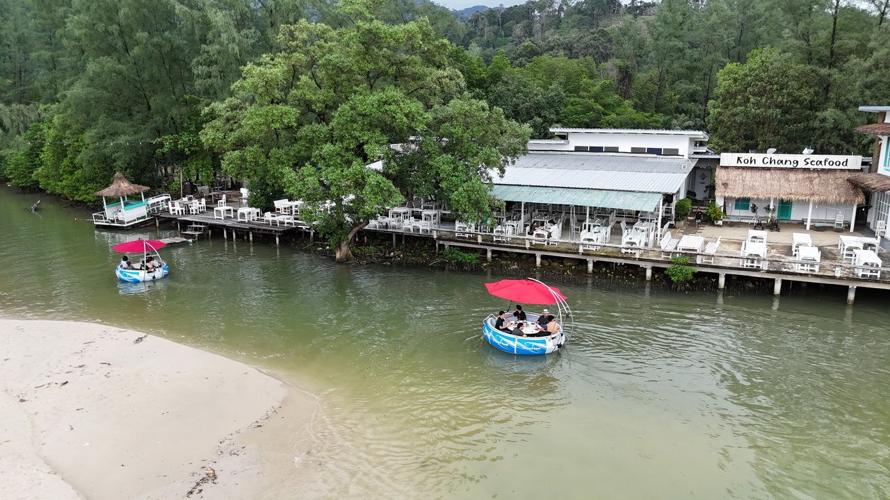 ร้านนี้อยู่หมู่บ้านริมคลอง ใกล้ๆ กันกับร้านไอยราที่เราไปนั่งเรือโดนัทเล่น บรรยากาศของร้านนี้จะดีที่สุดคือยามเย็น ดังนั้นคุณไปนั่งเรือเล่นก่อน แล้วกลับขึ้นฝั่งให้ทันมื้อเย็น มาทานที่ร้านนี้ได้ โดยเฉพาะในช่วงเดือนสิงหาคมนี้ ร้านภูทะเลเขาจะมีโปรโมชันกินกุ้งที่จัดร่วมกับทาง ททท. สำนักงานตราด เบื้องต้นคือกุ้ง 1 กิโลกรัม ททท. ช่วยจ่ายให้ 200 บาท คุณสามารถสั่งกุ้งแชบ๊วยนี้นำไปเผาก็ได้ หรืออบเกลือก็ได้ แต่เงื่อนไขอื่นๆ ลึกๆ หรือถ้าสั่งกุ้งแชบ๊วยปรุงแบบอื่น จ่ายเพิ่มยังไง คุณสอบถามที่ร้านได้เลย ยังมีร้านอีก 4 แห่งที่มีโปรฯ กุ้งคล้ายๆ กัน คือร้าน สงาดคาเฟ่ ร้าน บีโคซี่เรส บลูลากูน ร้านเจอพอดี เรสซิเด้น และร้านหัวปลาหม้อไฟ