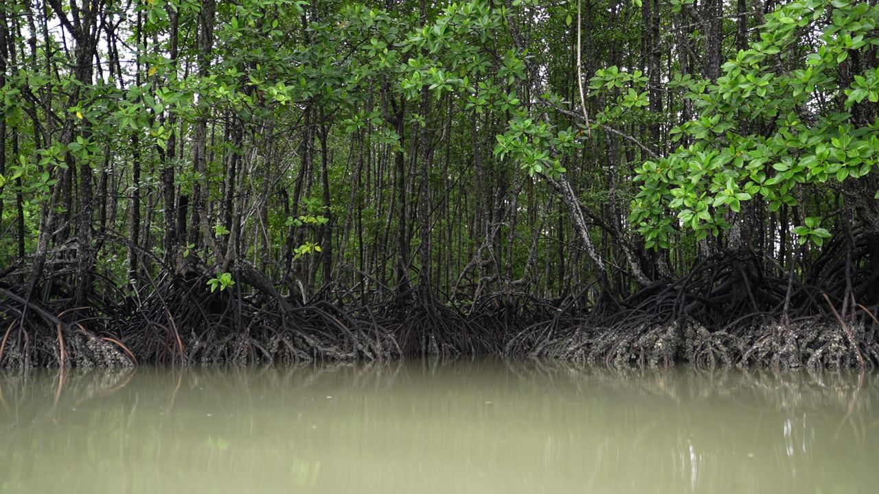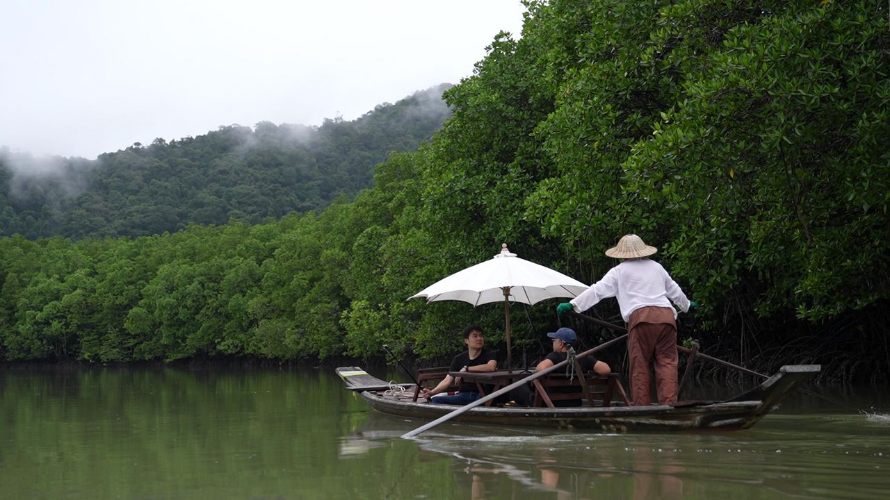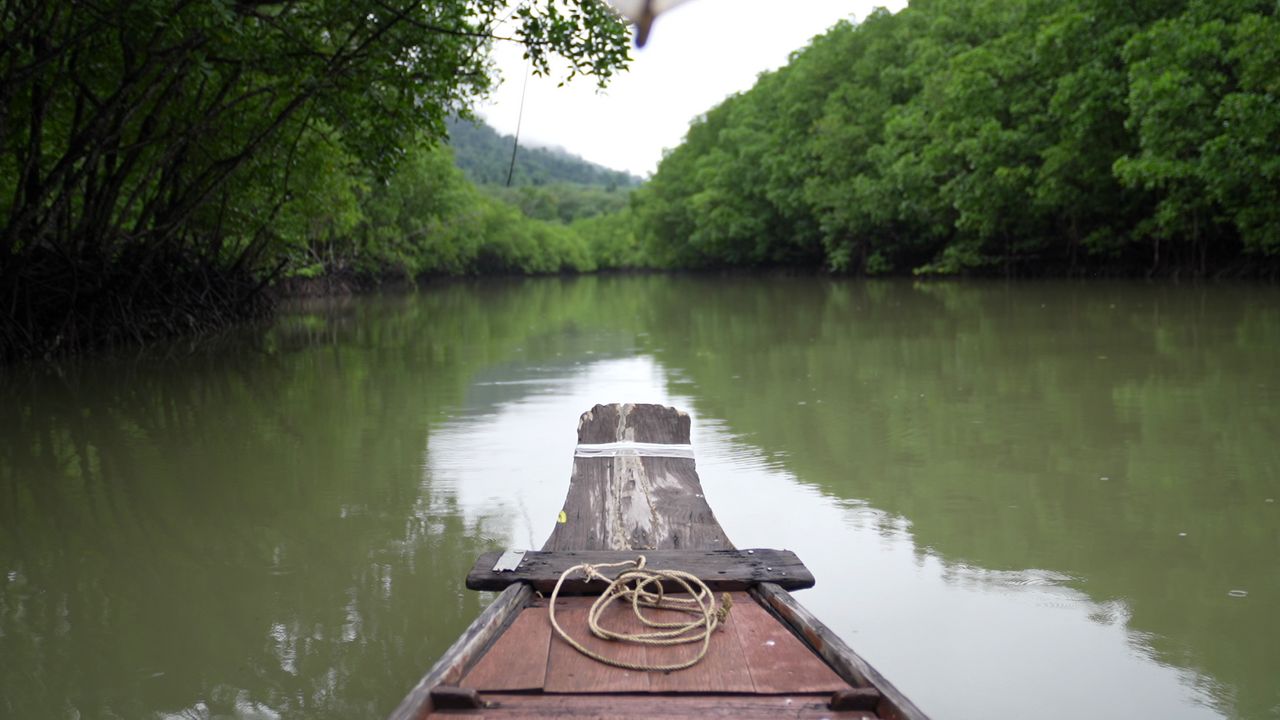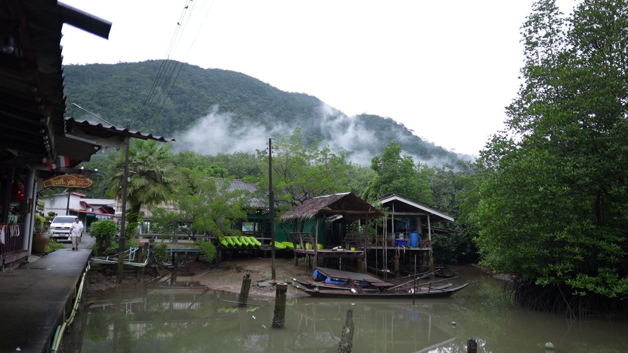 จุดขึ้นเรือมาดจะอยู่ที่หมู่บ้านสลักคอก ซึ่งเป็นหมู่บ้านชาวประมงเก่า ต้องขับรถมาทางฝั่งตะวันออกของเกาะ ค่อนข้างไกลจากที่พักของเราพอสมควร อันเรือมาดนี้เป็นเรือแบบท้องถิ่น ที่เขาจะให้พี่ๆ ชาวบ้านที่ชำนาญการแจวเรือแถบนั้นมาบริการพวกเรา และเขาจะเล่าความเป็นมาของถิ่นที่อยู่แถบนั้นให้ฟังระหว่างที่พาเราแจวเลียบป่าชายเลนไปออกปากน้ำ