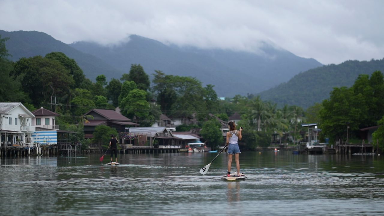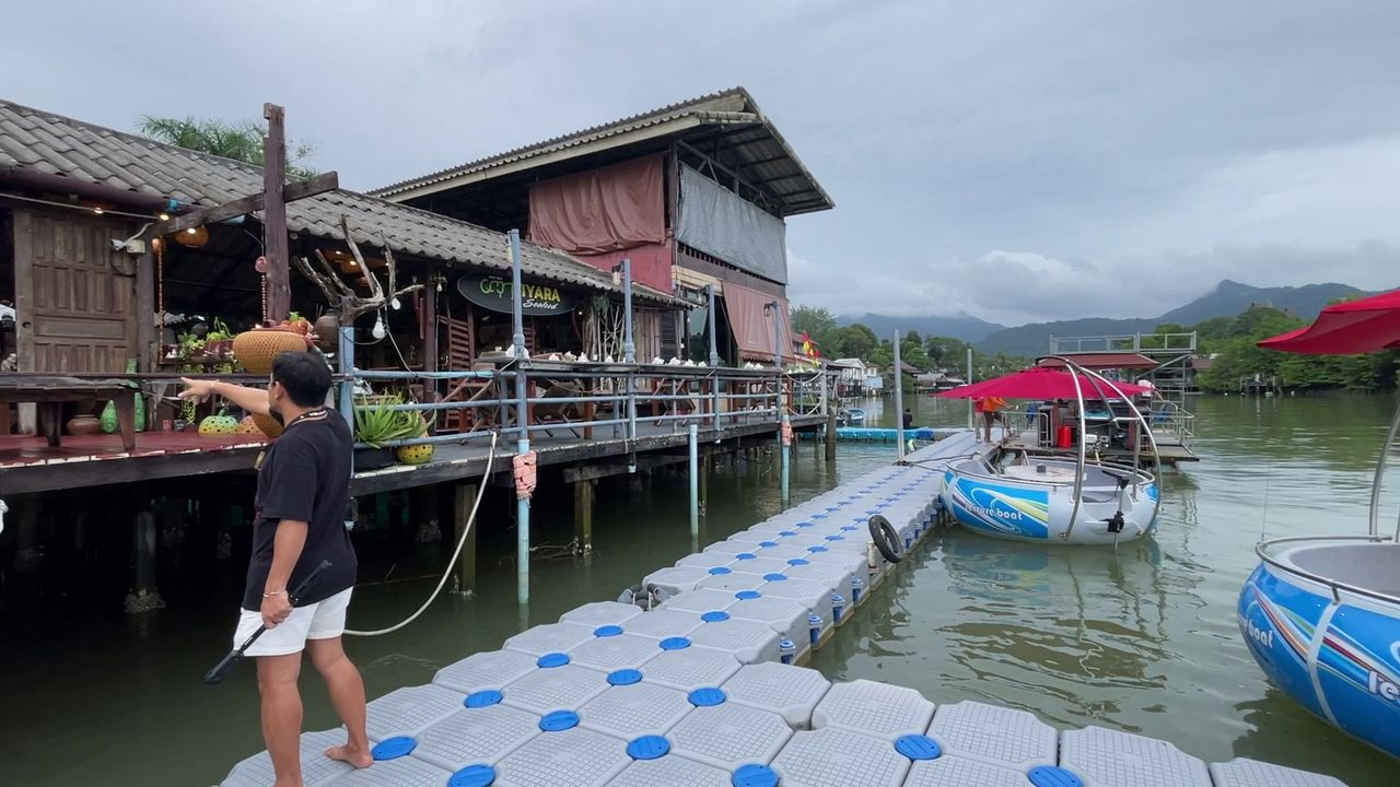 ได้ร้านกาแฟไปแล้ว คุณเองก็คงอยากจะหากิจกรรมทำบ้าง ถ้าคุณอยากลองสัมผัสบรรยากาศผสมๆ ระหว่างตลาดน้ำกับสวิตเซอร์แลนด์ ซึ่งมันเข้ากันได้อย่างแปลกประหลาด ก็ลองมาล่องเรือโดนัท (Leisure Boat) ดูครับ จุดขึ้นเรือจะอยู่แถวๆ ร้านไอยราซีฟู้ด กับร้าน Sup Station จอดรถแล้วเดินเข้ามาถามคนแถวนั้นได้ เรือโดนัทนี้ ผมต้องบอกก่อนว่าการจะขึ้นเรือได้ ต้องเดินไปบนโป๊ะลอยน้ำก่อนขึ้นเรือ โป๊ะที่ลอยขึ้นๆ ลงๆ อาจไม่เหมาะสำหรับคนขาไม่แข็งแรงหรือพ่อเฒ่าแม่แก่ แต่ผมตัวขนาดนี้ ขาแรงดี ผ่านฉลุยครับ (จริงๆ เกือบตกน้ำเหมือนกัน)
