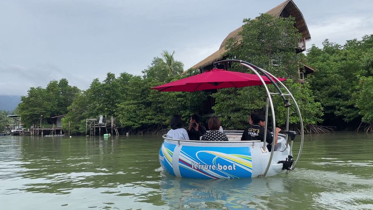 การขับเรือ ใช้วิธีคล้ายเรือหางยาว คุณจะลองขับเองก็ได้ แต่จากบทเรียนที่เราเจอมา ให้บังนิธิขับเรือได้ราว 10 นาที พวกเราทั้งกลุ่มลงความเห็นกันว่าบังควรจะขับแต่รถยนต์ต่อไปน่ะดีแล้ว เพราะแกขับเรือวนเป็นลูกอ๊อด วนมาแล้ววนมาอีกอยู่ที่เดิม ในขณะที่อีกลำที่น้องฝนนั่ง (C-Class 6 ที่นั่ง) แล่นเข้าไปทางป่าชายเลนนานแล้ว นอกจากนี้ ถ้าใครไม่กลัวตัวเปียก ตรง Sup Station ข้างๆ ร้านไอยรานั้น จะมีให้เช่าเรือคายัคพายเล่นได้ครับ