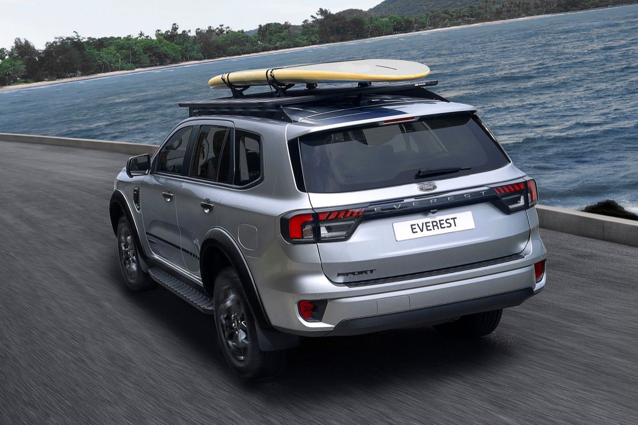Ford Everest Sport แพ็กเกจเทคโนโลยีช่วยการขับขี่ขั้นสูง (DAT Pack B) รถยนต์นั่งอเนกประสงค์ เครื่องยนต์ดีเซล 2.0 ลิตร เทอร์โบเดี่ยว เกียร์อัตโนมัติ 6 สปีด และตกแต่งแนวสปอร์ต ราคา 1,580,000 บาท สีตัวถัง 6 สี ได้แก่ สีดำ แอบโซลูท แบล็ก สีน้ำตาลอีควิน็อกซ์ บรอนซ์ สีเทา เมทิเออร์เกรย์ สีน้ำเงิน ไลท์นิ่งบลู สีเงินอลูมิเนียม เมทัลลิก และสีขาว สโนวเฟล็ก ไวท์เพิร์ล (เพิ่มเงิน 12,000 บาท)