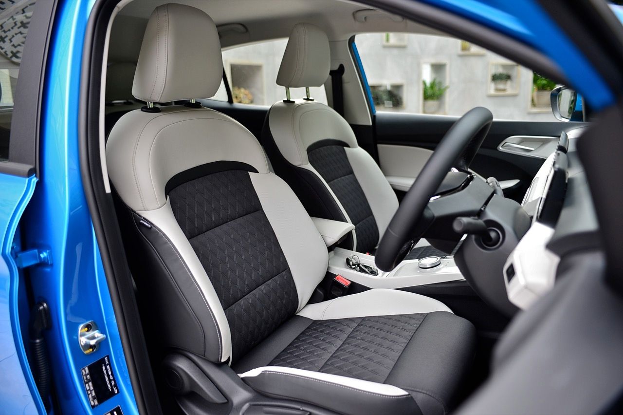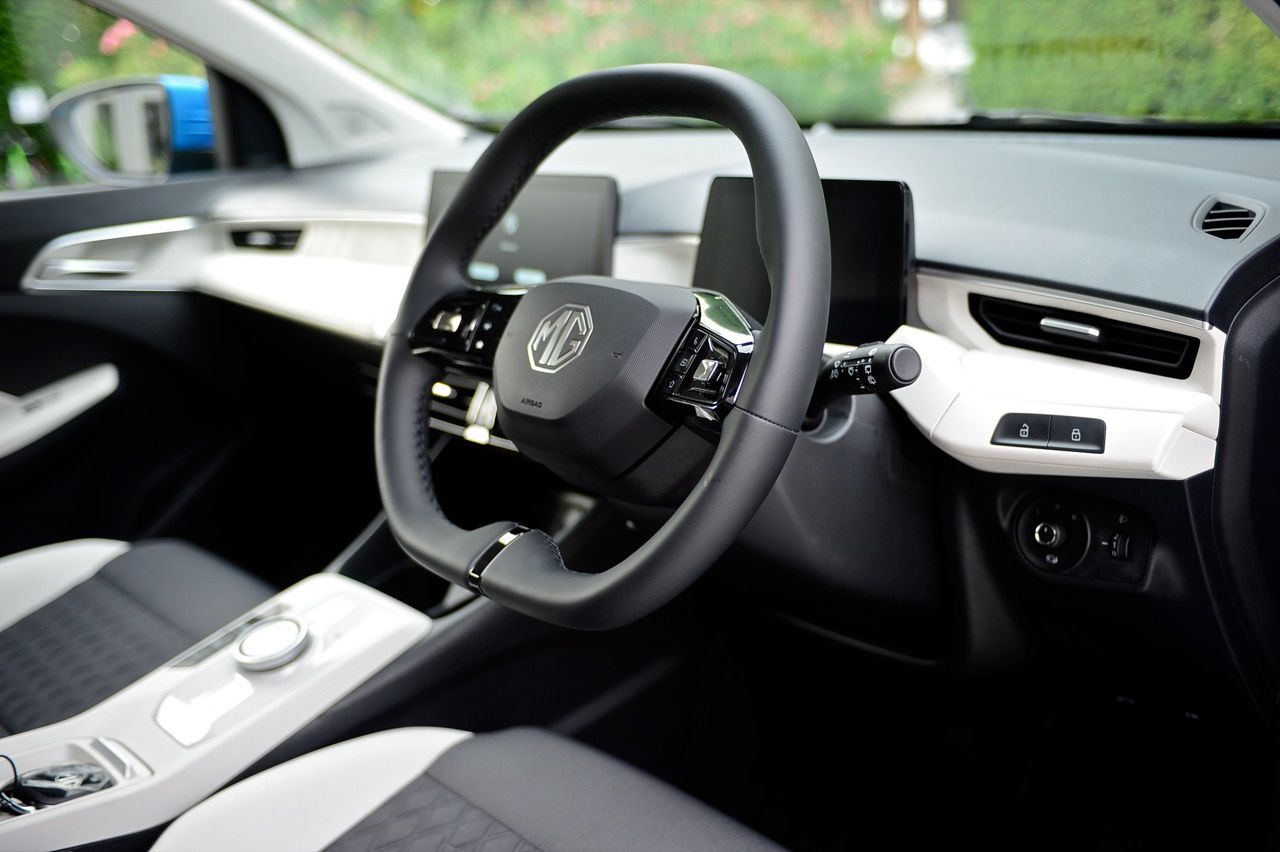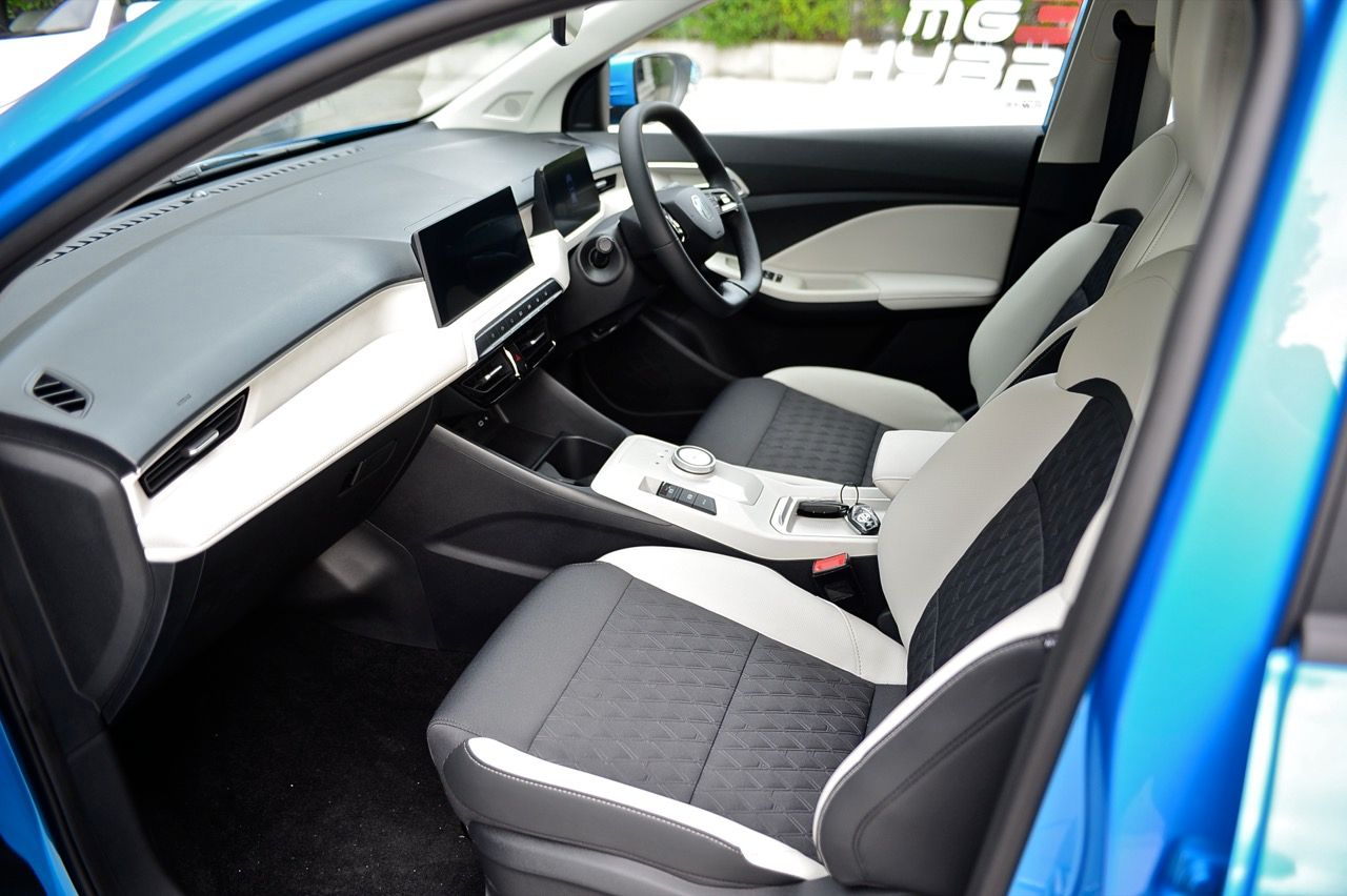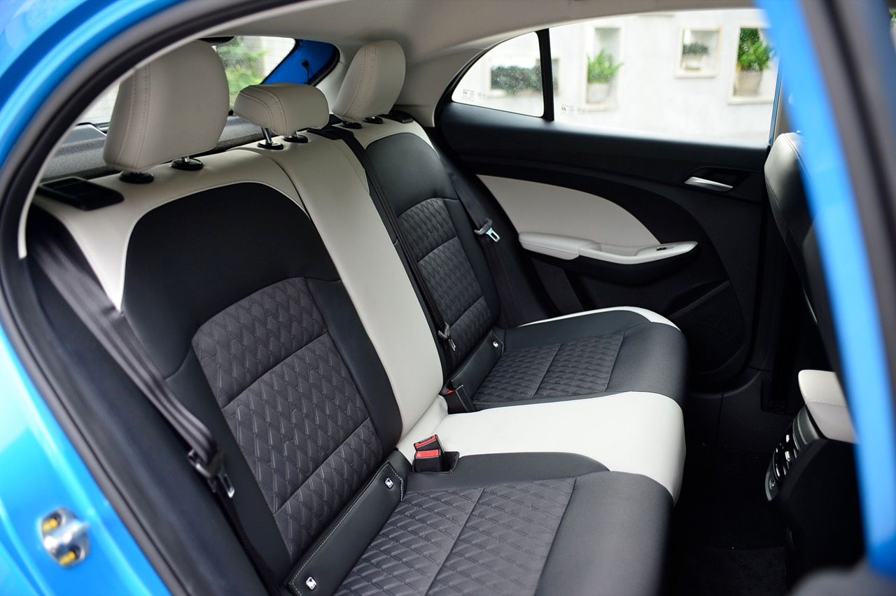 พื้นที่ภายในเพียงพอสำหรับผู้โดยสารด้านหลัง พื้นที่วางขากว้าง พื้นที่เหนือศีรษะด้านหลังค่อนข้างเหลือน้อย หมอนรองศีรษะจะไม่มีประโยชน์สำหรับผู้โดยสารที่ตัวสูง การพับเบาะหลังลงแบบแยกพับ 60/40 ช่วยให้มีพื้นที่เพิ่มขึ้น พื้นที่เก็บของเล็กๆ น้อยๆ กับที่วางแก้ว MG ให้ความสำคัญกับการใช้วัสดุที่มีคุณภาพ การออกแบบคอนโซลเล่นระดับให้แดชต์บอร์ดดูมีมิติ ภายในแบบทูโทนขาวสลับดำหรือดำล้วน พื้นที่ภายในกว้างสุดในคลาสเดียวกัน ห้องสัมภาระท้ายจุ 293 ลิตร เมื่อพับเบาะความจุจะเพิ่มเป็น 1,037 ลิตร