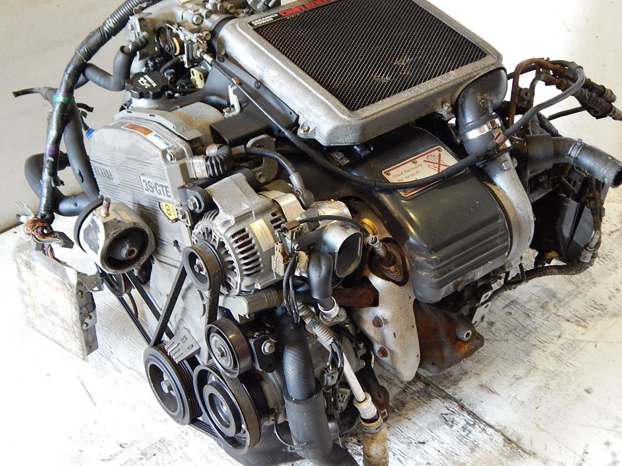 3S-GTE เทอร์โบชาร์จ คล้ายกับมีบล็อก 3S-GE ใช้กระบอกสูบเหล็กหล่อ เพลาข้อเหวี่ยงและก้านสูบ หลอมขึ้นรูป ลูกสูบอะลูมิเนียมน้ำหนักเบา 3S-GTE แตกต่างจาก 3S-GE ตรงที่อัตราส่วนกำลังอัดที่ลดลงสำหรับการติดตั้งเทอร์โบชาร์จ เพิ่มหัวฉีดน้ำมันลูกสูบ ภายในบล็อกกระบอกสูบ ด้านบนของบล็อกมีหัวกระบอกสูบอะลูมิเนียม ออกแบบโดย Yamaha ฝาสูบอะลูมิเนียม DOHC 16 วาล์ว พร้อมห้องเผาไหม้แบบ pent-roof combustion ซึ่งวางตำแหน่งของหัวเทียนอยู่ตรงกลาง เครื่องยนต์ใช้โซ่สายพานราวลิ้นและบัคเก็ตแข็งในชุดวาล์ว (ปรับระยะห่างวาล์วได้โดยเพิ่มชิมทั้งด้านบน/ล่าง) เส้นผ่านศูนย์กลางวาล์วไอดี 33.5 มม. เส้นผ่านศูนย์กลางวาล์วไอเสีย 29.0 มม.