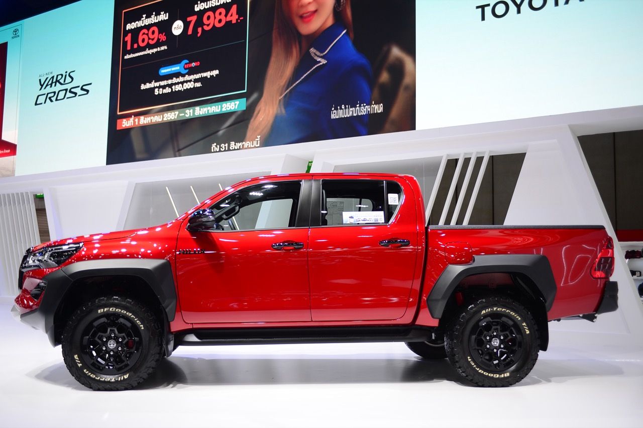 แม้จะปรับโฉม หรือทำอะไรอีกเยอะจนรถดูดีขึ้น พี่โตของน้องๆ ก็ไม่สามารถทวงบัลลังก์เก่าแชมป์ยอดขายรถปิกอัพที่ D-MAX ยึดครองมานานกว่าสองปีแล้ว ค่ายสามห่วงปรับปรุง Hilux REVO อีกครั้งเมื่อไม่กี่เดือนที่ผ่านมา ตัวที่สามารถลุยน้ำได้ และมีค่าตัวไม่แพงมากก็คือ Prerunner รุ่นปรับโฉม ซึ่งถูกส่งออกมาเมื่อวันที่ 3 สิงหาคม พ.ศ.2565 กระบะยกสูงรุ่นปรับปรุงของพี่โตมีหน้าตาที่ดูดีขึ้นมาก เมื่อเทียบกับ REVO รุ่นก่อนปรับโฉม ความสามารถในการลุย และความแข็งแกร่งทนทานสไตล์ Toyota นั้นหมดสงสัย ความอึดของรถพี่โต ทำให้ Hilux รุ่นนี้มีความน่าใช้งานอยู่เหมือนกัน แต่ยอดขายก็ยังตามหลังเจ้าตลาดอยู่พอสมควร ผมเคยขับ Hilux GR เครื่อง 2.8 ลิตร เป็นรถกระบะเครื่องแรงที่จูนช่วงล่างมาเนียนใช้ได้ แต่ราคาก็อาจแรงเกินเอื้อมไปสักนิด สำหรับคนที่มีงบไม่ถึงล้าน Toyota Hilux REVO Prerunner เครื่องยนต์ดีเซล 2.4 ลิตร เทอร์โบ 150 แรงม้า ดูเหมือนน้อย แต่แรงบิด 400 นิวตันเมตร นั้นเหลือเฟือพอที่จะเอาตัวรอดท่ามกลางน้ำท่วมสูงได้อย่างสบาย สำหรับรุ่นเครื่องยนต์ดีเซล 2.8 ลิตร เทอร์โบ 204 แรงม้า แรงบิด 500 นิวตันเมคร มีการปรับทั้งแรงม้าและแรงบิดให้มากกว่าเดิม ปรับช่วงล่างให้รับมือกับผิวถนนแย่ๆ ได้ดีขึ้น นั่งสบายขึ้น ช่วยเพิ่มสมรรถนะในการใช้งานได้ดีขึ้นจากแรงบิดล้นๆ และอัตราสิ้นเปลืองระดับ 13 กิโลเมตรต่อลิตร