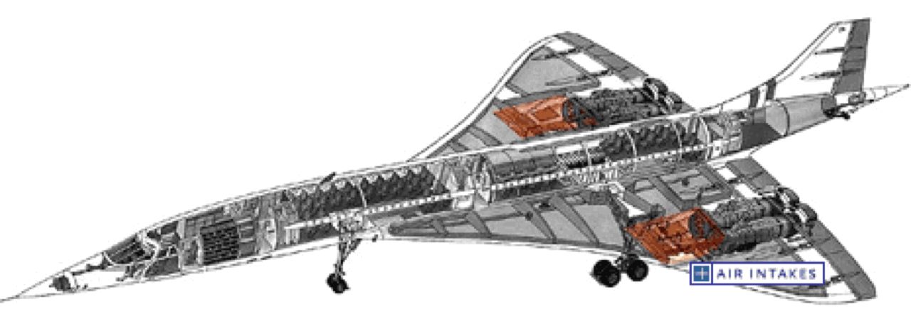 เครื่องยนต์: เทอร์โบเจ๊ต โรลล์-รอยล์/สเนกม่า โอลิมปัส 593 หมายเลขรหัส mk 610 ให้แรงขับเครื่องละ 32,000 ปอนด์ และเพิ่มแรงขับอีก 20% เป็น 38,050 ปอนด์ เมื่อใช้การจุดสันดาปท้าย จำนวน 4 เครื่อง พร้อมเครื่องเก็บเสียง ฝาปิดเปิดแบบพิเศษ (ramp) และ อุปกรณ์กลับแรงขับ