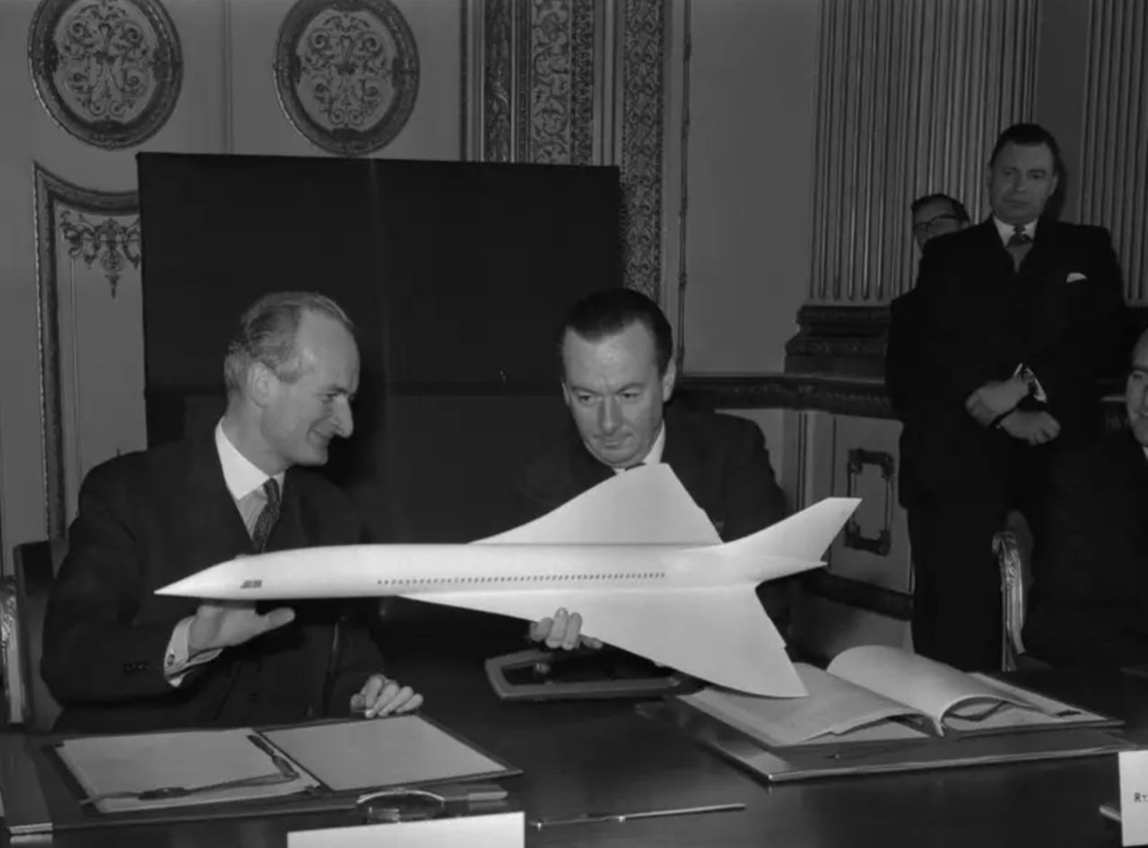 ธันวาคม 1956 คณะกรรมการอากาศยานความเร็วเหนือเสียงในอังกฤษ เสนอให้มีการออกแบบและสร้างเครื่องบินโดยสารความเร็วเหนือเสียงพื่อใช้บินใน เส้นทางลอนดอน-นิวยอร์ก และต้องบินด้วยความเร็วไม่ต่ำกว่ามัค 1.8 (1.8 เท่าของความเร็วเสียง) ต่อมาบริษัทอากาศยานบริสตอลและบริษัทฮอว์เกอร์ซิดเดลี่ย์ ทำการทดสอบทางวิศวกรรมการบิน แบบของปีกชนิดต่างๆ ตำแหน่งของเครื่องยนต์ในการติดตั้งและเสถียรภาพในการควบคุม จึงพบว่าปีกแบบสามเหลี่ยมสามารถบินได้ด้วยความเร็วต่ำโดยไม่ต้องใช้ระบบช่วย เพิ่มแรงยกแต่อย่างใดทำให้โครงการ concorde เข้าใกล้ความเป็นจริงมากยิ่งขึ้น