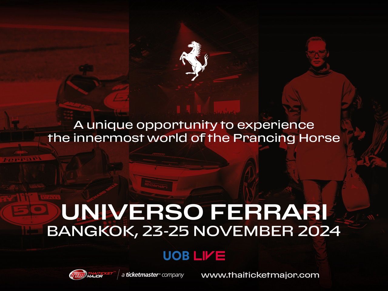 Universo Ferrari จะถูกจัดขึ้นเป็นครั้งแรกในภูมิภาคเอเชียตะวันออกเฉียงใต้ ณ UOB Live, Emsphere ประเทศไทย ระหว่างวันที่ 21 ถึง 25 พฤศจิกายน 2567 สามารถซื้อบัตร และเข้าชมระหว่างวันที่ 23 ถึง 25 พฤศจิกายน 2567