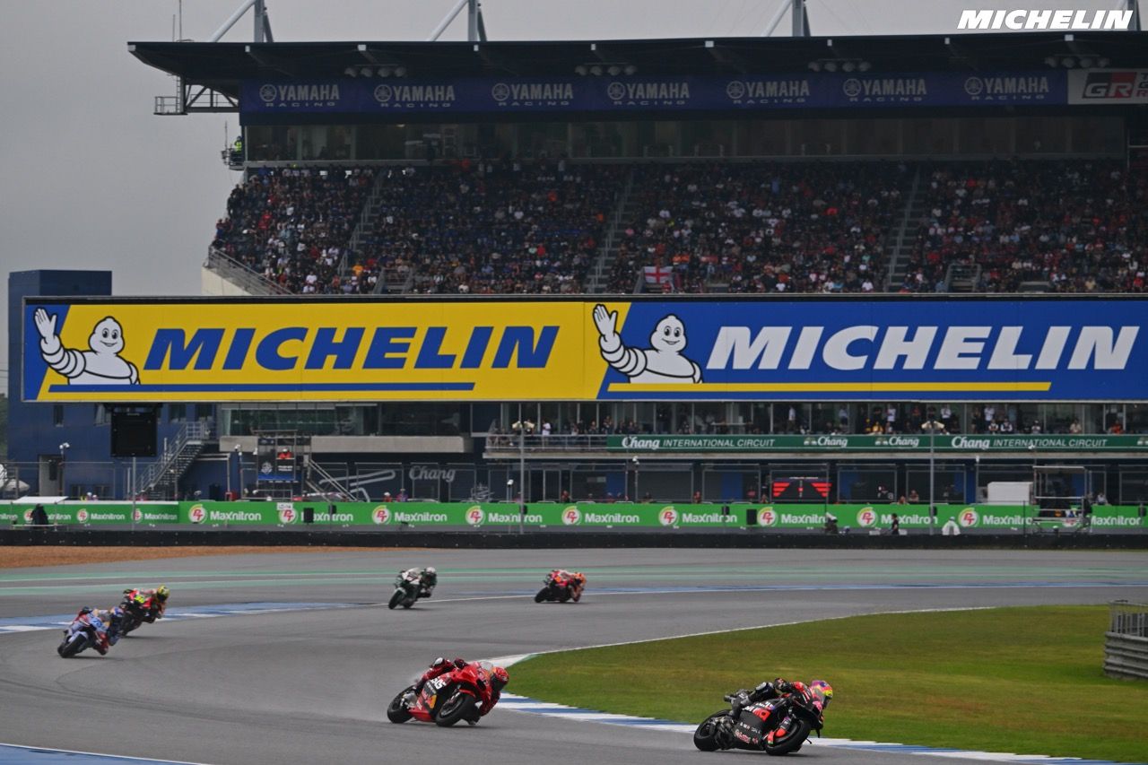 การแข่งรถจักรยานยนต์ทางเรียบชิงแชมป์โลก ‘โมโตจีพี’ สนาม 18 ของฤดูกาลปี 2567 ภายใต้ชื่อรายการ ‘พีที กรังด์ปรีซ์ ออฟ ไทยแลนด์ ประจำปี 2567’ (PT Grand Prix of Thailand 2024) ซึ่งจัดขึ้นเมื่อเร็ว ๆ นี้ เป็นเวลา 3 วันติดต่อกัน ณ สนามช้าง อินเตอร์เนชั่นแนล เซอร์กิต จังหวัดบุรีรัมย์ มิชลิน ได้พิสูจน์ศักยภาพของยาง Michelin Power ซึ่งมีประสิทธิภาพการยึดเกาะและสมรรถนะที่ดี ทำหน้าที่อย่างสม่ำเสมอในทุกสภาวะ ท่ามกลางสภาพอากาศที่แปรปรวนทั้งร้อนและฝน โดยมีผู้ชมในสนามตลอด 3 วัน กว่า 200,000 คน และผู้รับชมถ่ายทอดสดผ่านสื่อต่าง ๆ อีกกว่า 800 ล้านคน จาก 220 ประเทศทั่วโลก ร่วมเป็นสักขีพยาน