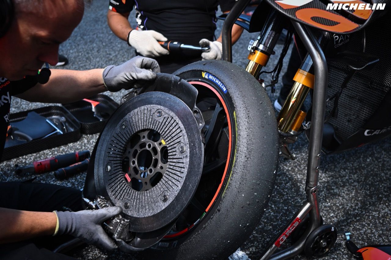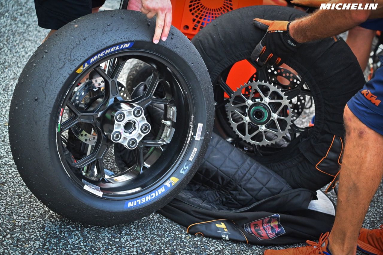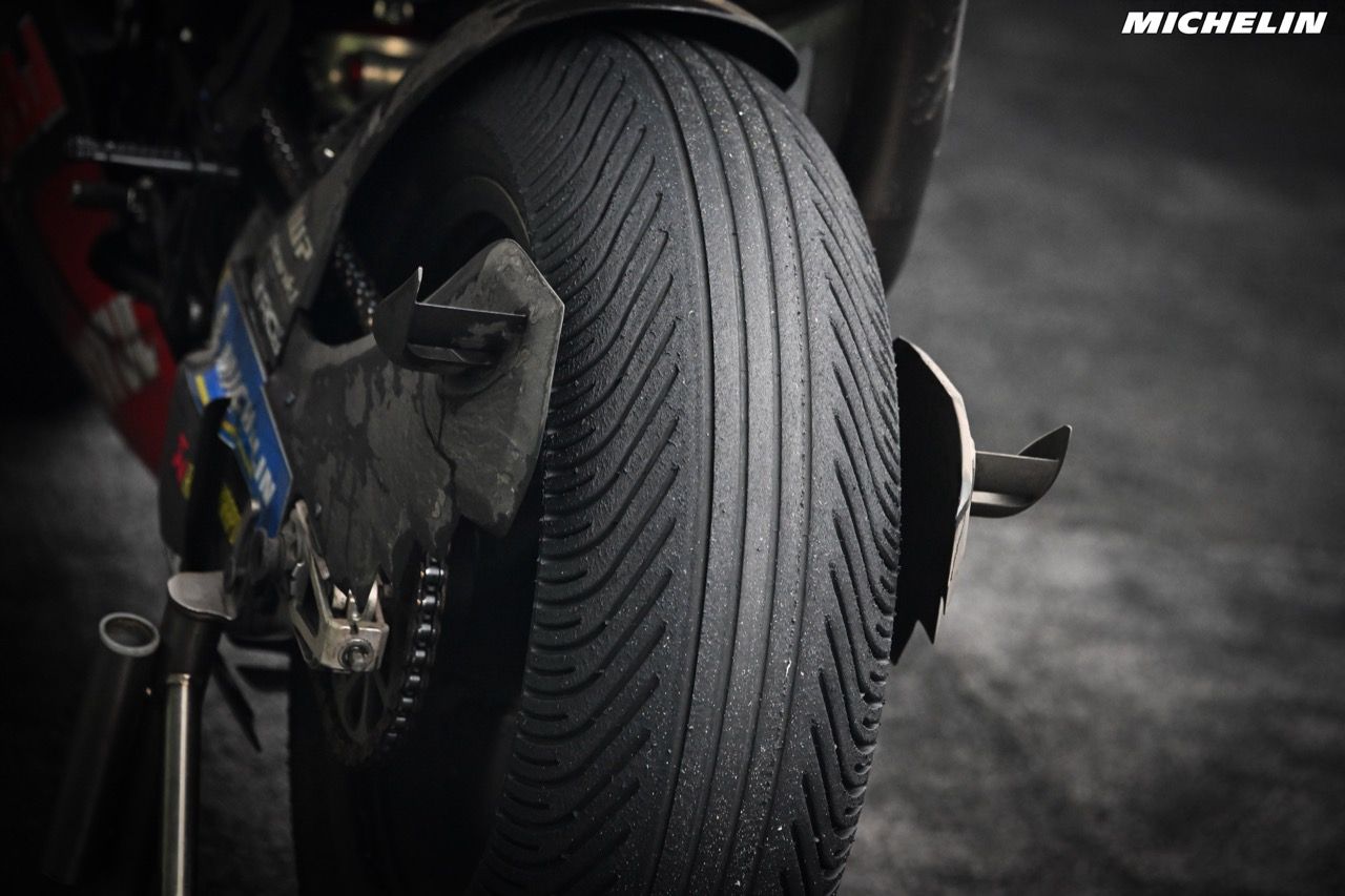 ปิเอโร ทารามัสโซ่ (Piero Taramasso) ผู้จัดการฝ่ายมอเตอร์สปอร์ต กลุ่มผลิตภัณฑ์ 2 ล้อ ของ Michelin เปิดเผยว่า “ด้วยสมรรถนะและข้อมูลการทำลายสถิติในการแข่งขันฤดูกาลที่ผ่านมา เราตกลงใจที่จะใช้ยางรูปแบบเดิม แต่ปรับเปลี่ยนเล็กน้อยโดยเพิ่มความแข็งแกร่งทนทานให้กับสูตรเนื้อยางล้อหน้า ทั้งยางเนื้อนิ่ม ยางเนื้อแข็งปานกลาง และยางเนื้อแข็ง รวมทั้งเสริมโครงสร้างภายในของยางเนื้อแข็งให้แกร่งทนยิ่งขึ้น”