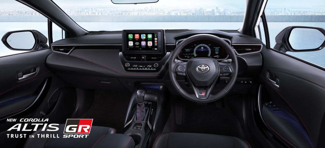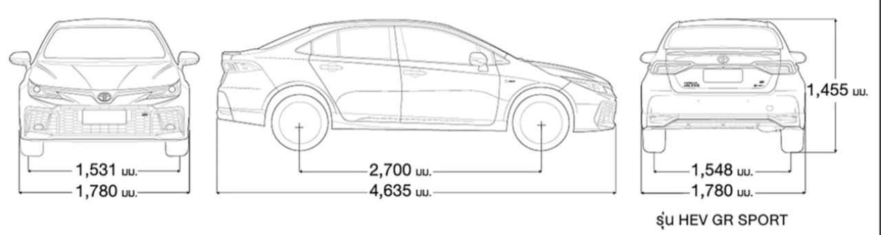 Toyota Corolla Altis รุ่นปรับโฉม HEV GR SPORT รถยนต์ไฮบริดที่สร้างชื่อเสียงและความไว้วางใจในประเทศไทย กับเทคโนโลยีระบบขับเคลื่อนไฮบริดของ Toyota ผสานการทำงานระหว่างมอเตอร์ไฟฟ้าและเครื่องยนต์ Toyota เคลมอัตราการใช้น้ำมัน 23.8 กิโลเมตร/ลิตร (อ้างอิงจาก Eco Sticker) ภายนอกตกแต่งแนวมอเตอร์สปอร์ต GR กระจังหน้า สปอยเลอร์หลังสีดำเงา ล้ออัลลอยสีดำขนาด 17 นิ้ว ไฟท้าย Full LED แบบ Clear Lens