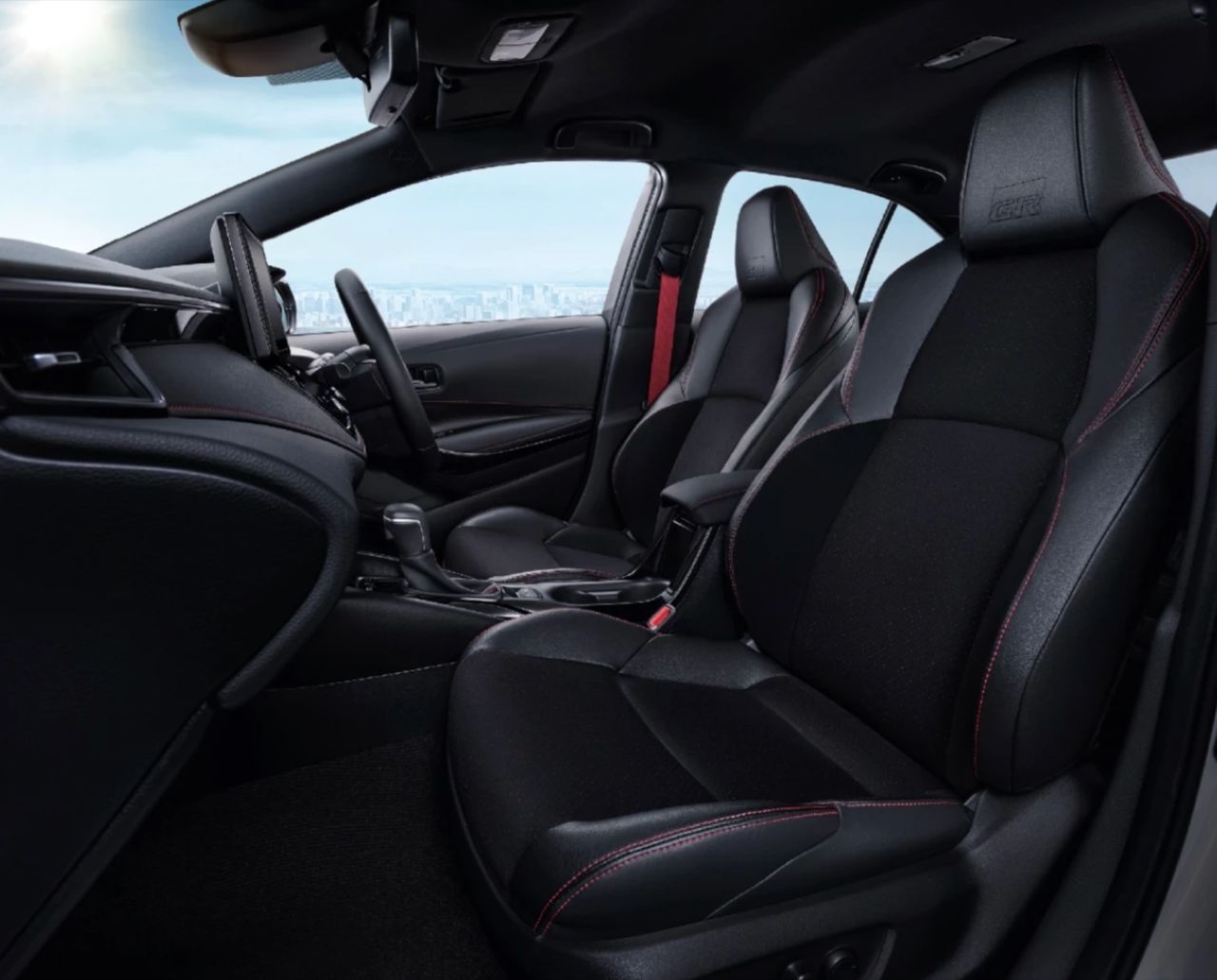 เบาะนั่งคู่หน้าทรงสปอร์ต หนัง Suede แบบเจาะรูและหนังสังเคราะห์ เดินด้ายสีแดง พร้อมสัญลักษณ์ GR ปรับไฟฟ้า 8 ทิศทาง และ Lumbar Support แบบไฟฟ้า ใหม่