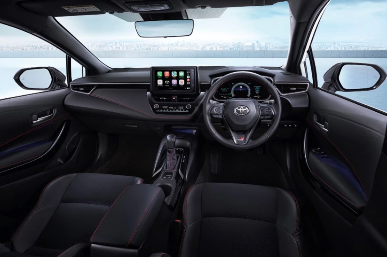 ภายในตกแต่งพิเศษ เดินตะเข็บ ด้ายสีแดงบริเวณเบาะนั่ง สัญลักษณ์ GR ตามจุดต่างๆ การปรับจูนเพื่อให้มีสมรรถนะการขับที่เร้าใจ พวงมาลัยพาวเวอร์ไฟฟ้า, Shock Absorber, Coil Spring และ Rear Stabilizer Bar
