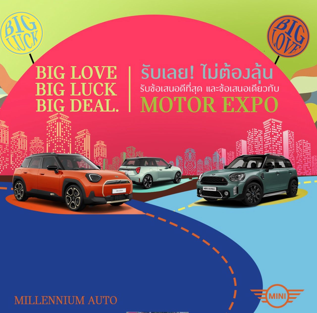 มิลเลนเนียม ออโต กรุ๊ป ผู้จำหน่ายรถยนต์ MINI และ มอเตอร์ไซค์ BMW Motorrad ภายใต้บริษัท มิลเลนเนียม กรุ๊ป คอร์ปอเรชั่น (เอเชีย) หรือ MGC-ASIA จัดใหญ่เอาใจลูกค้า MINI ด้วยแคมเปญ ‘Big Love Big Luck Big Deal’ หลากหลายข้อเสนอแบบไม่ต้องลุ้น สำหรับรถยนต์ MINI หลากรุ่น เป็นข้อเสนอเดียวกับ มอเตอร์ เอ็กซ์โป และแคมเปญ ‘Beyond Discovery’ เติมเต็มการค้นหาที่ไม่สิ้นสุด สำหรับลูกค้า BMW Motorrad วันนี้ ถึงสิ้นเดือนพฤศจิกายน 2567 ที่โชว์รูม มินิ มิลเลนเนียม ออโต้ และ BMW Motorrad มิลเลนเนียม ออโต้ ทุกสาขา